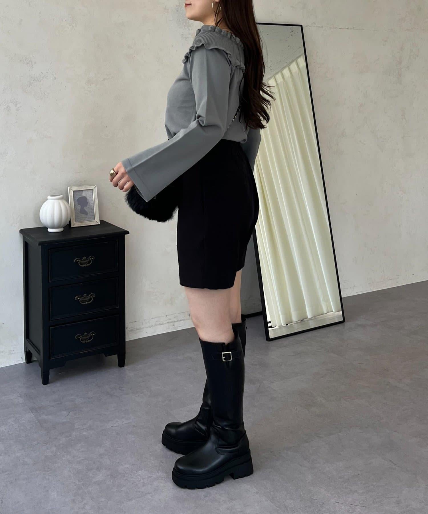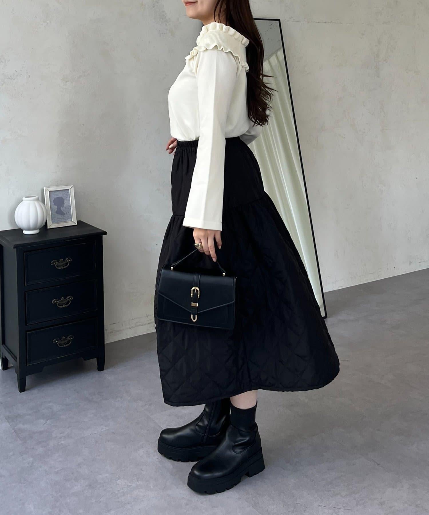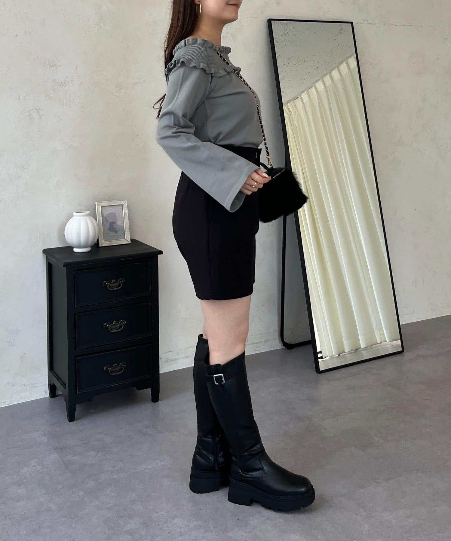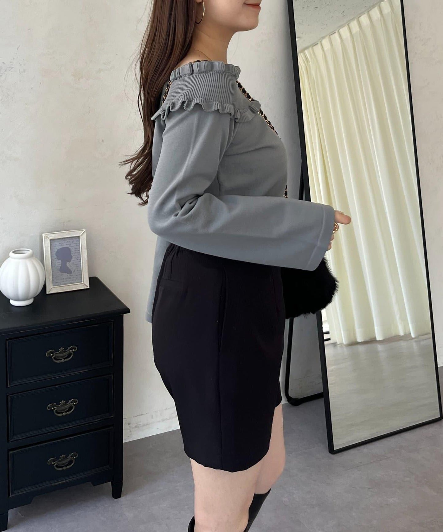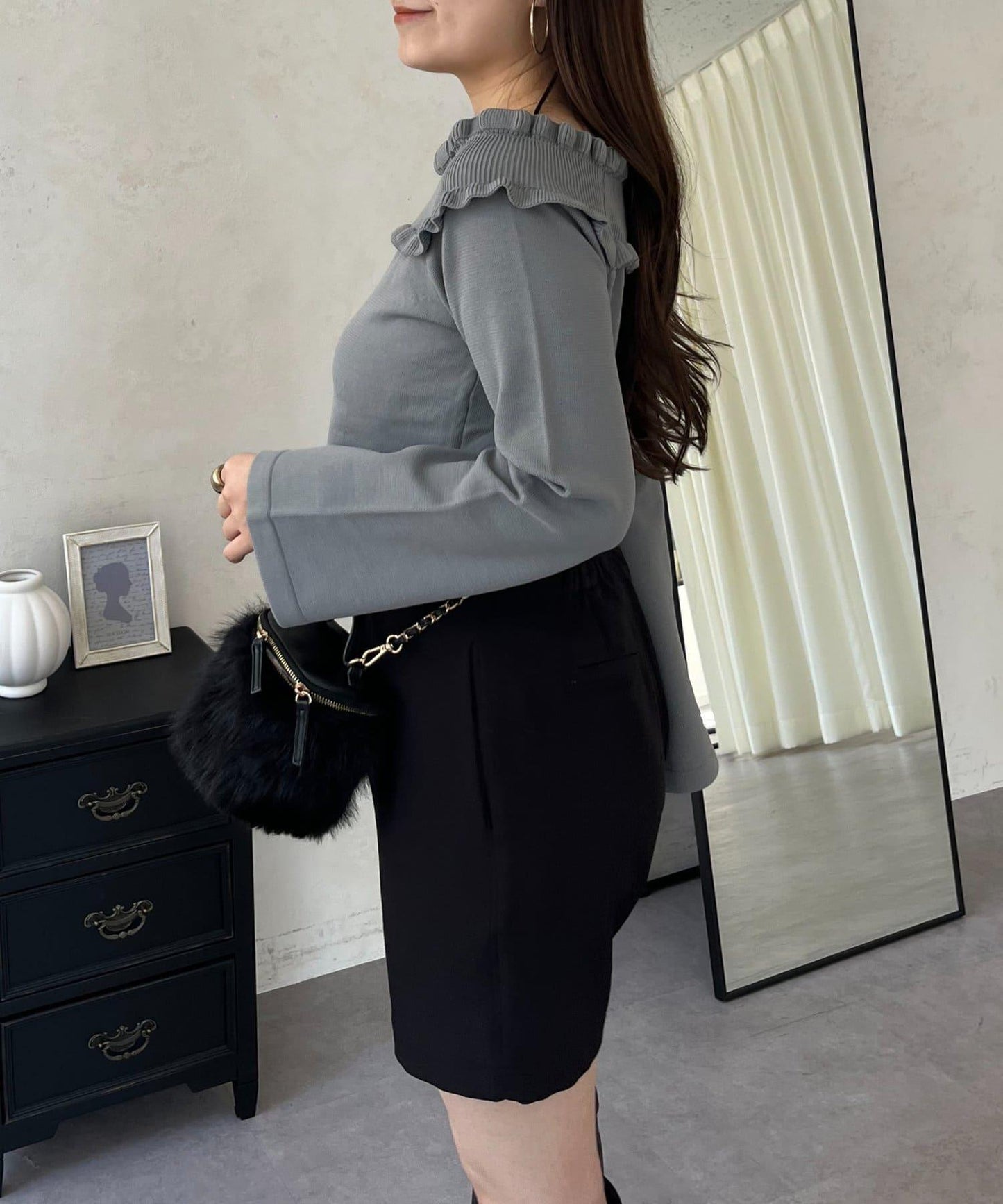 露肩針織衫,荷葉邊設計讓你看起來更有女人味。