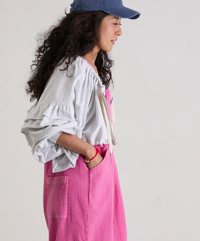 下襬處也設置了鬆緊紡錘,這種設計可以調整輪廓和尺寸。