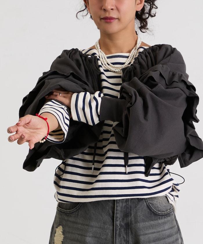 褶皺荷葉邊 拉鍊 短款博萊羅外套