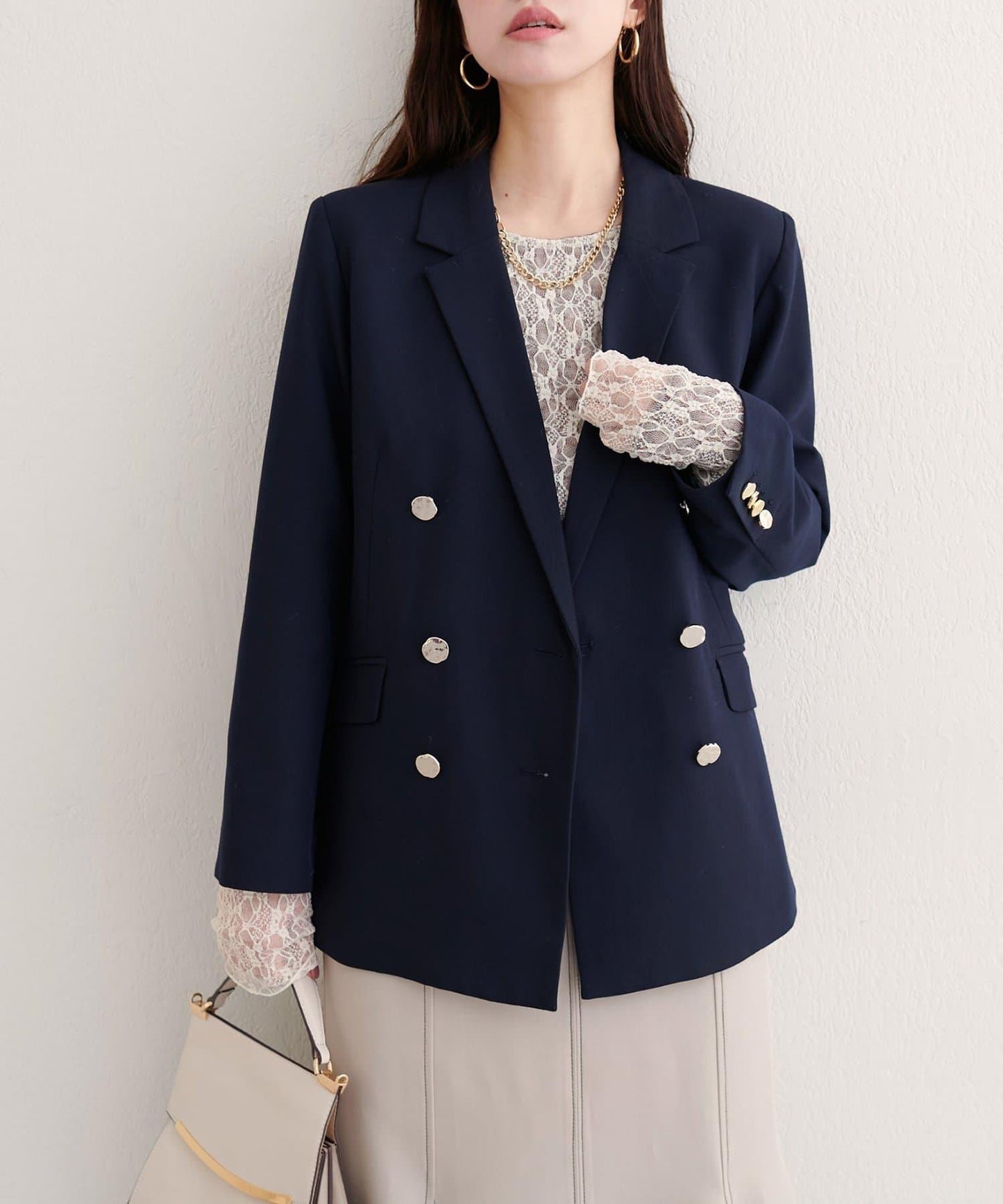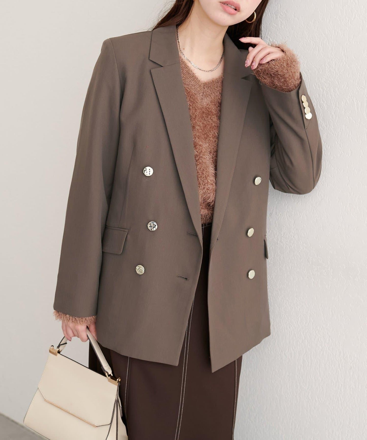 紐扣是點睛之筆,細膩優雅的光澤感是關鍵所在。