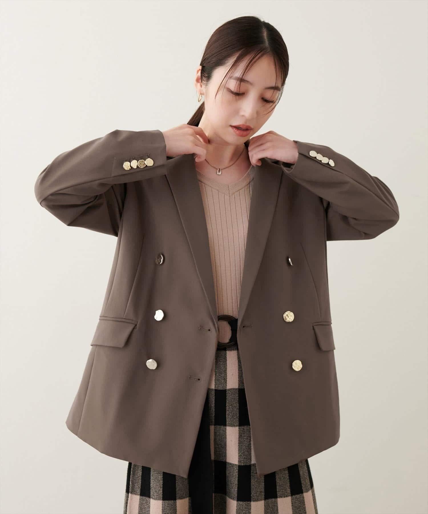 褶皺金色紐扣西裝外套