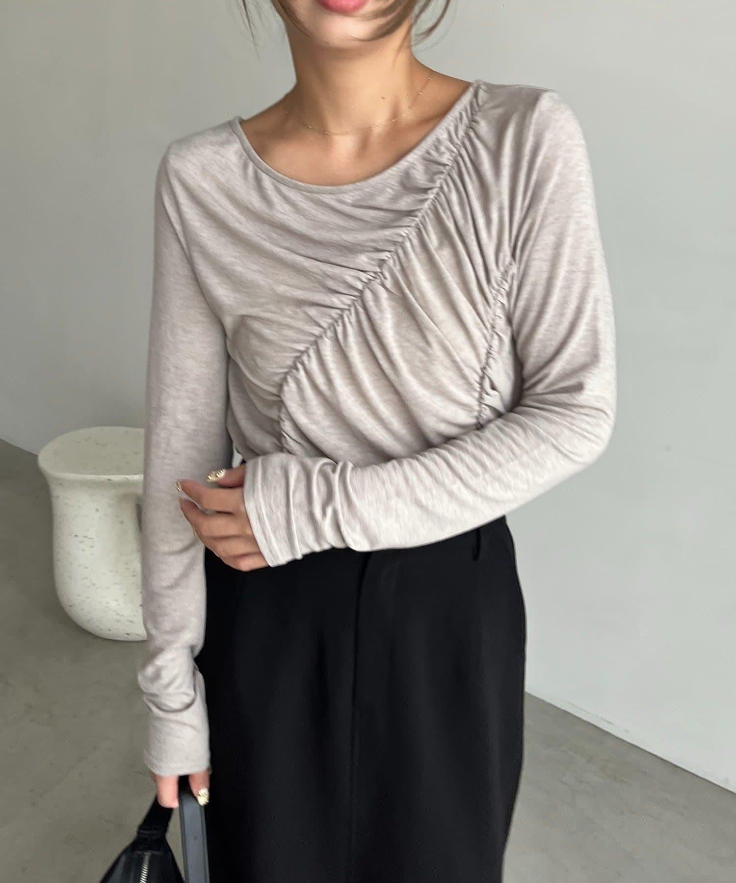 褶皺長袖T恤