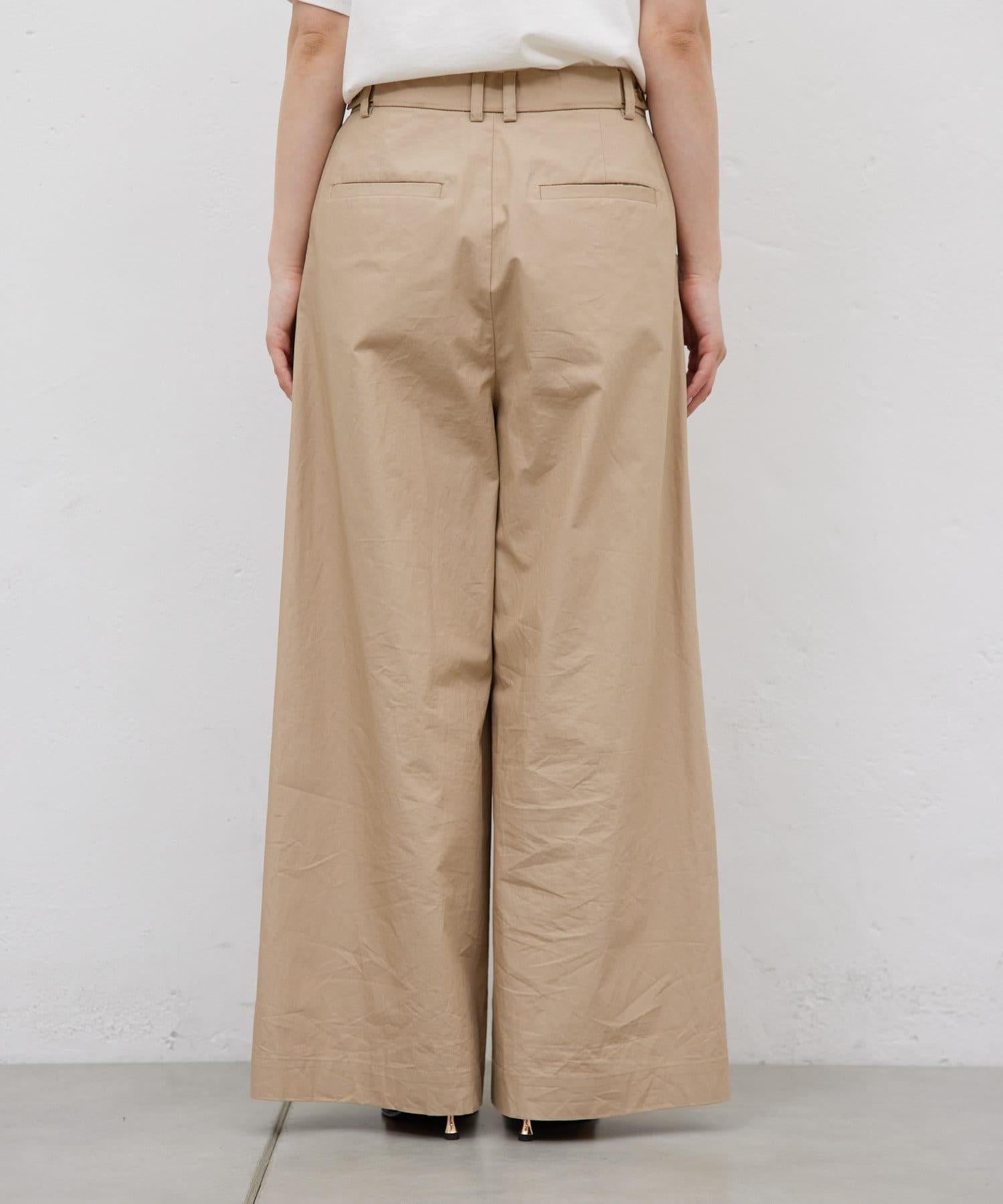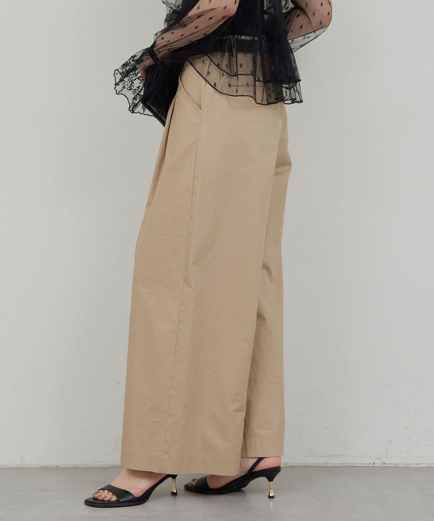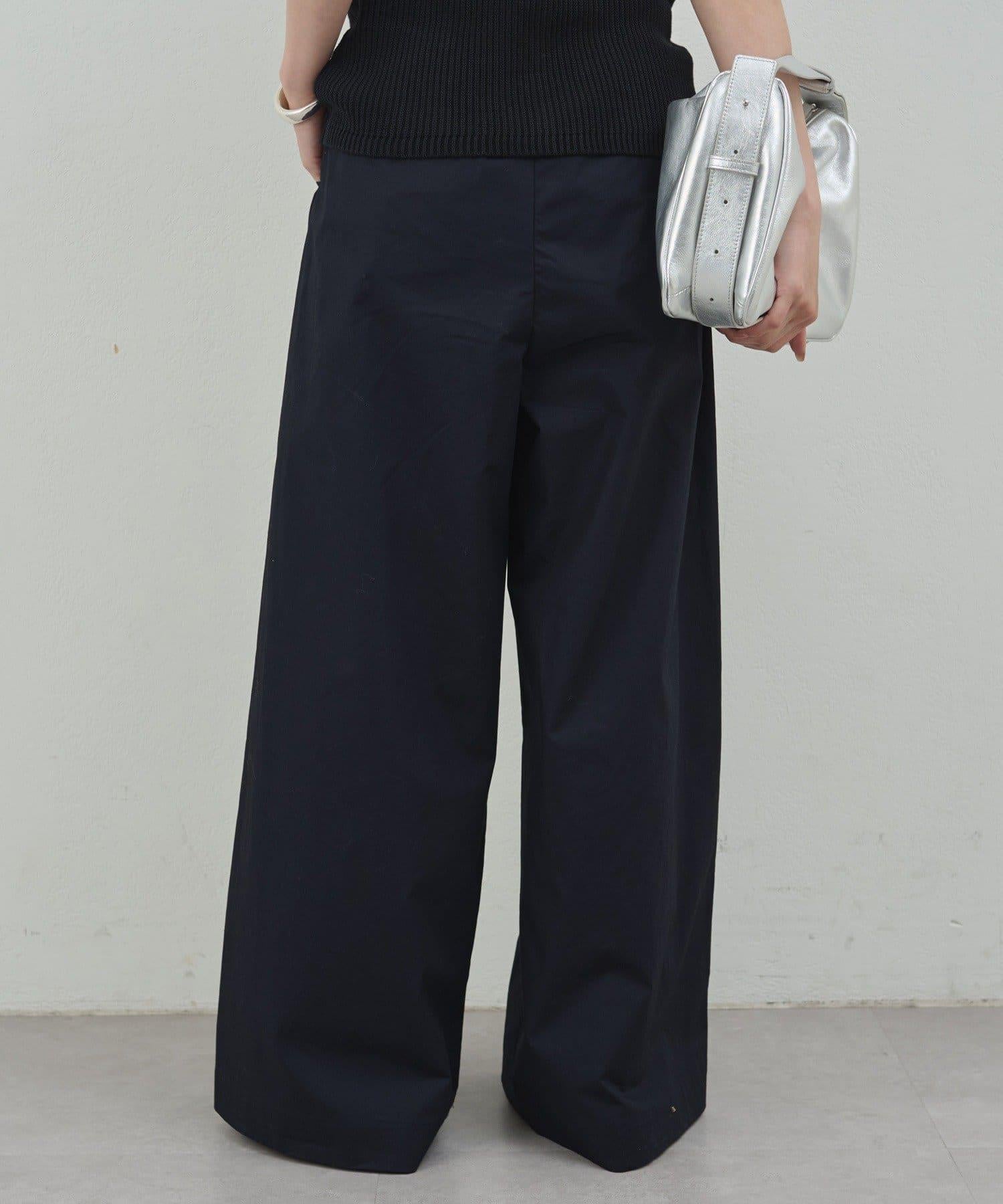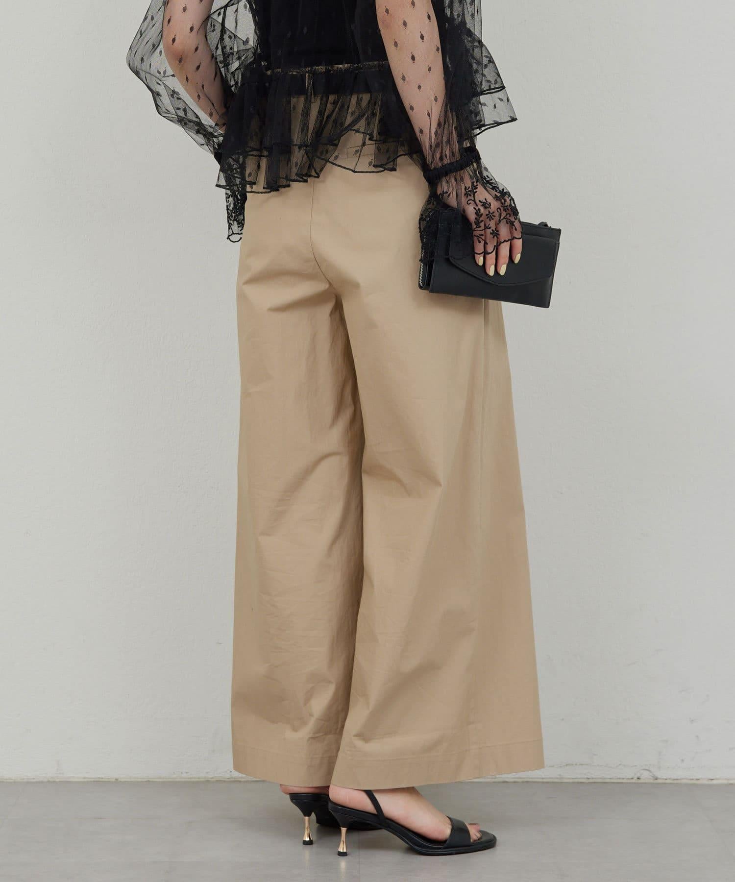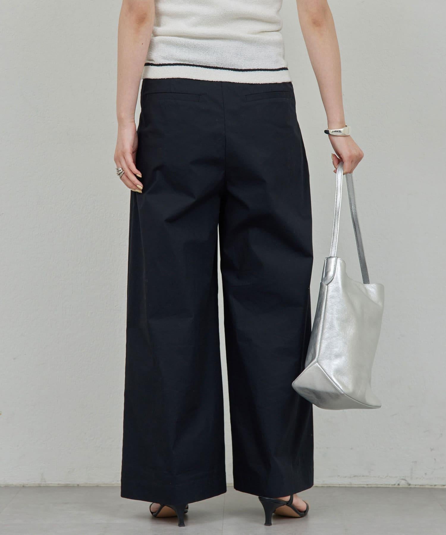 寬鬆長褲,腰部有整齊的束帶。
