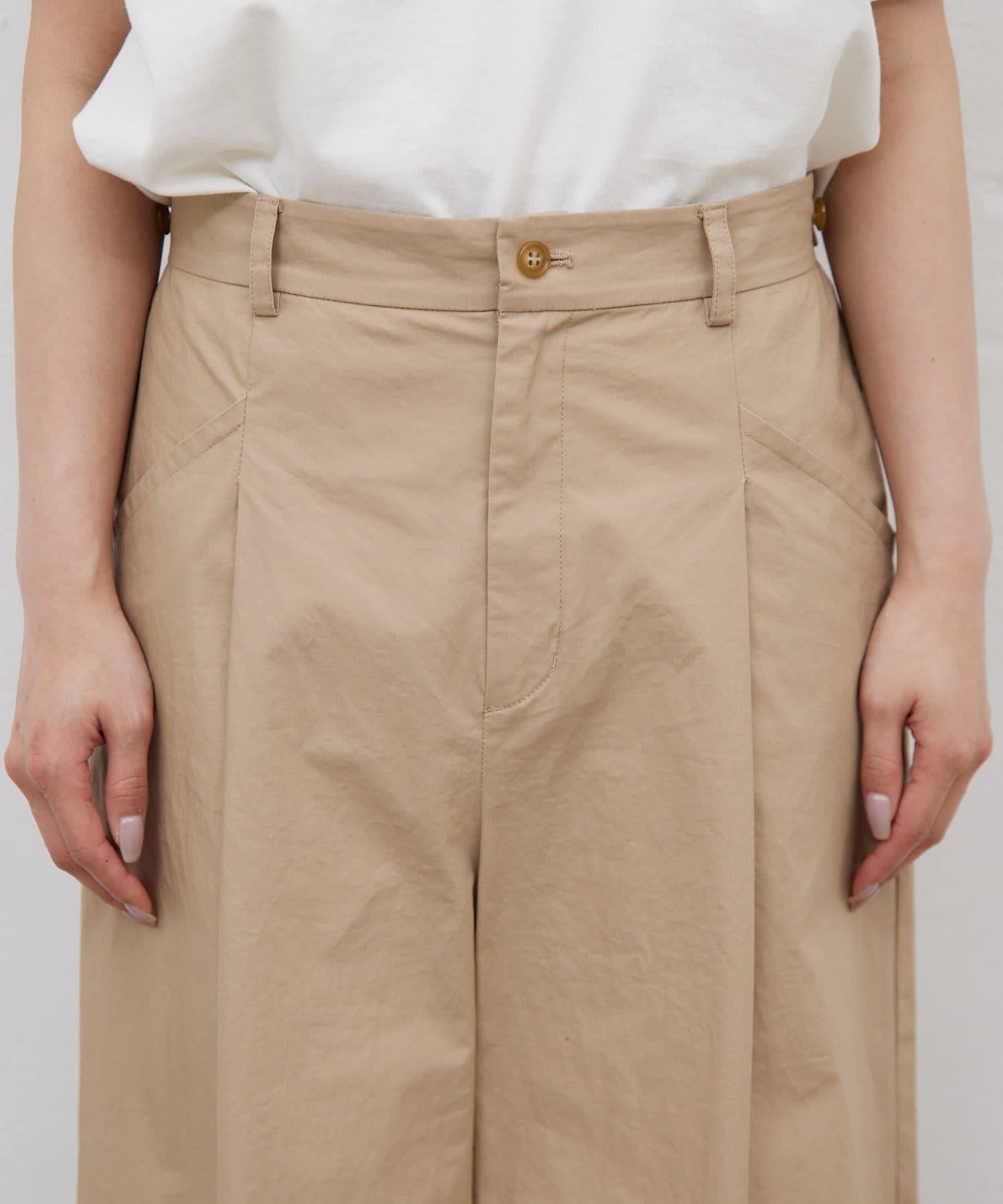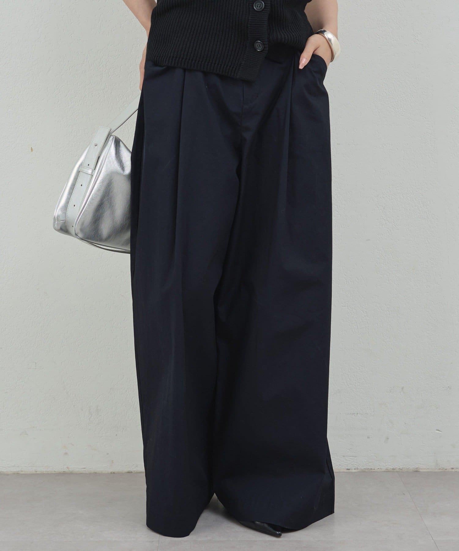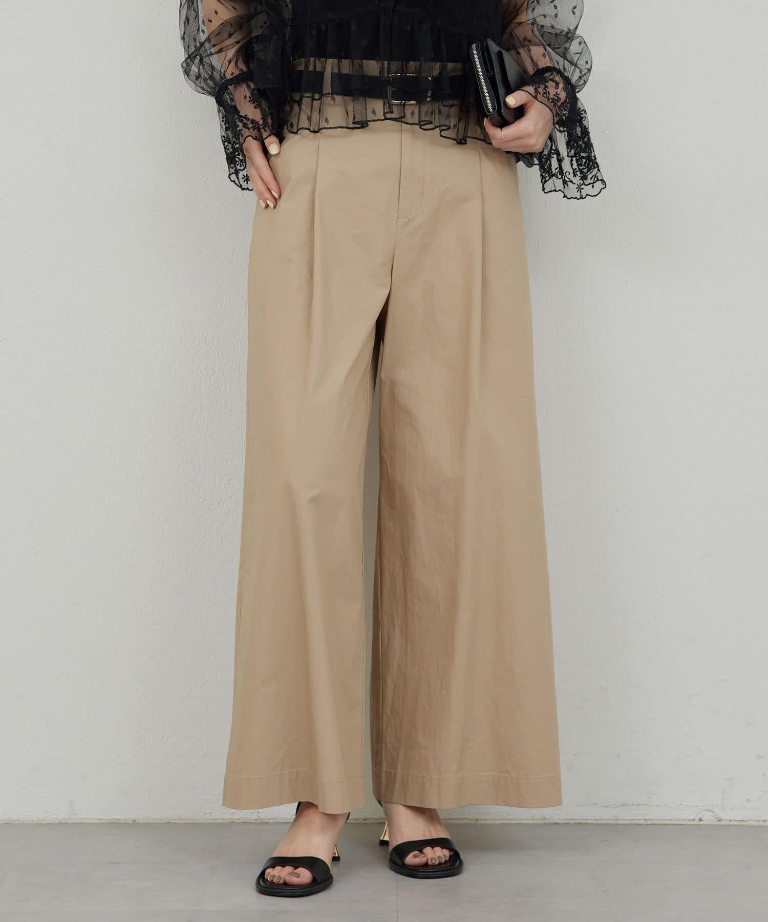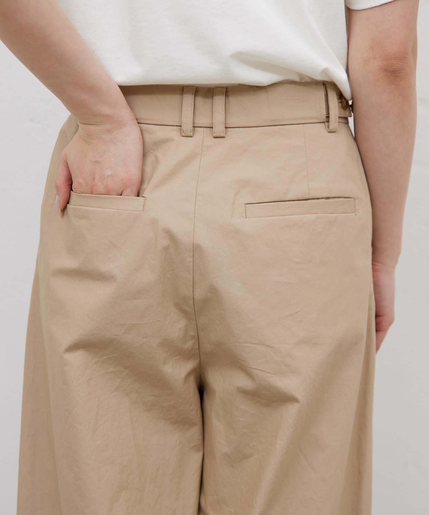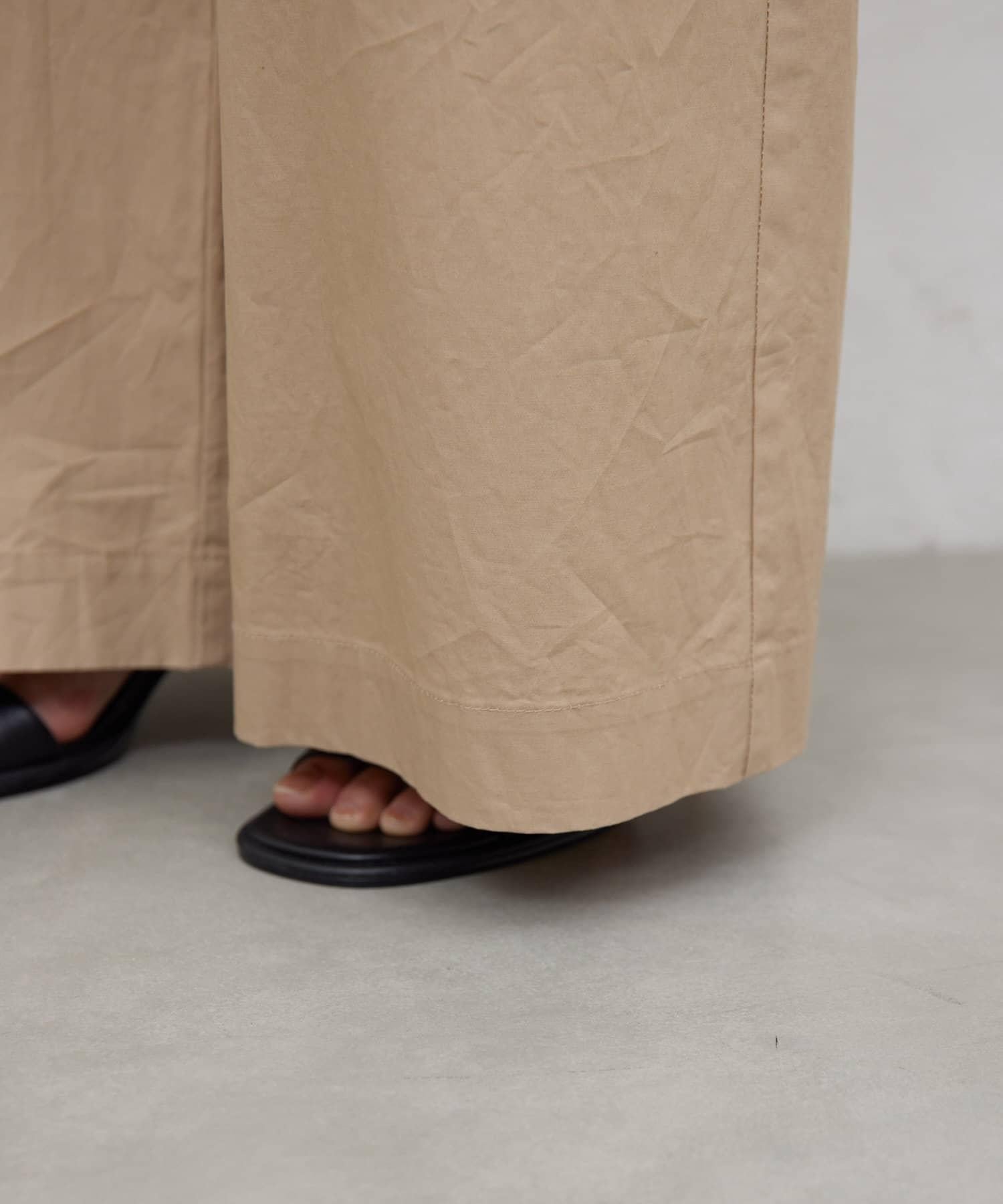寬鬆長褲,腰部有整齊的束帶。