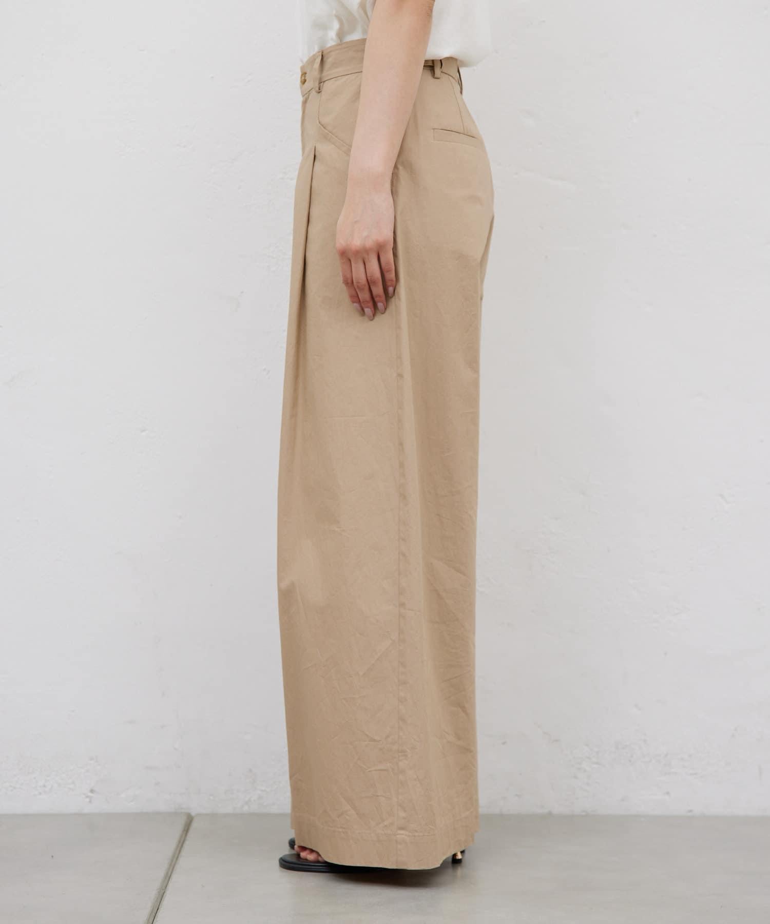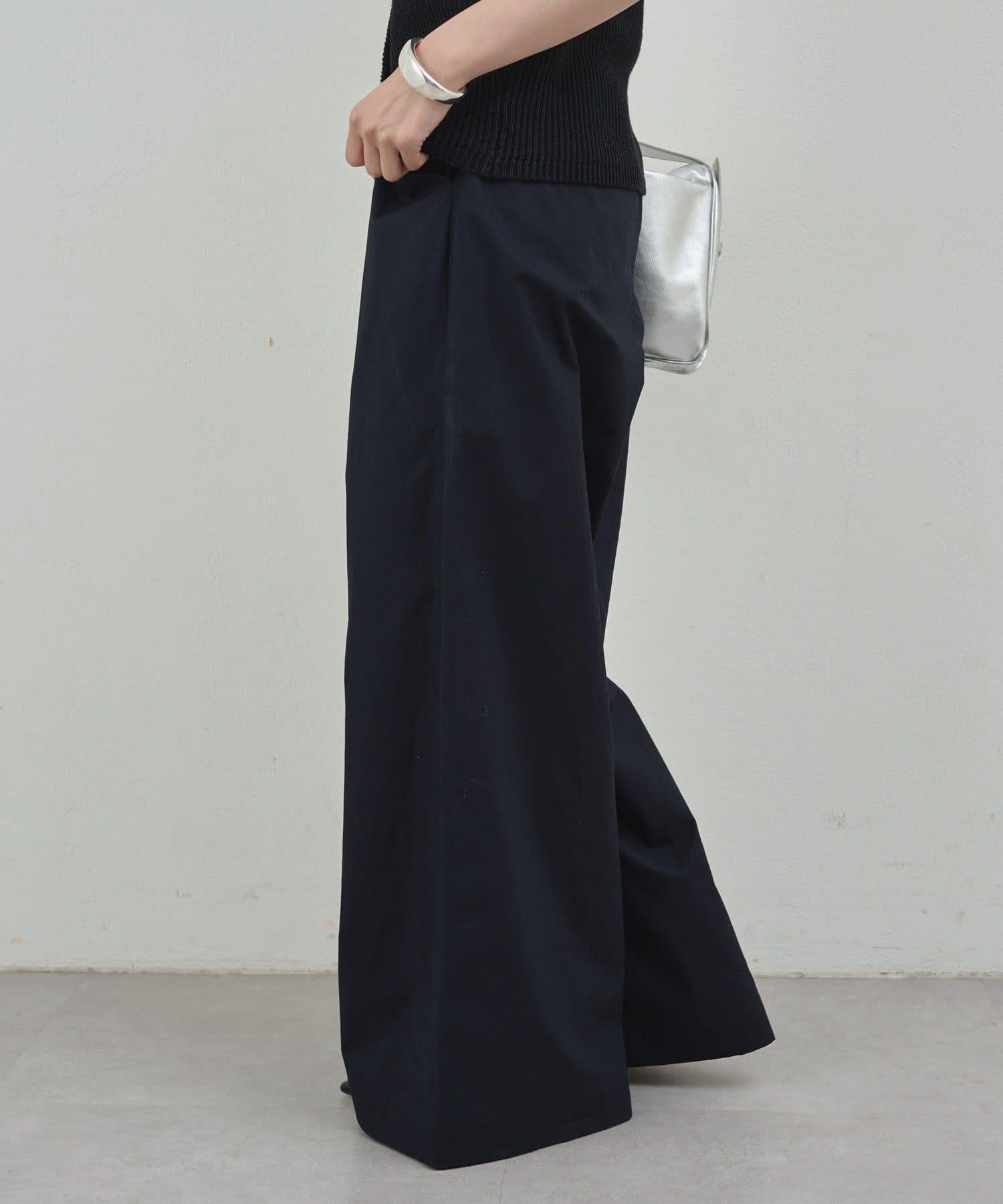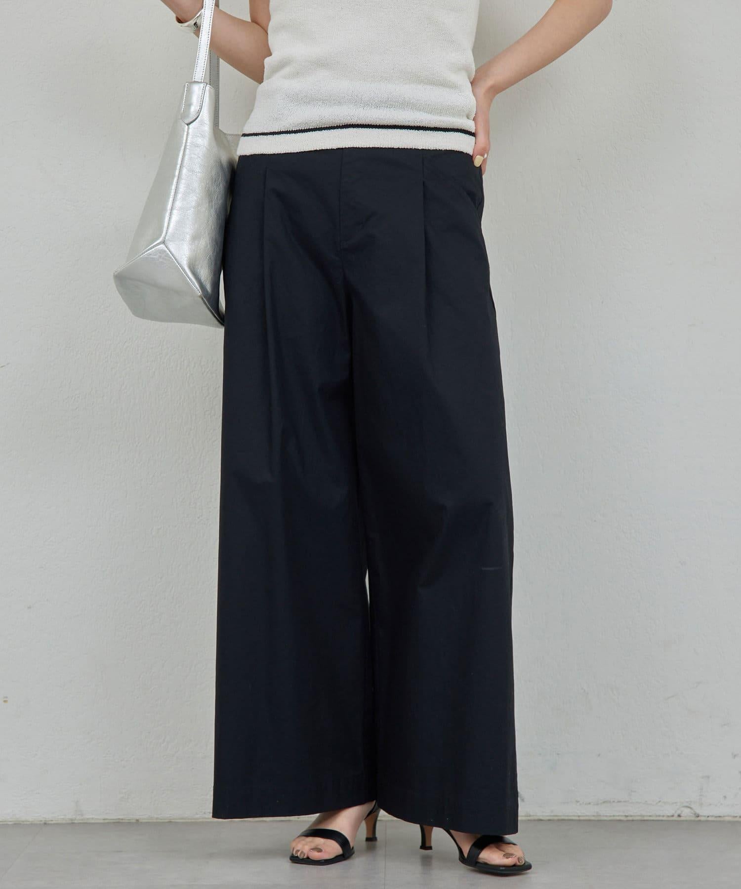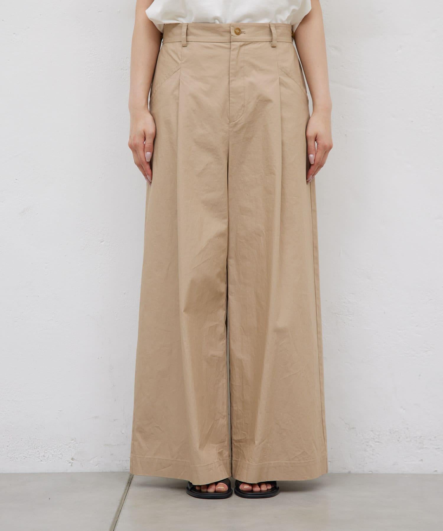 寬鬆長褲,腰部有整齊的束帶。