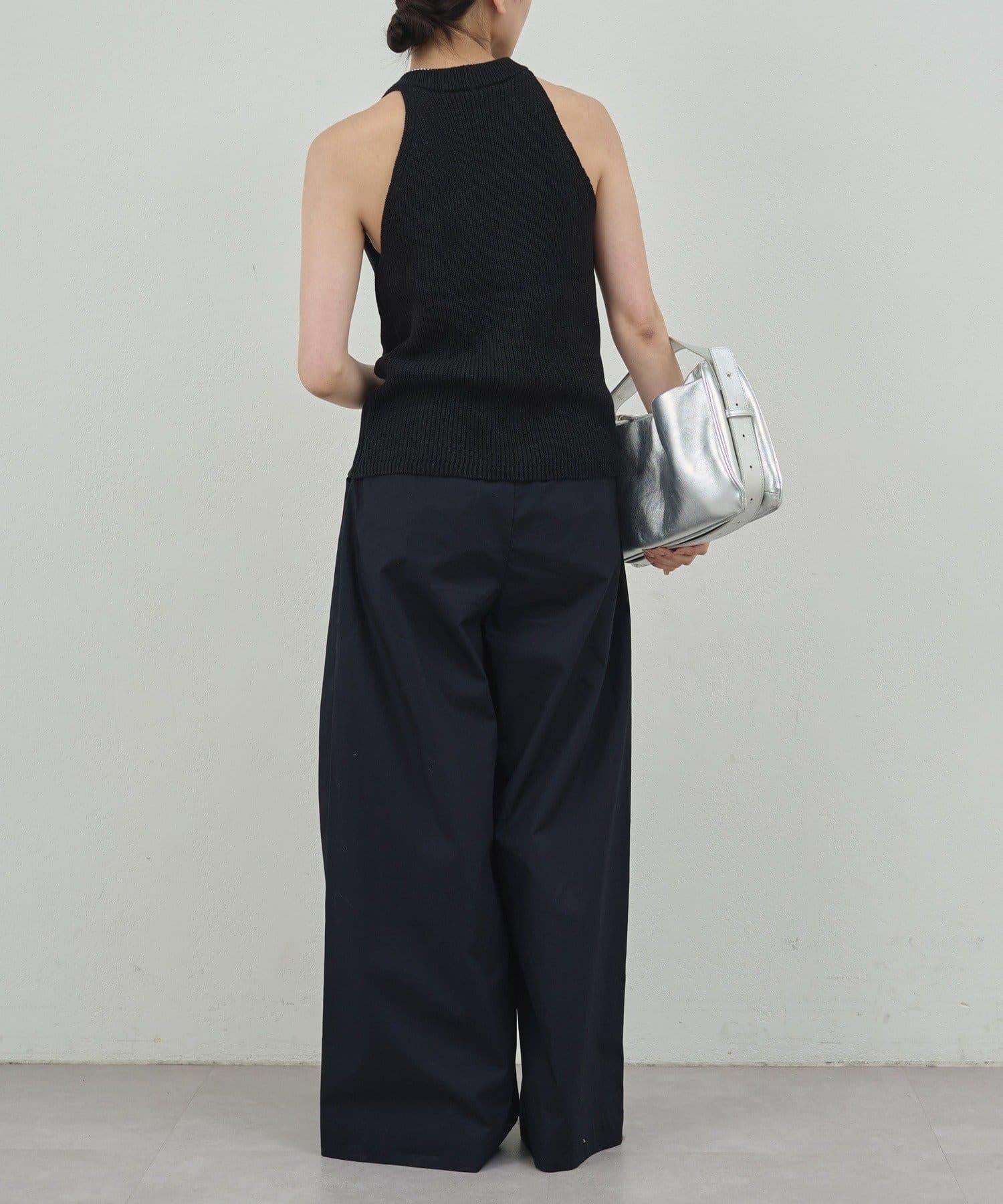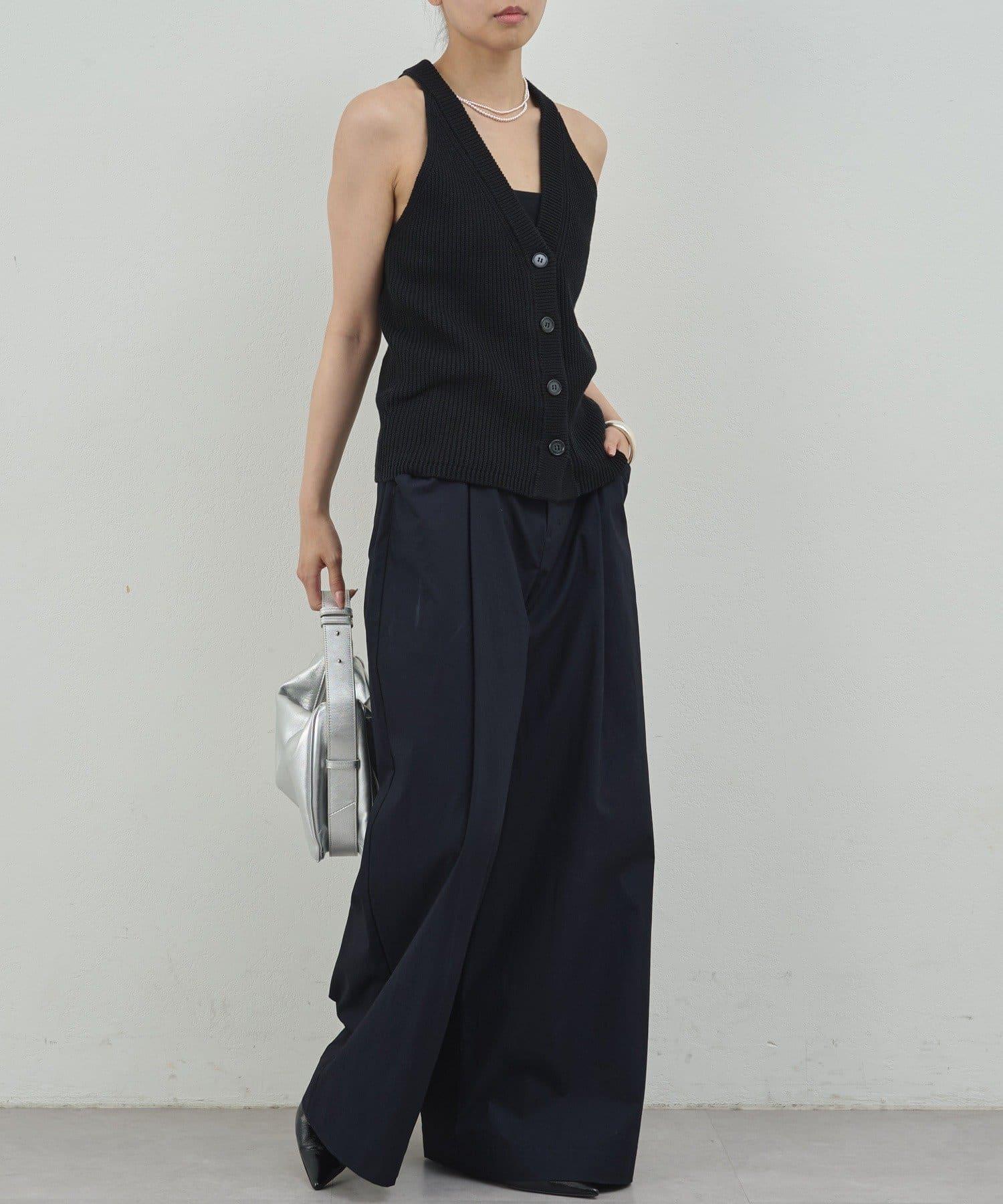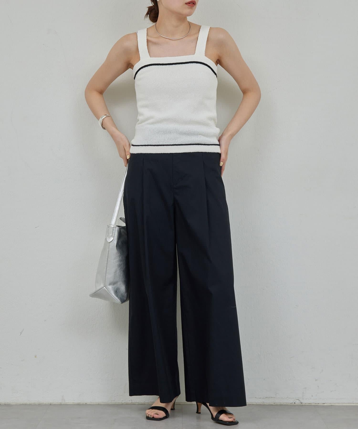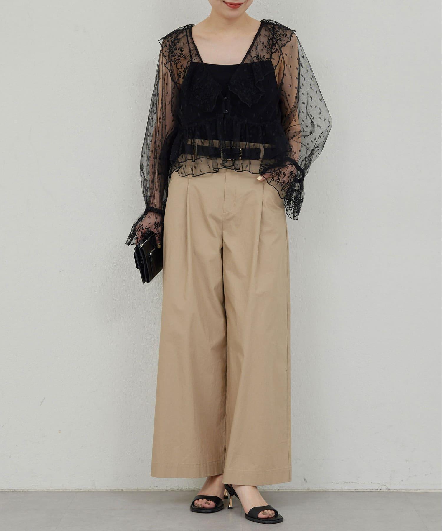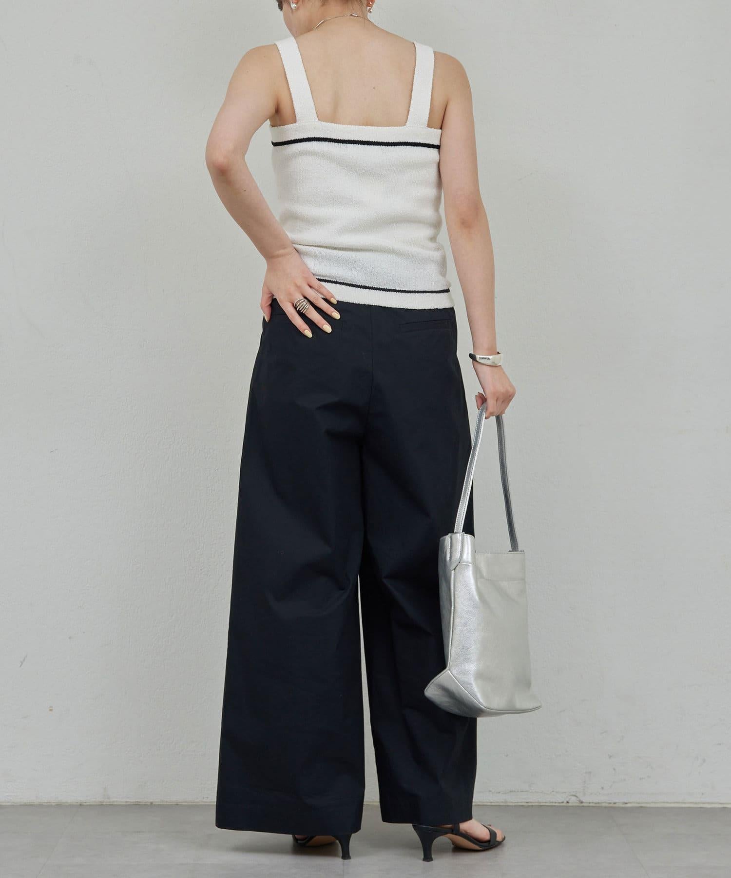 寬鬆長褲,腰部有整齊的束帶。