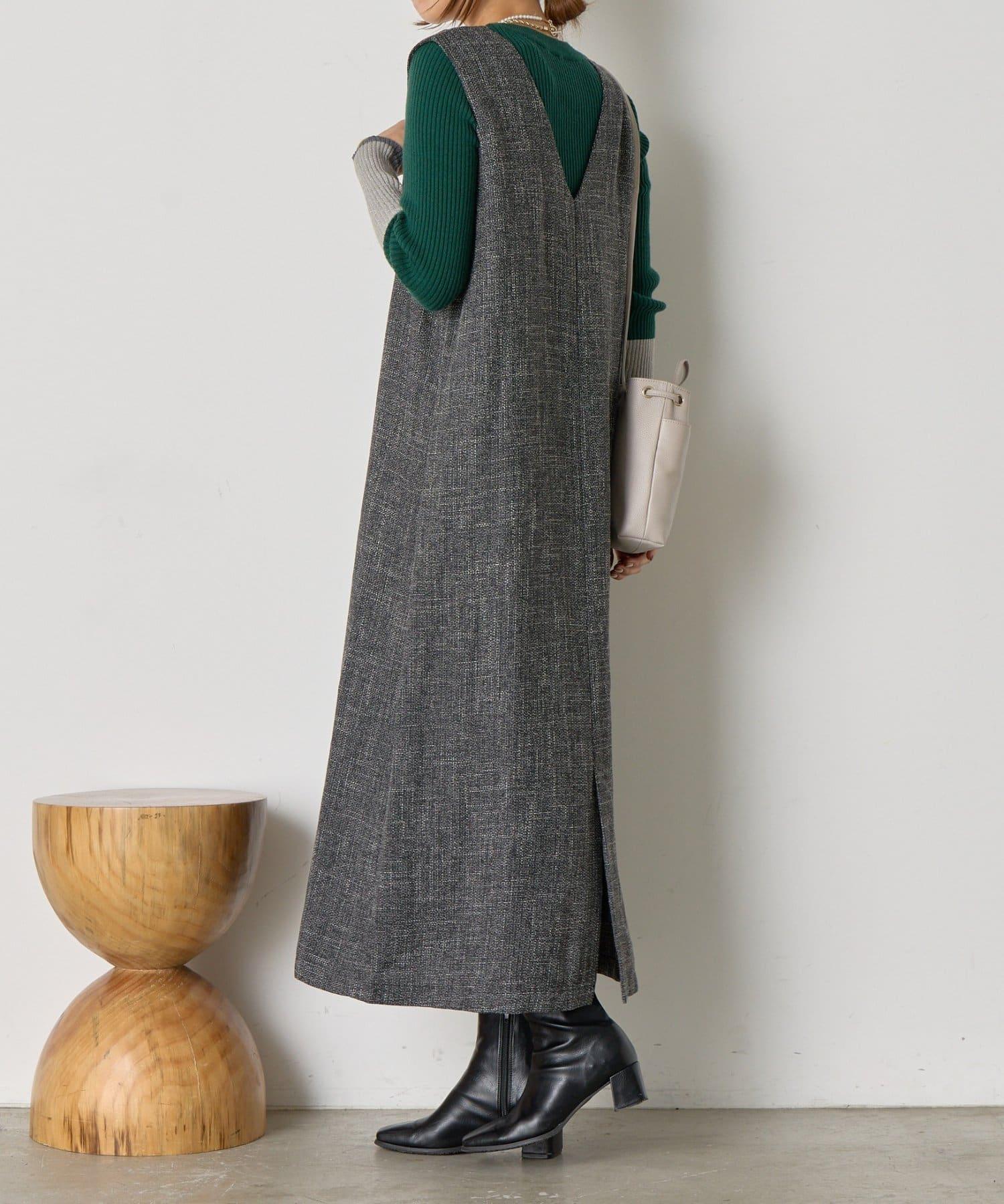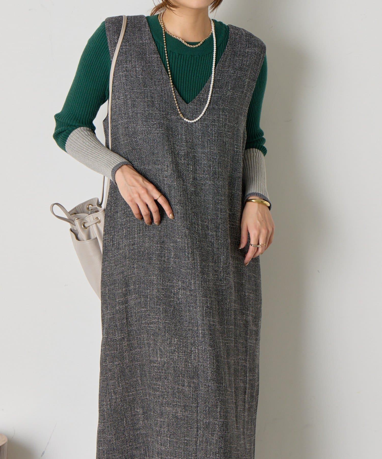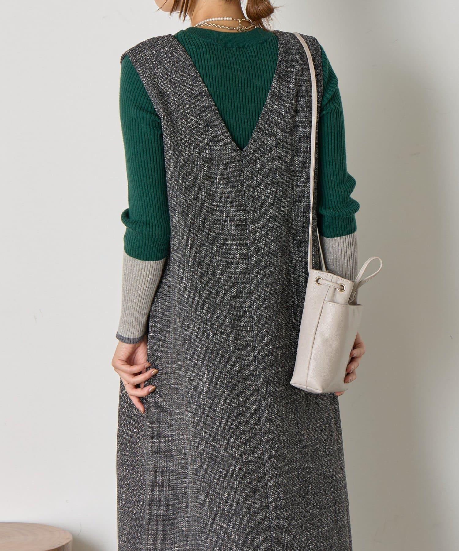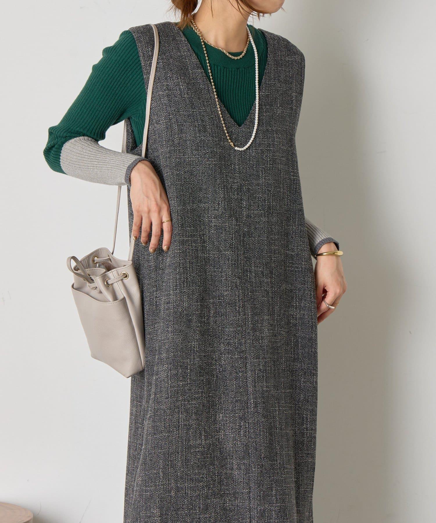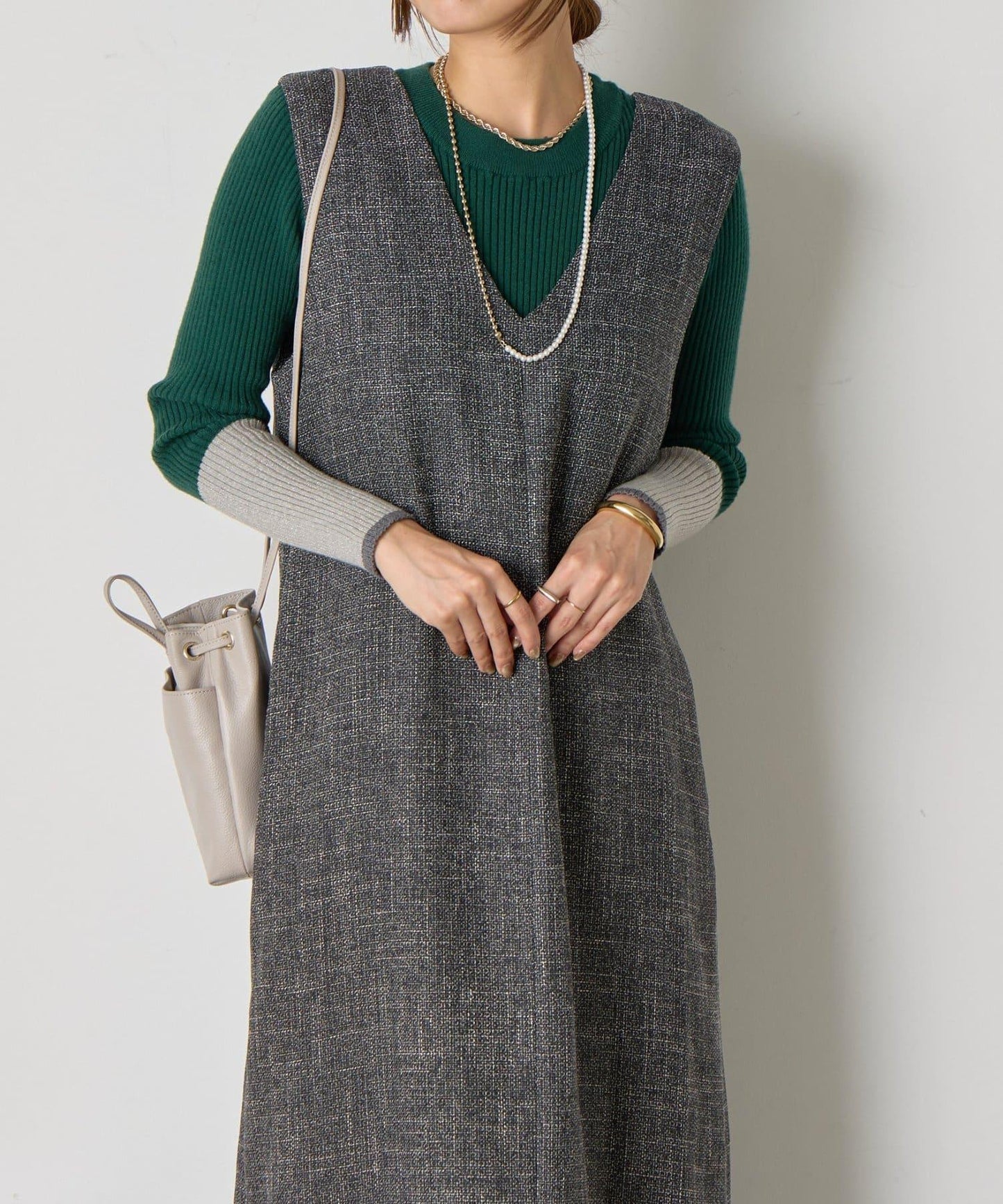 深 V 領和斜紋軟呢面料給人可愛又成熟的印象。