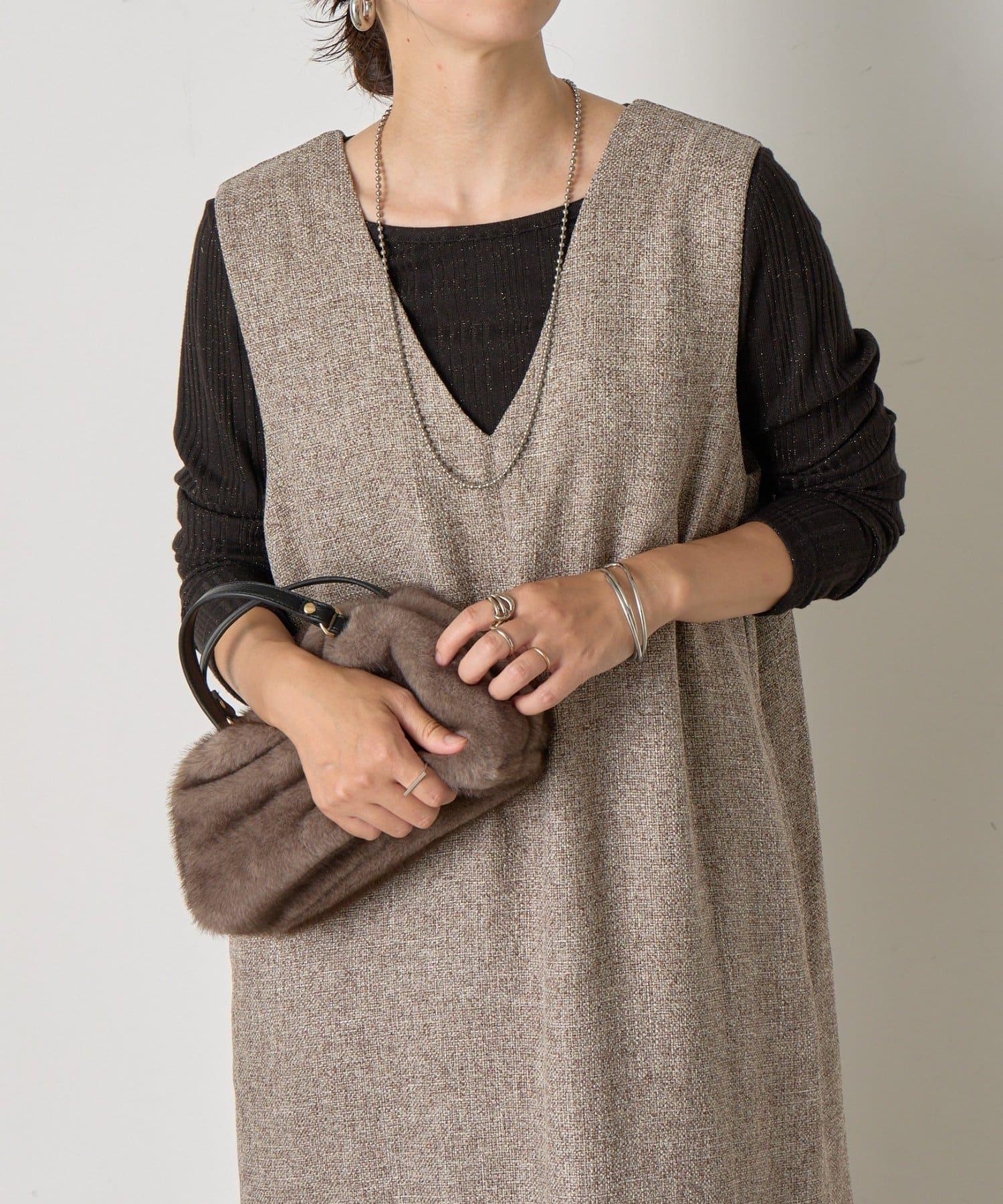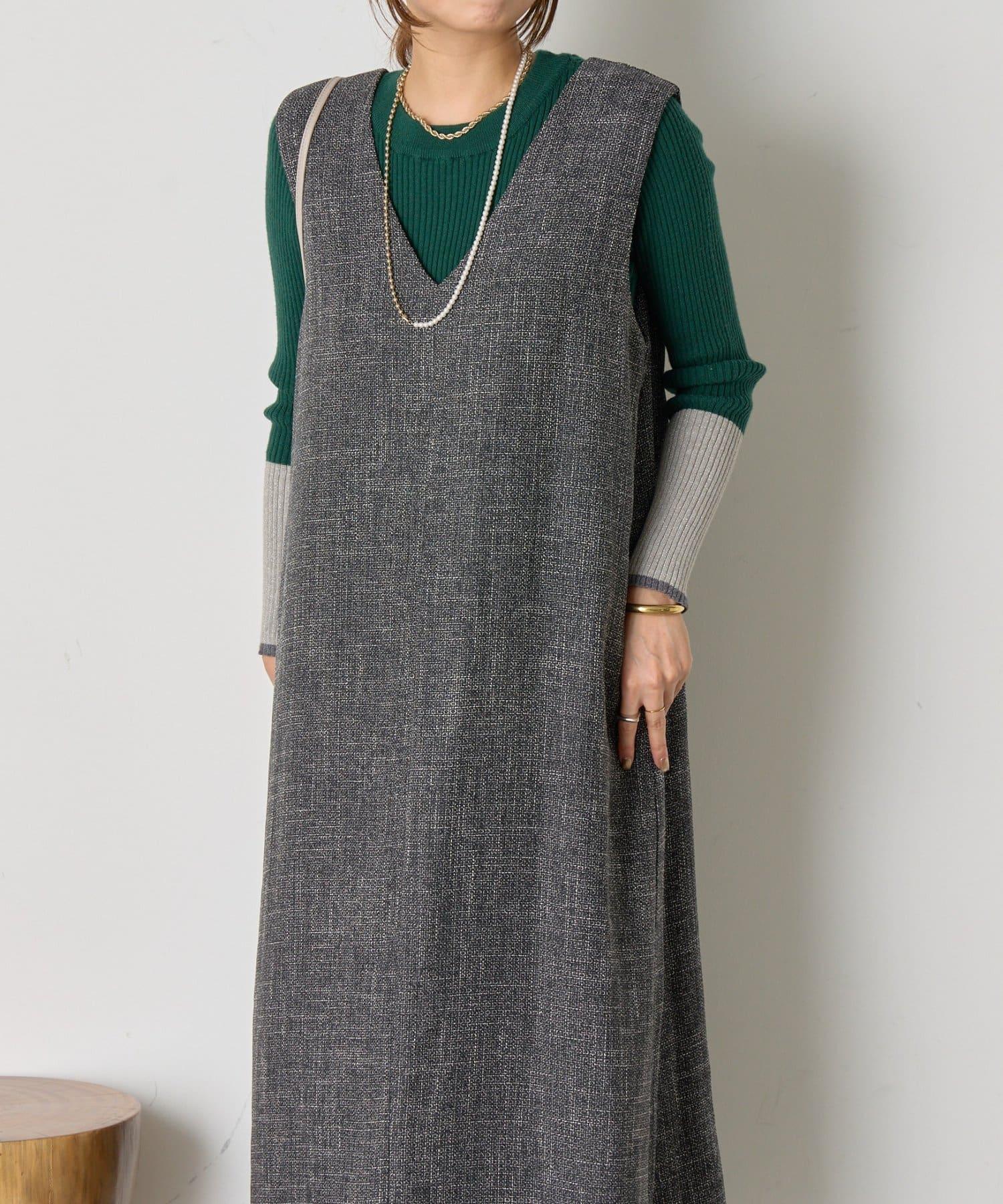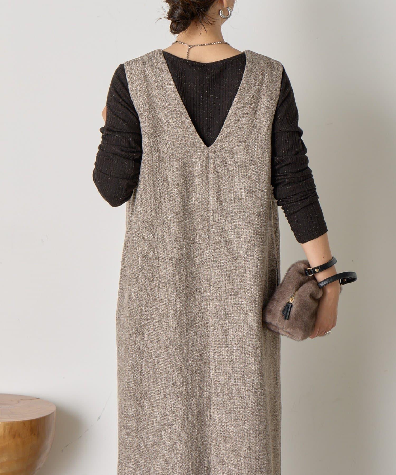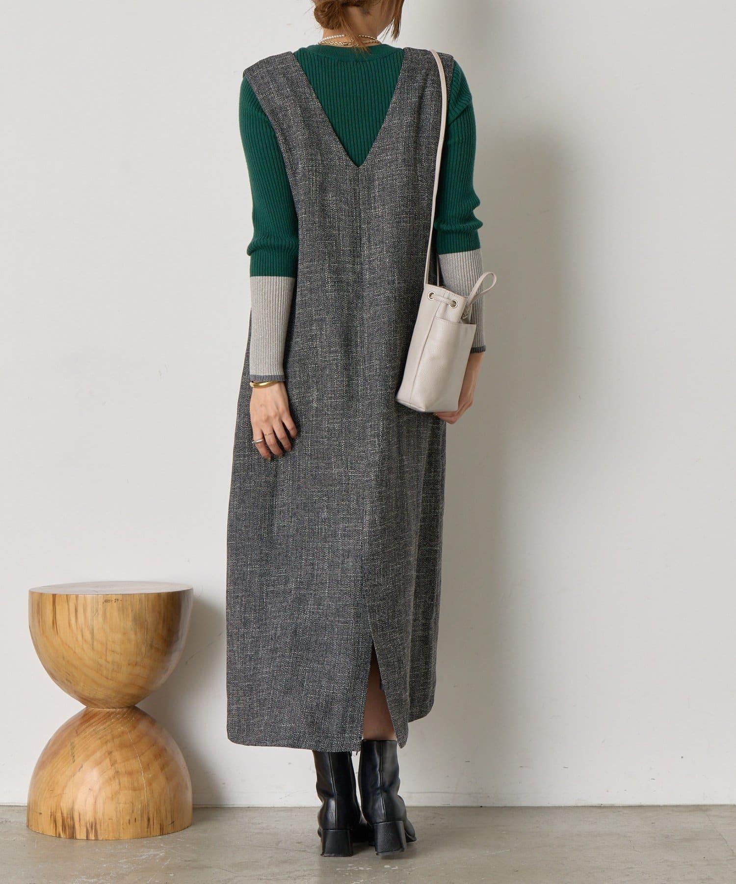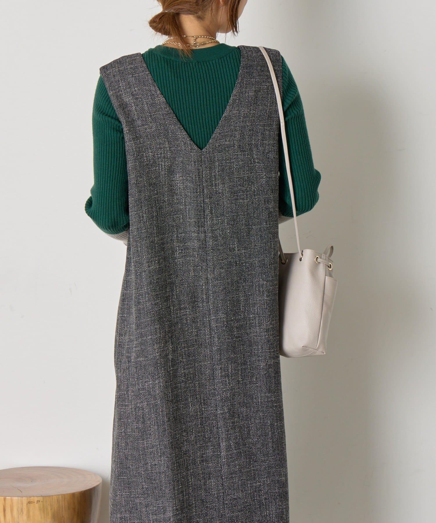 深 V 領和斜紋軟呢面料給人可愛又成熟的印象。