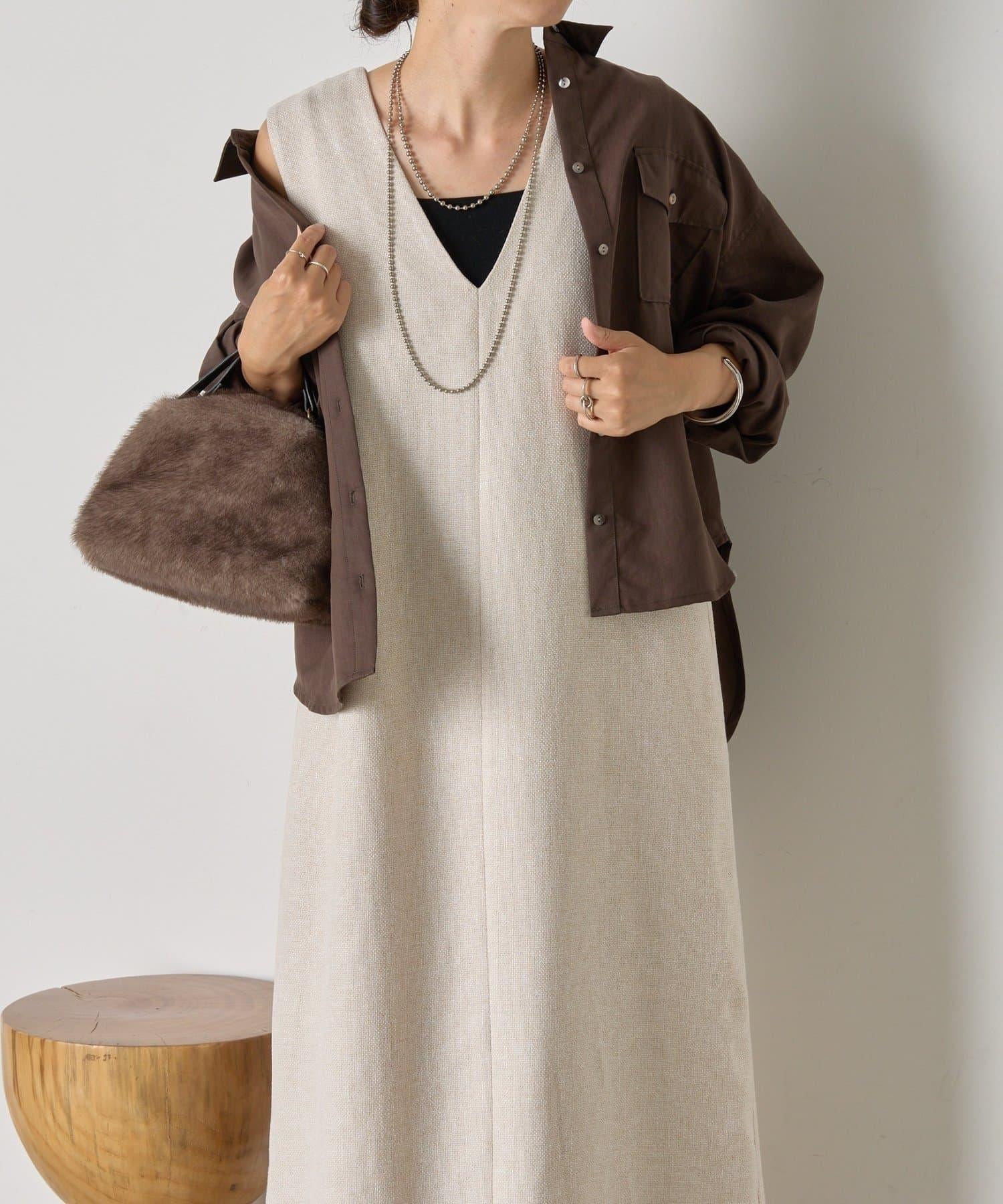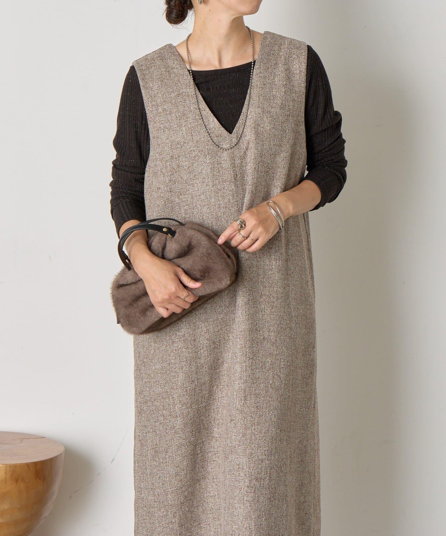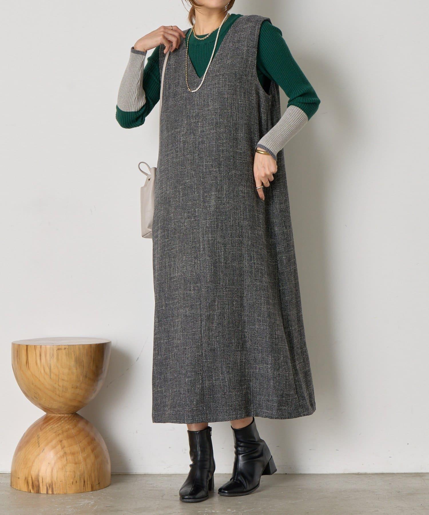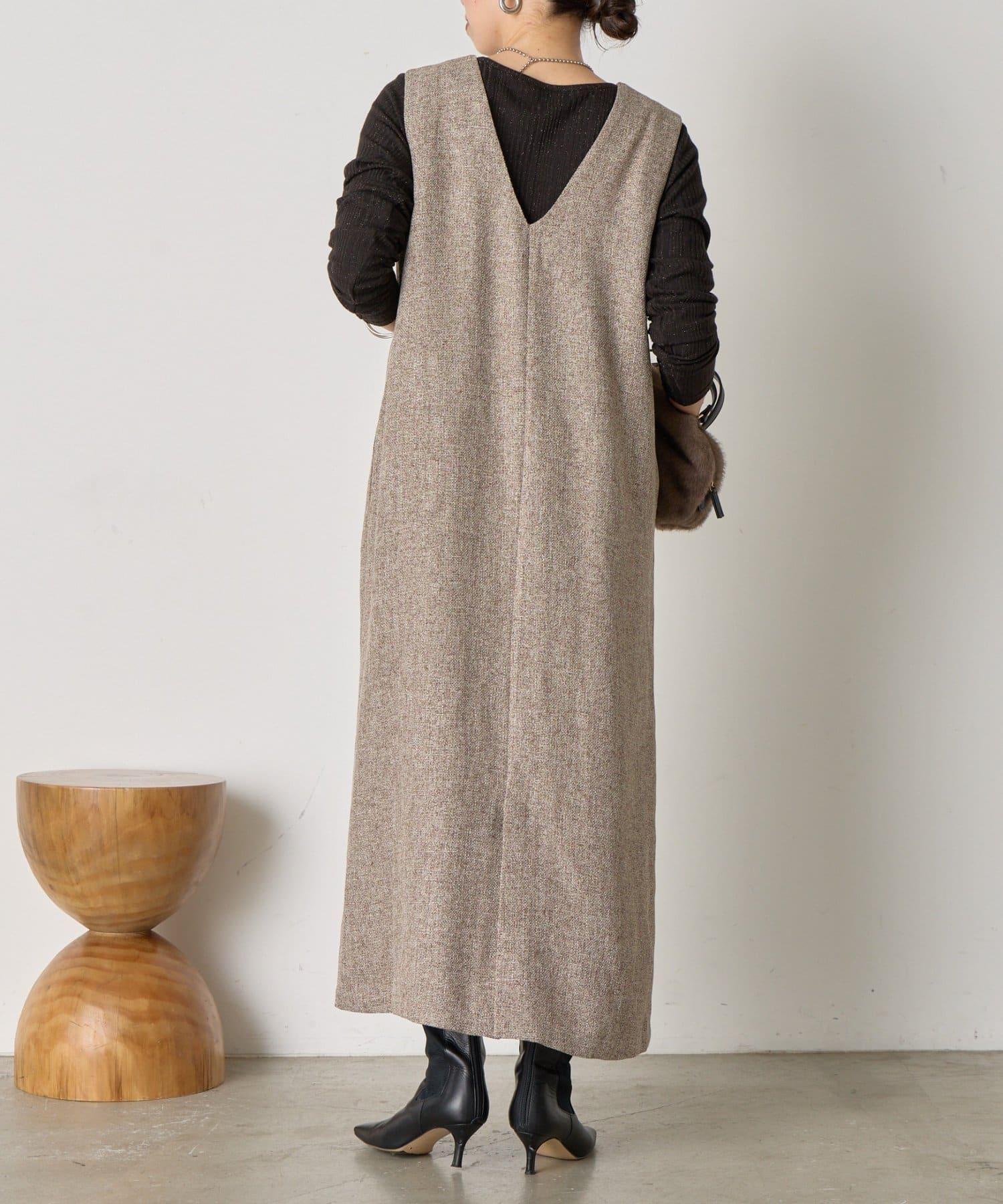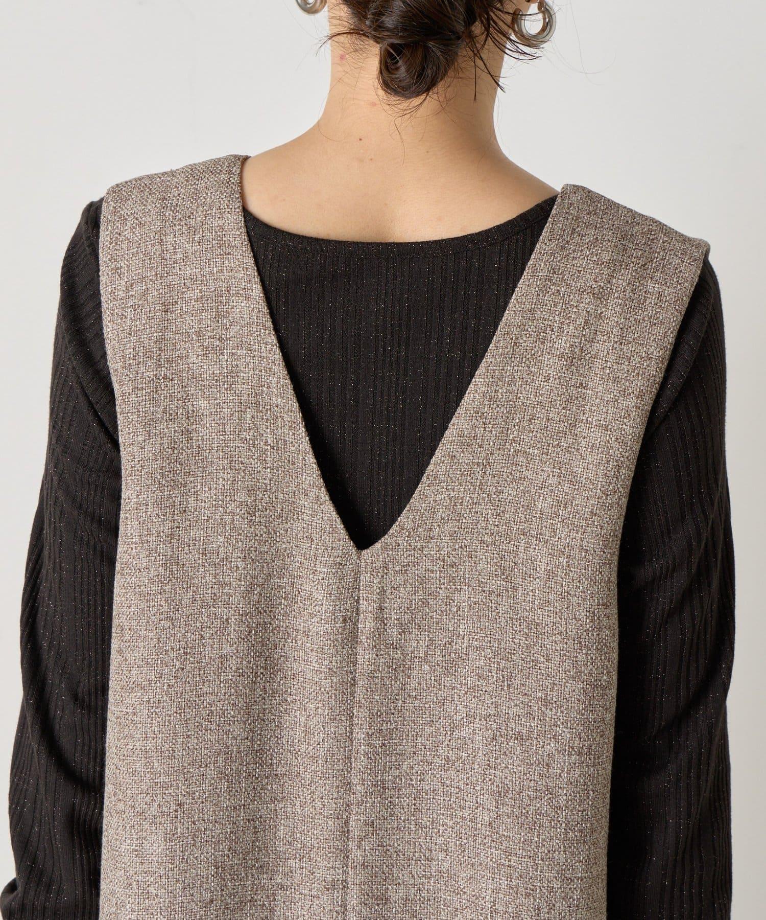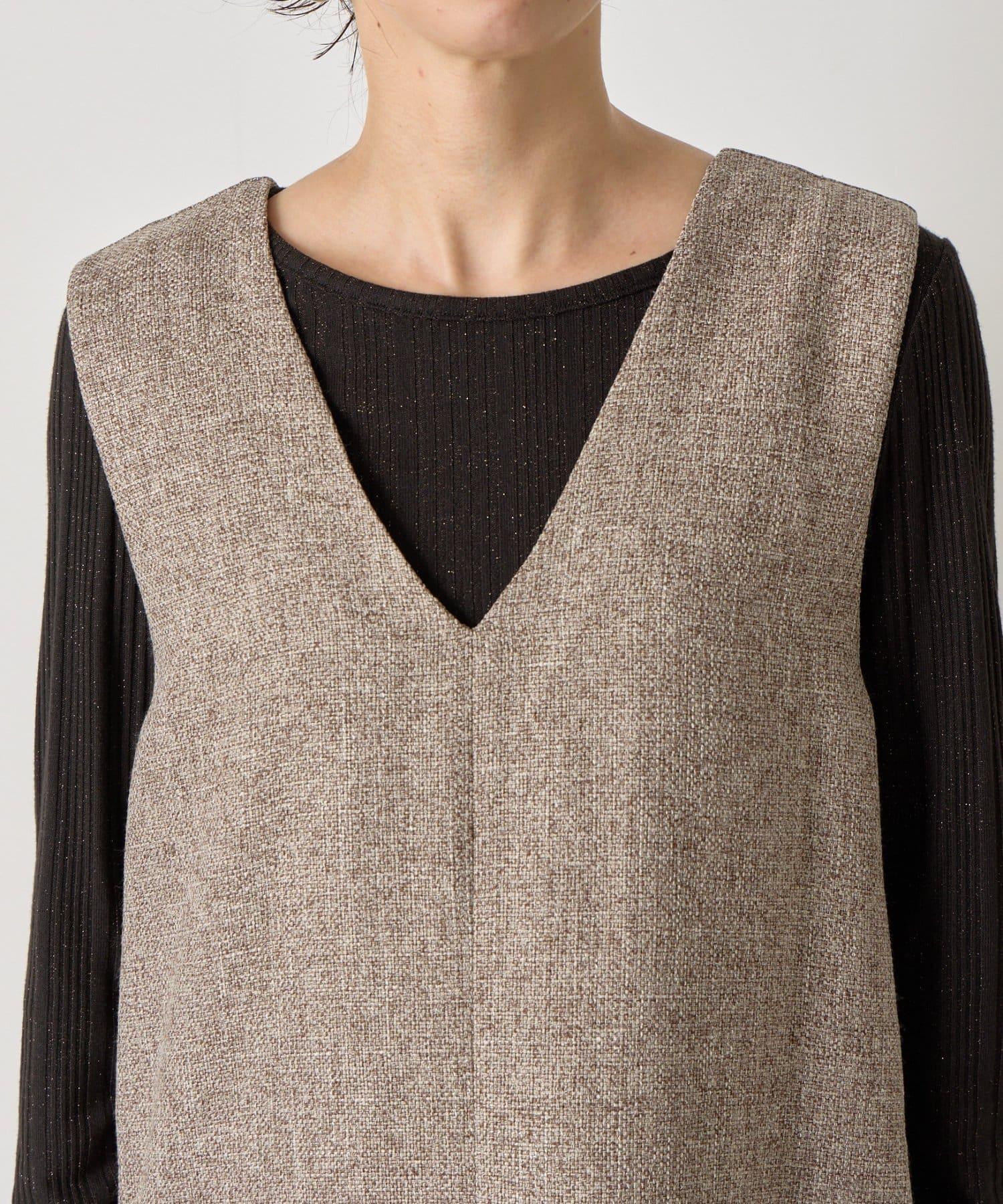 深 V 領和斜紋軟呢面料給人可愛又成熟的印象。
