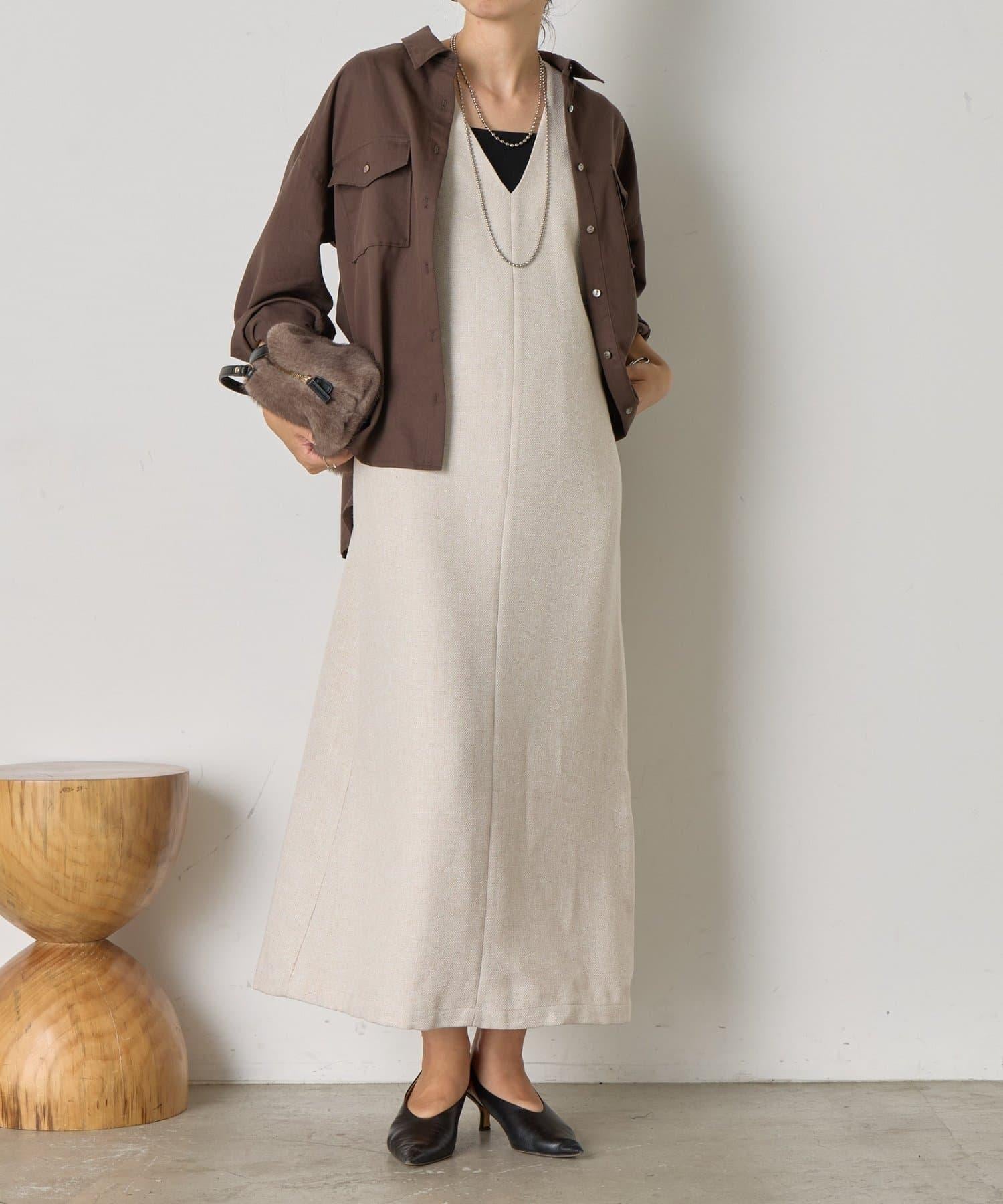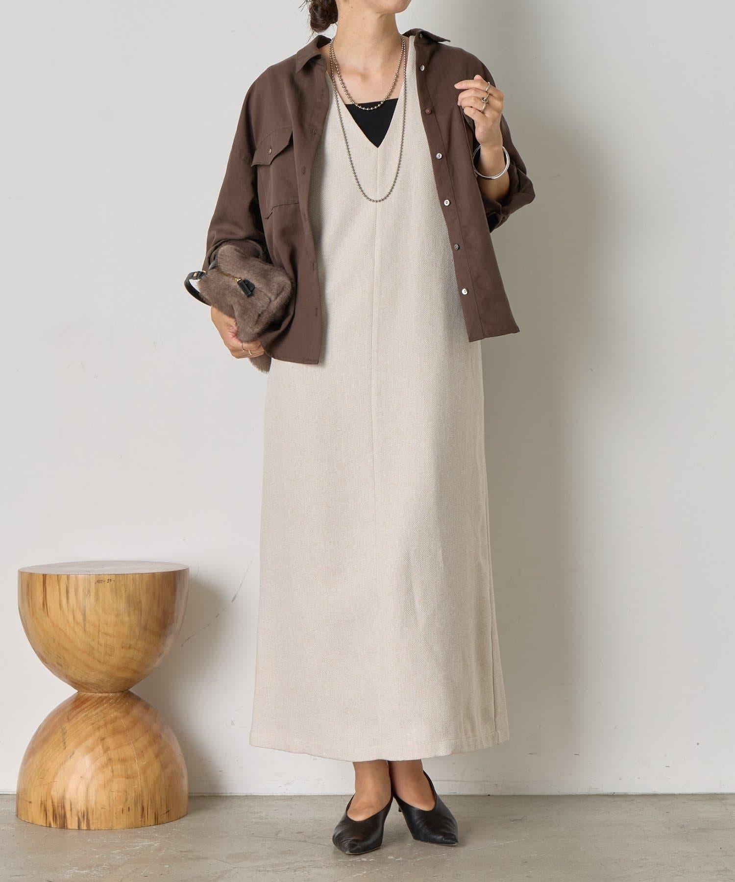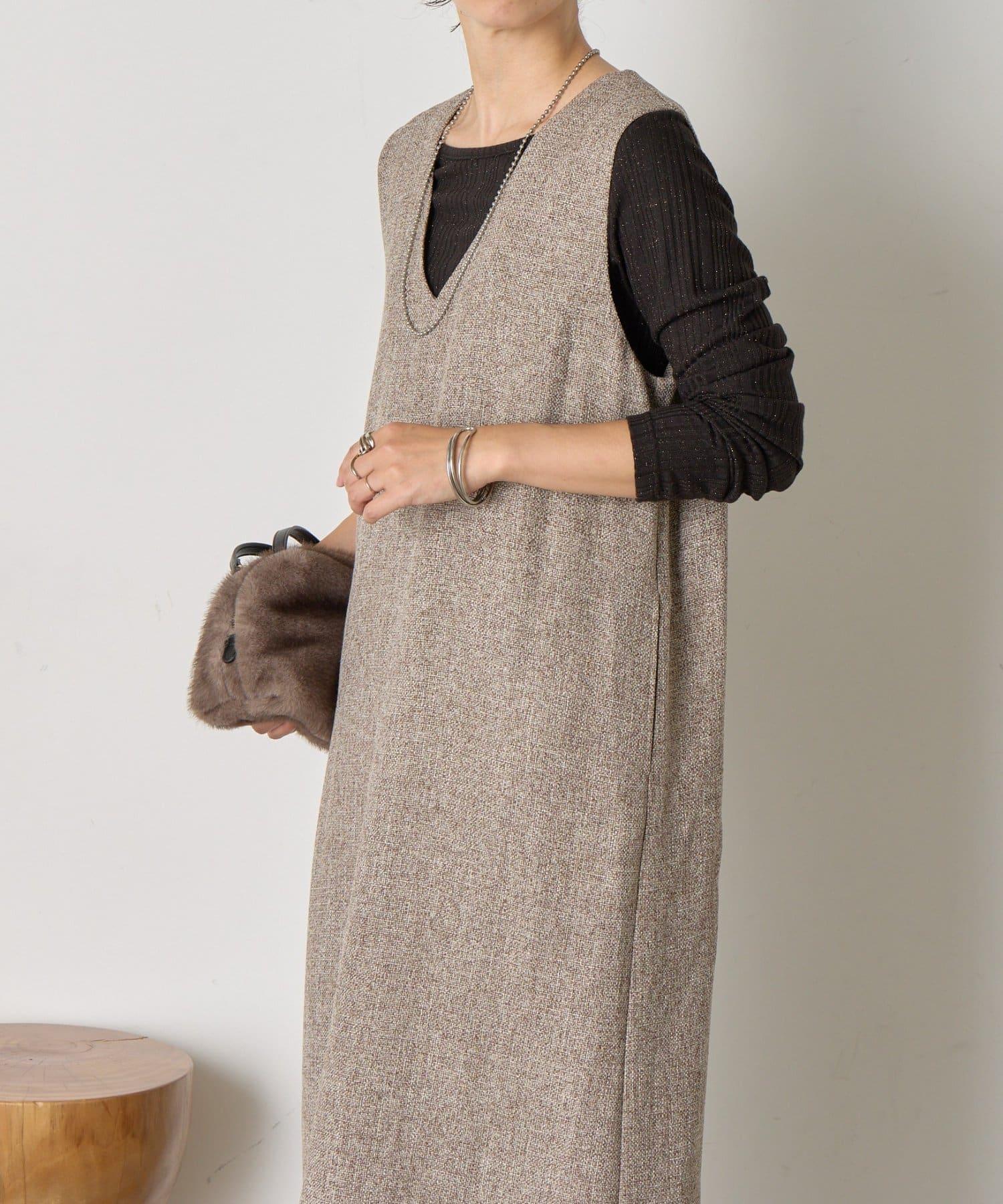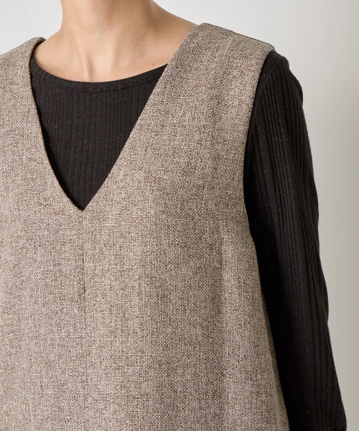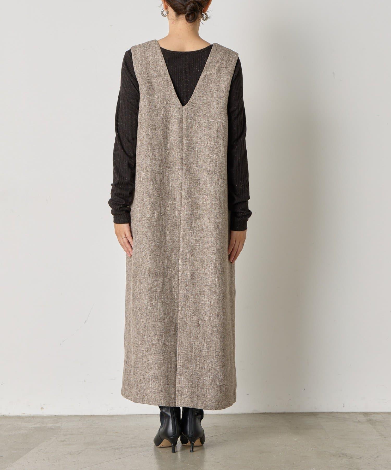 深 V 領和斜紋軟呢面料給人可愛又成熟的印象。