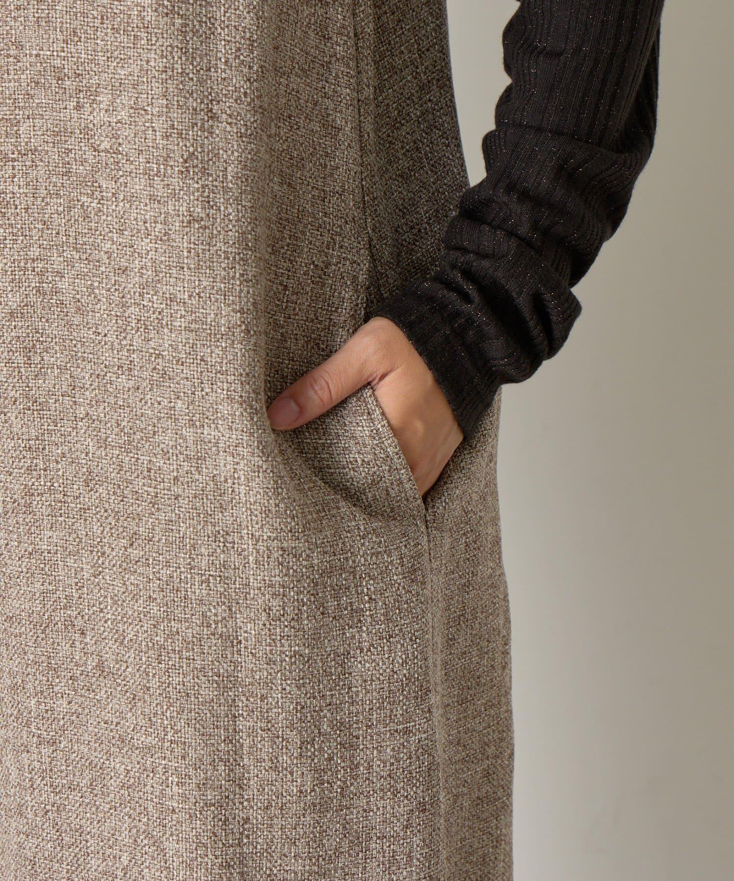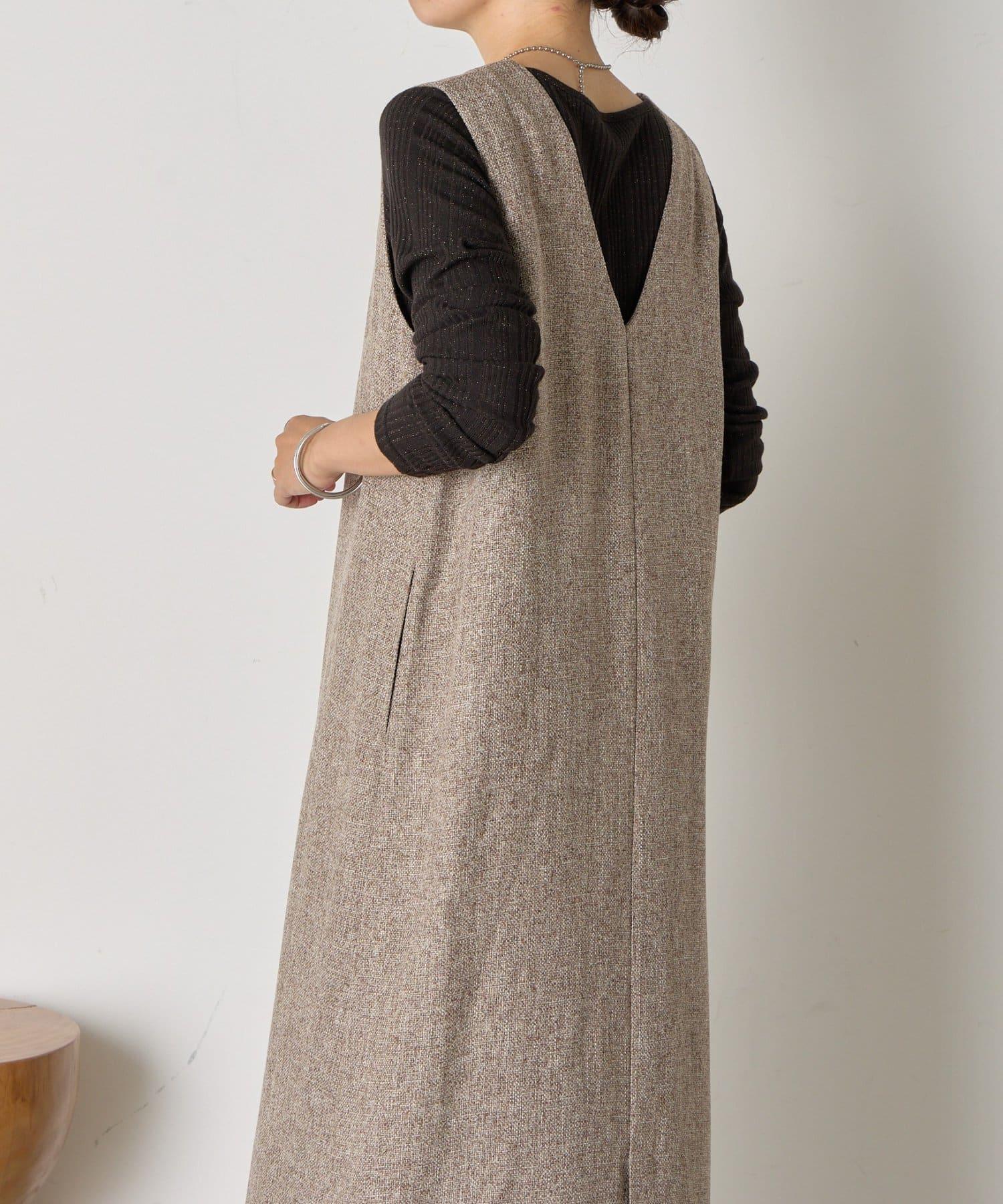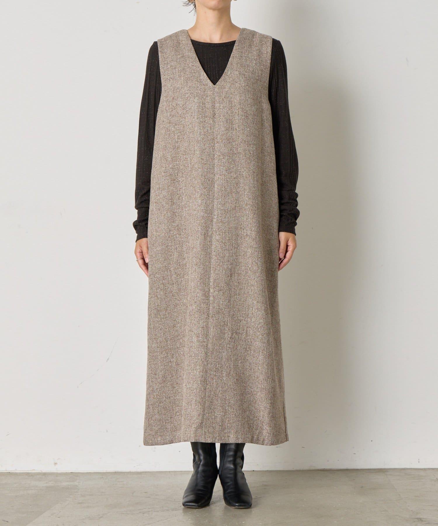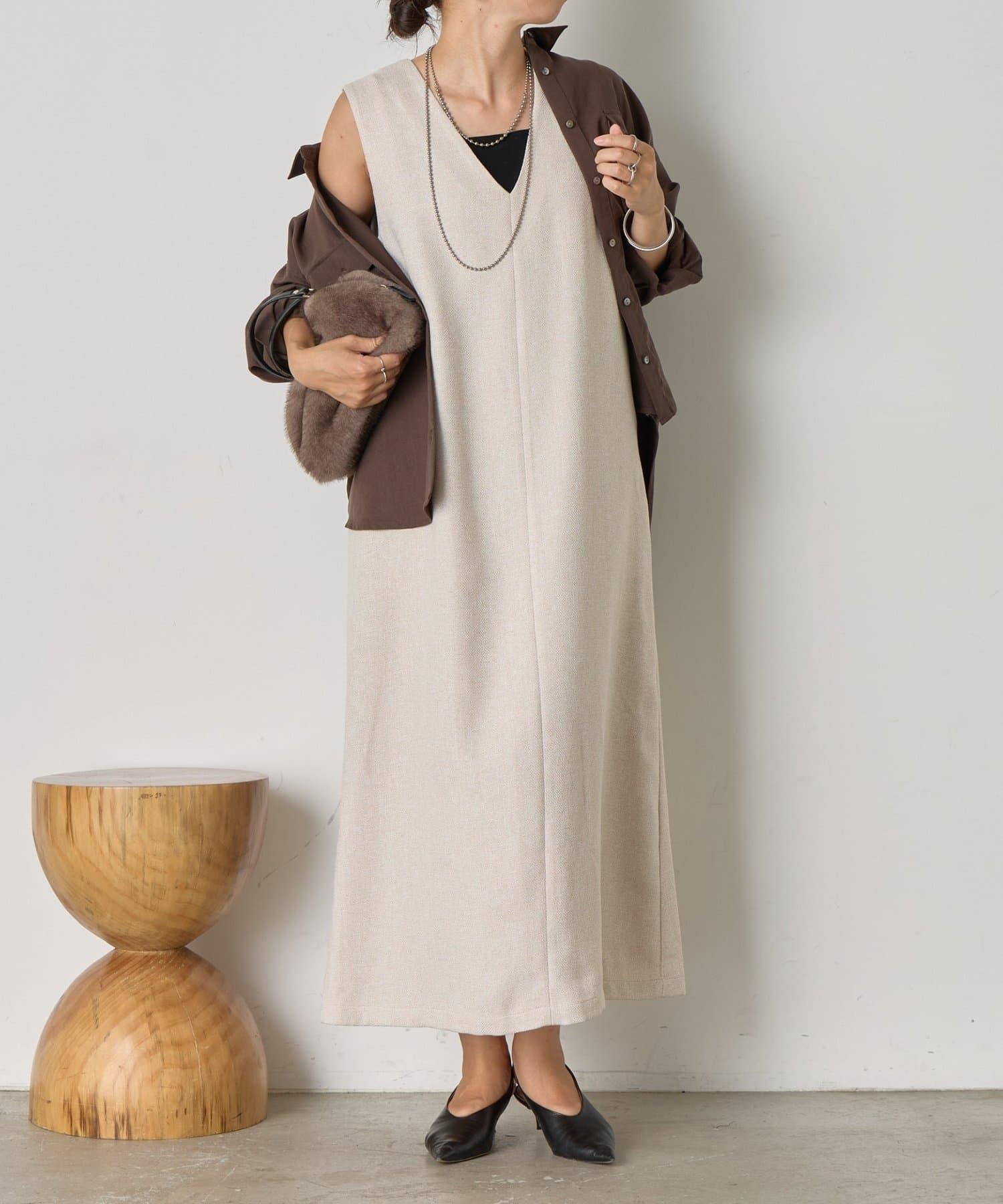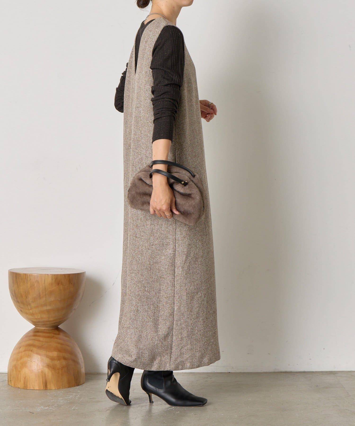 深 V 領和斜紋軟呢面料給人可愛又成熟的印象。