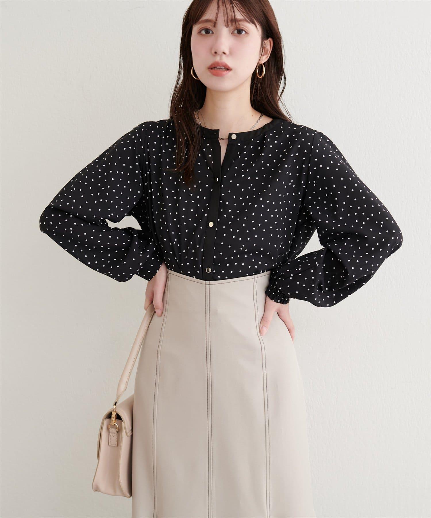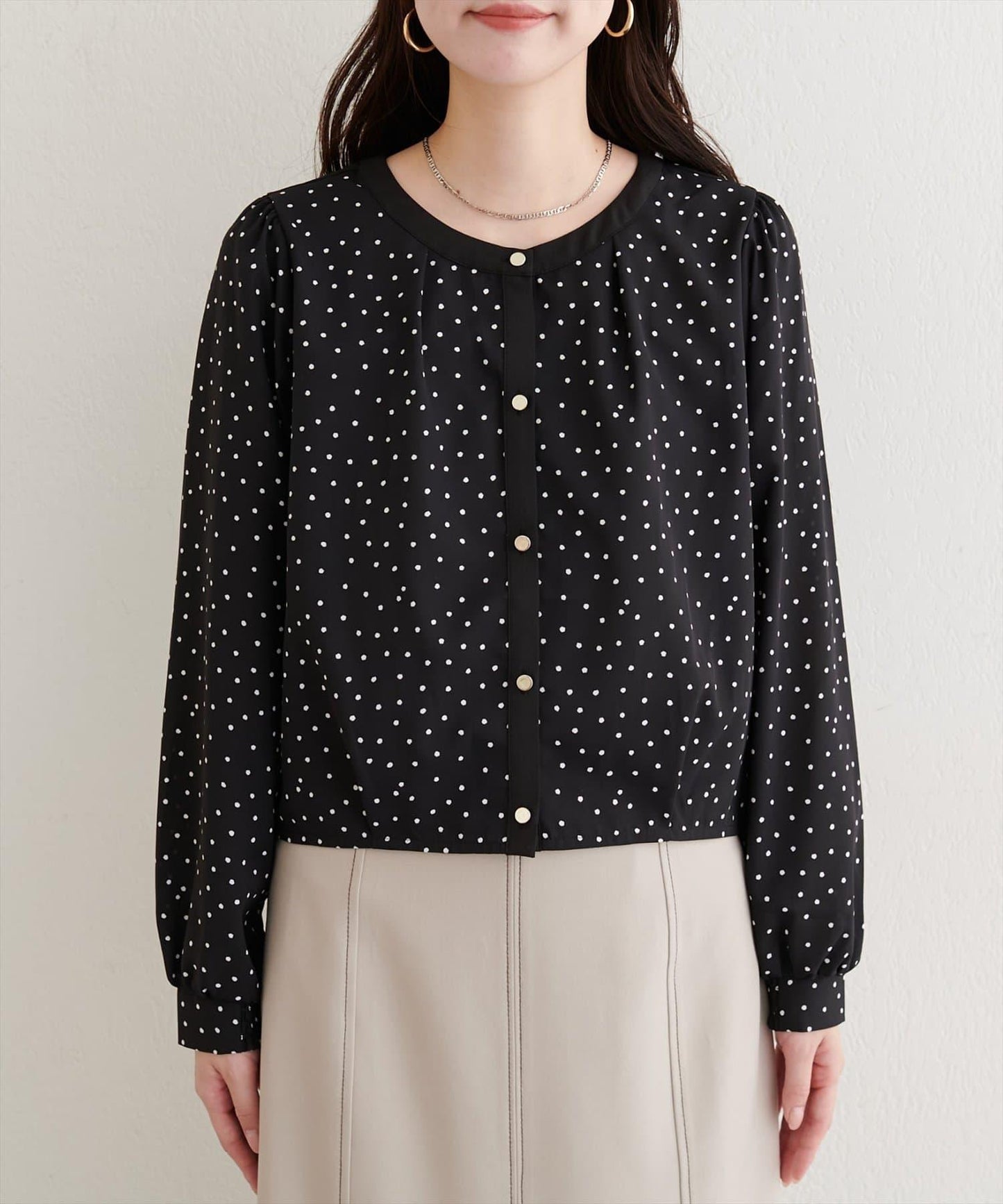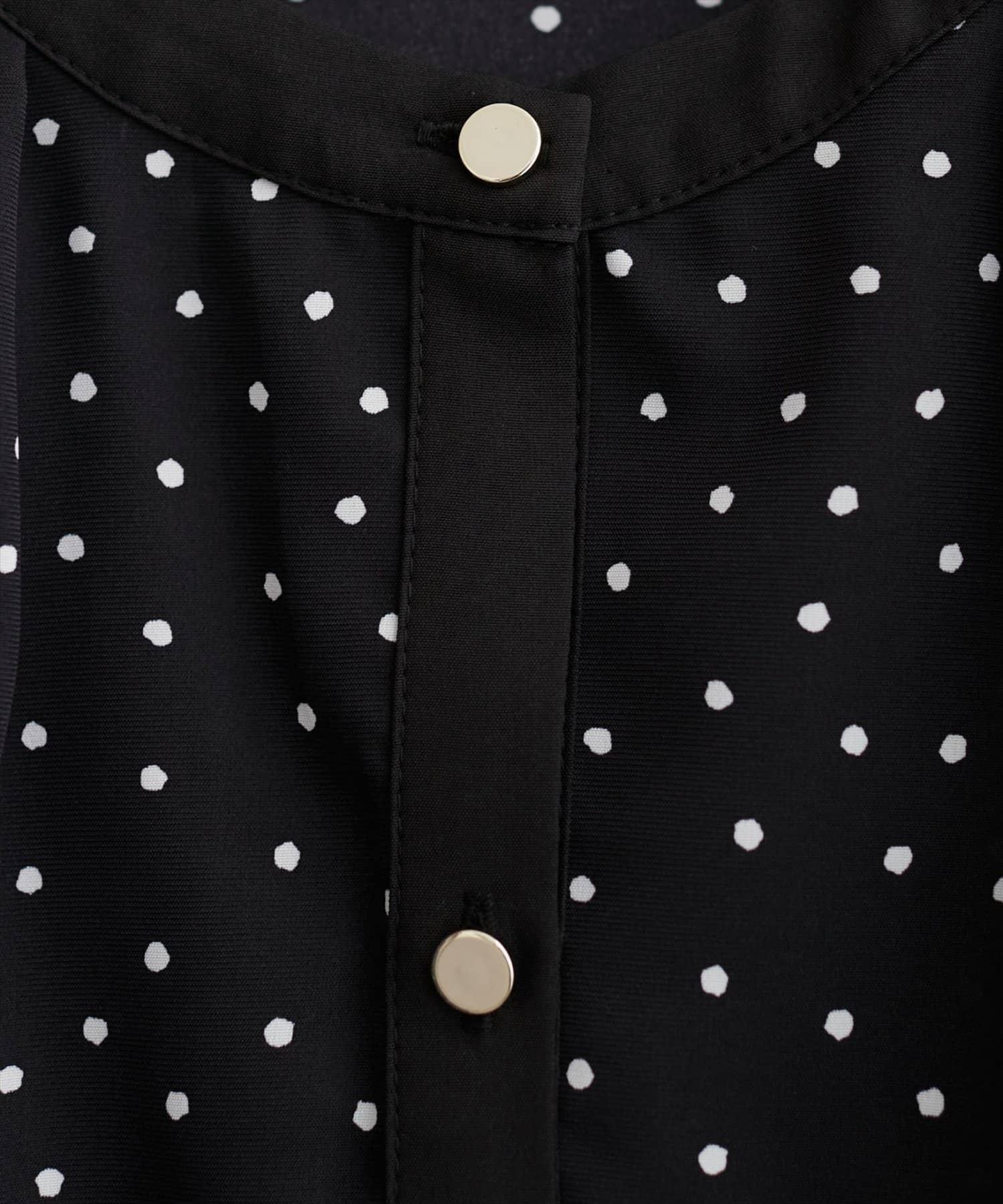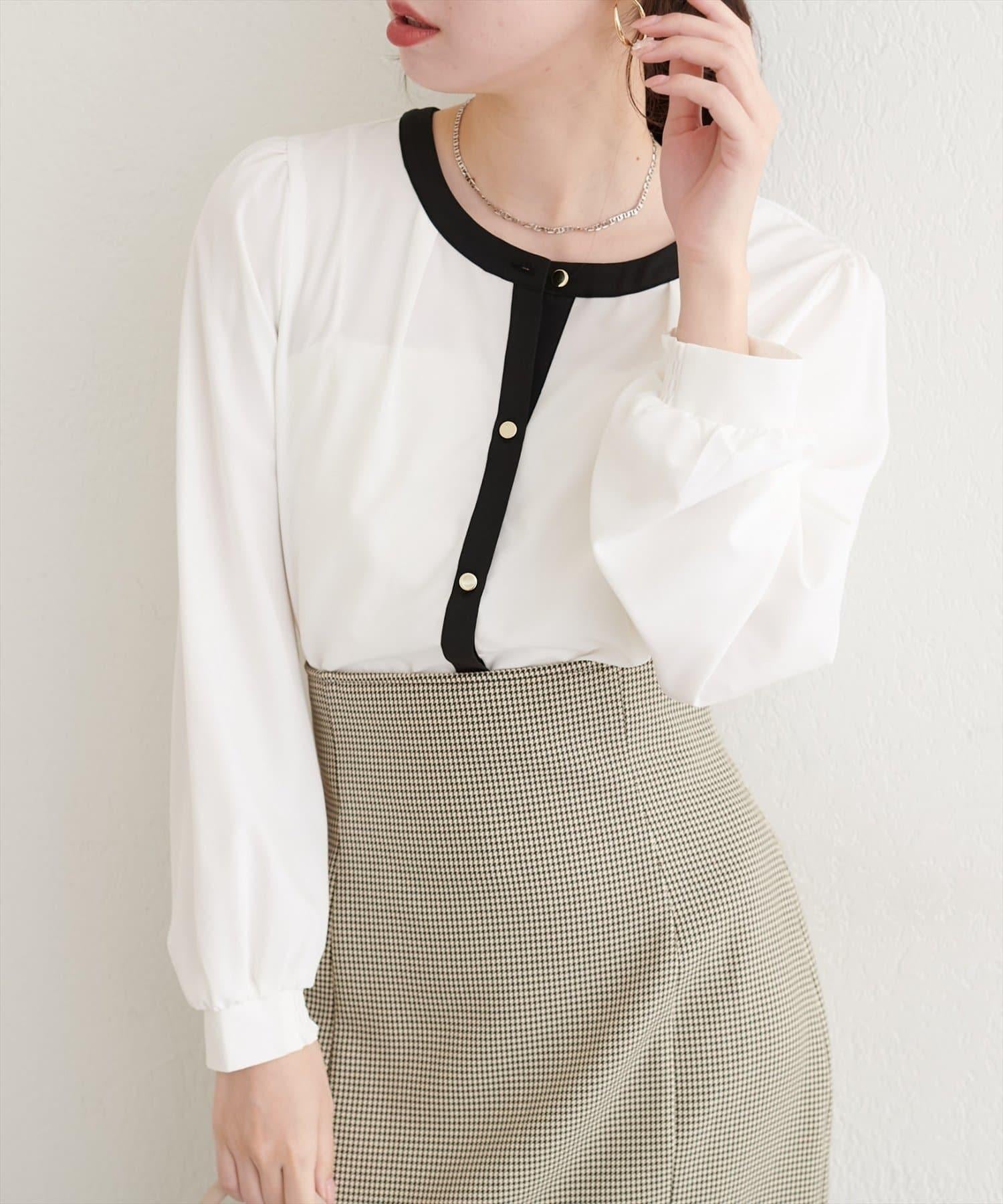 正面的紐扣設計和下襬內收的蓬鬆剪裁是這款襯衫的特色。