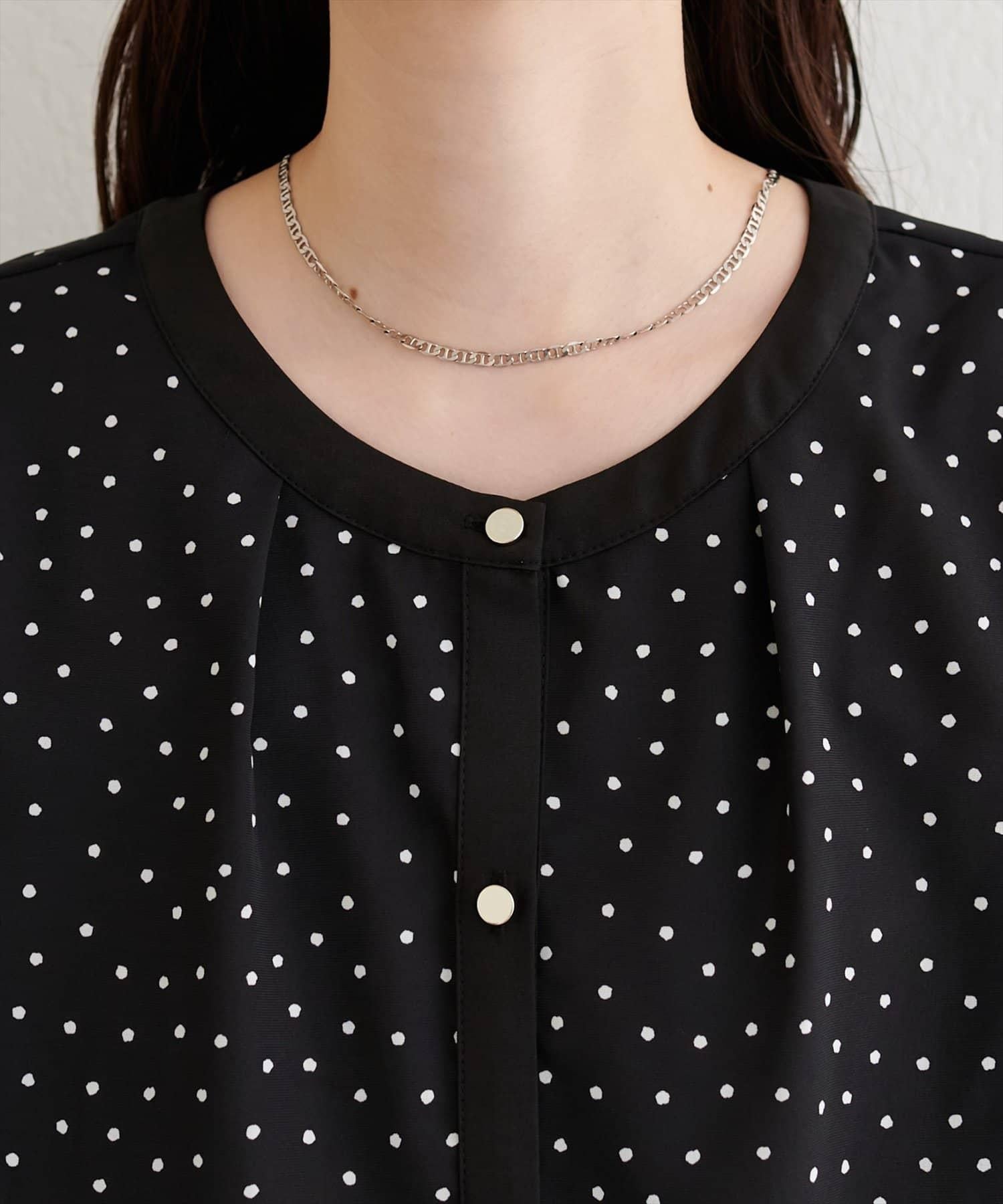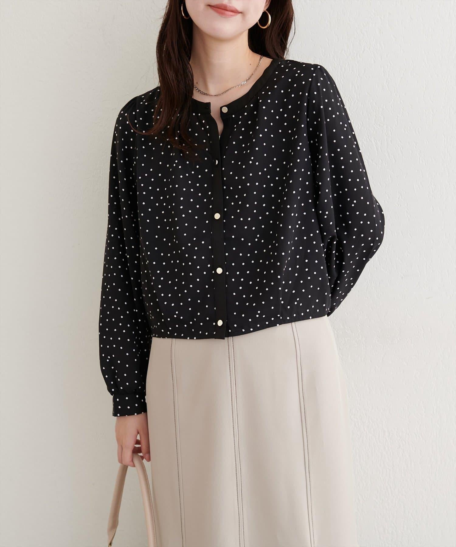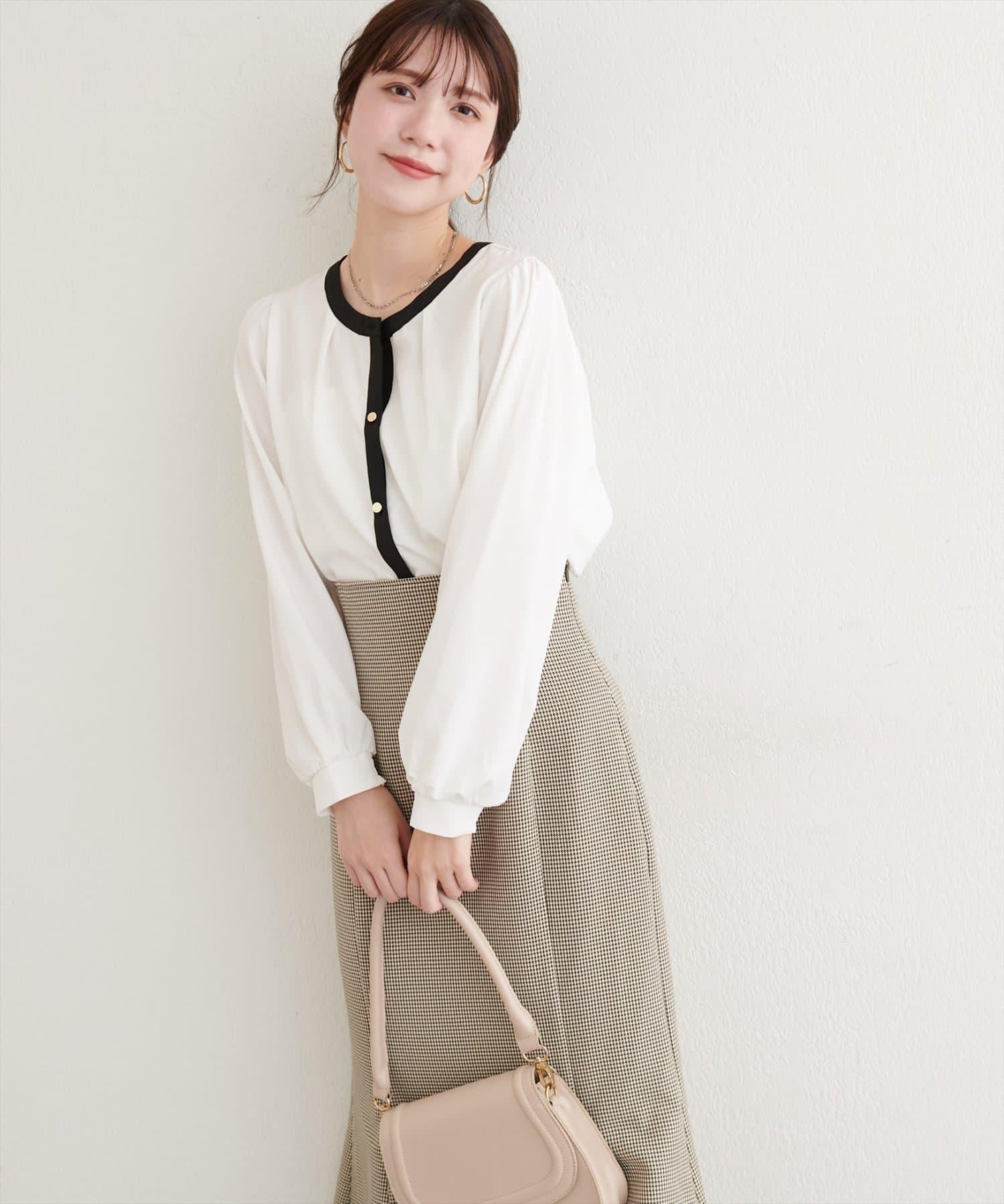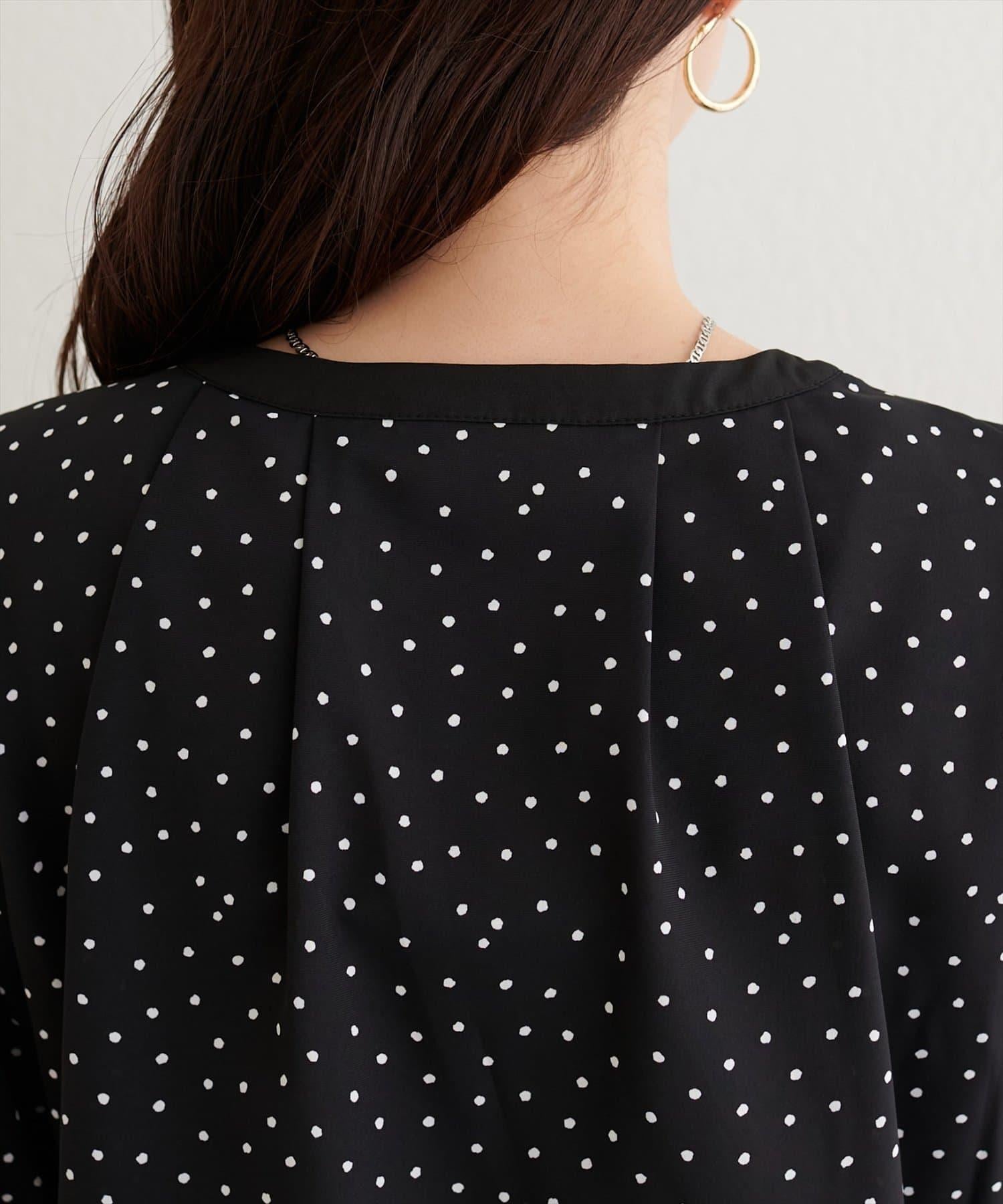 正面的紐扣設計和下襬內收的蓬鬆剪裁是這款襯衫的特色。
