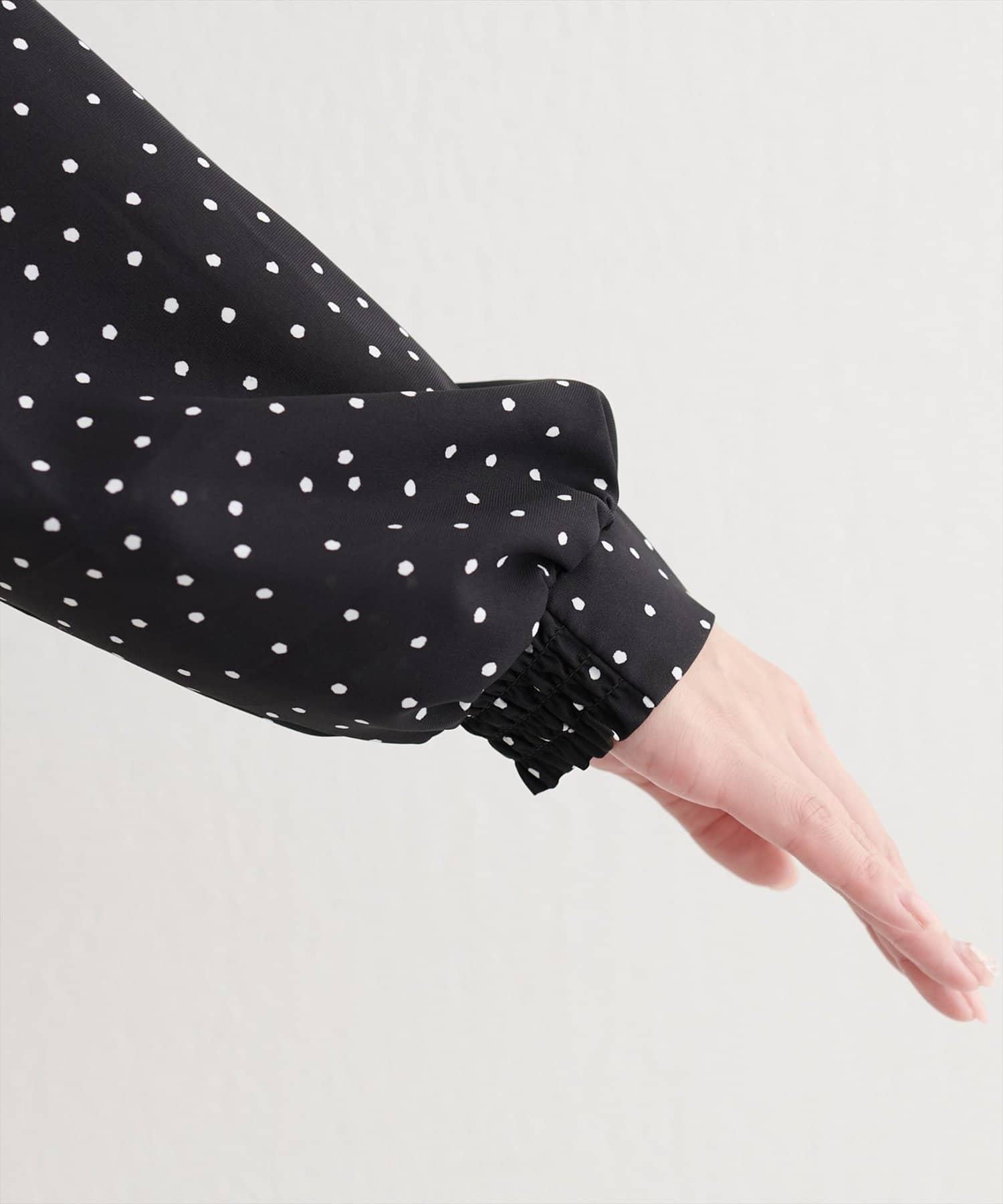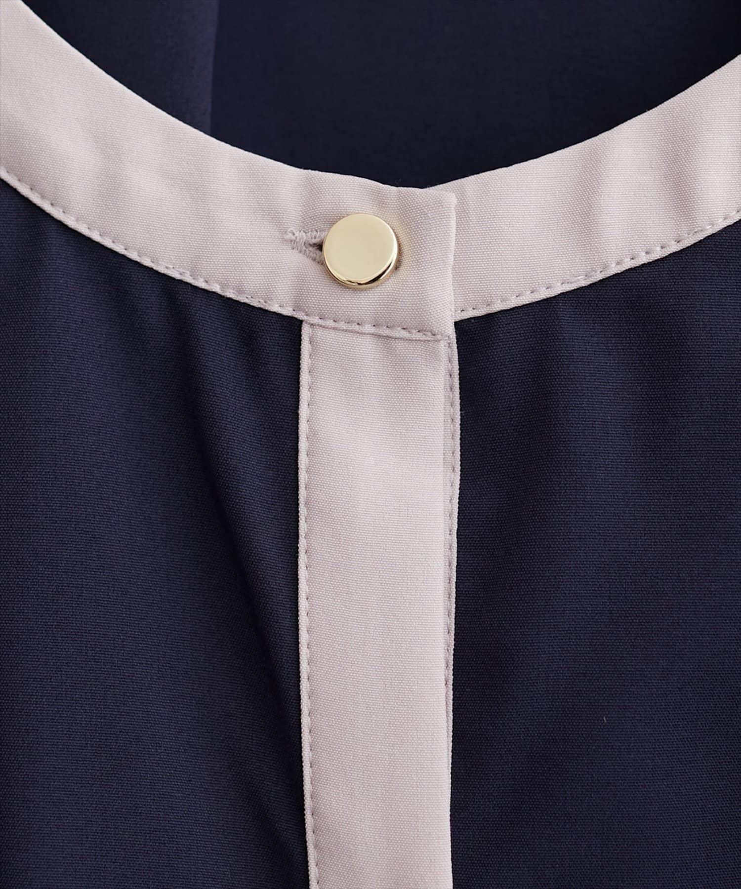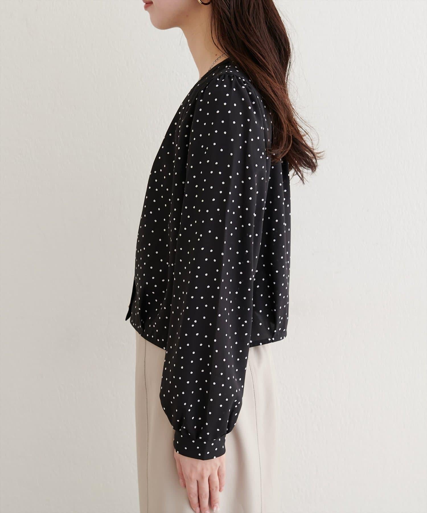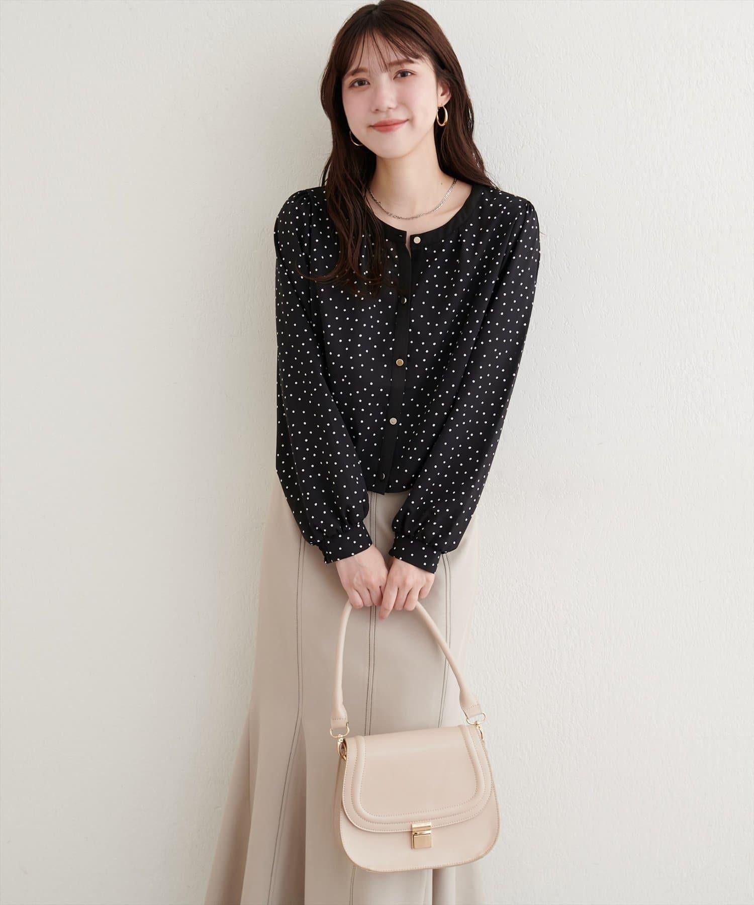 正面的紐扣設計和下襬內收的蓬鬆剪裁是這款襯衫的特色。