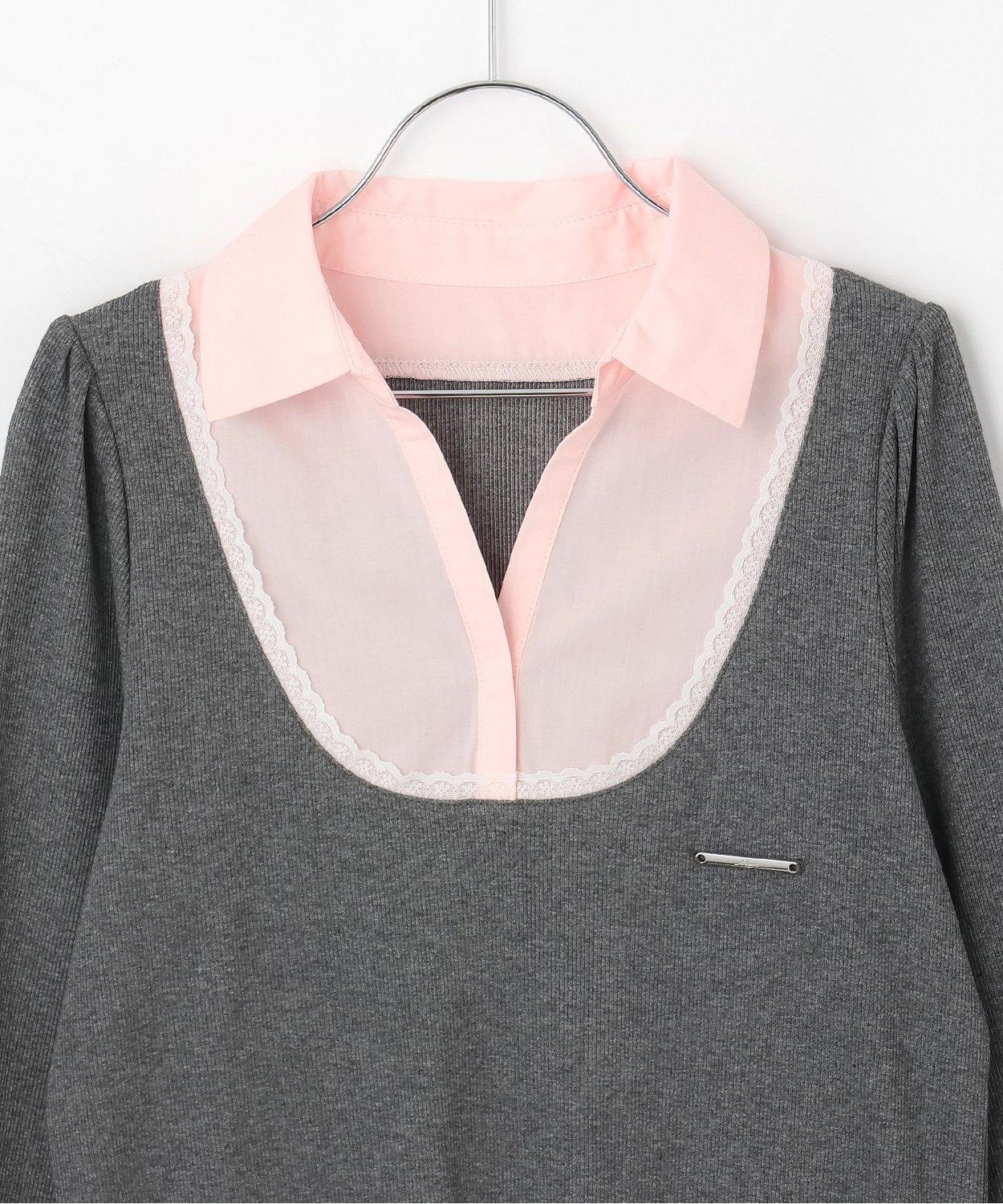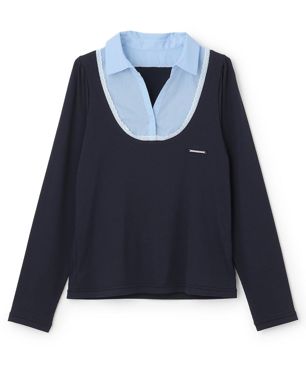 這款設計感十足的剪裁縫製 上衣 帶有精緻的蕾絲和原創設計圖版! 這款假分層單品由彈力剪接材料和編織物製成! 蕾絲夾在剪裁的身體部分和襯衫的接縫之間,增加了甜美感。建議搭配百褶裙或帶有流蘇設計的迷你下裝!