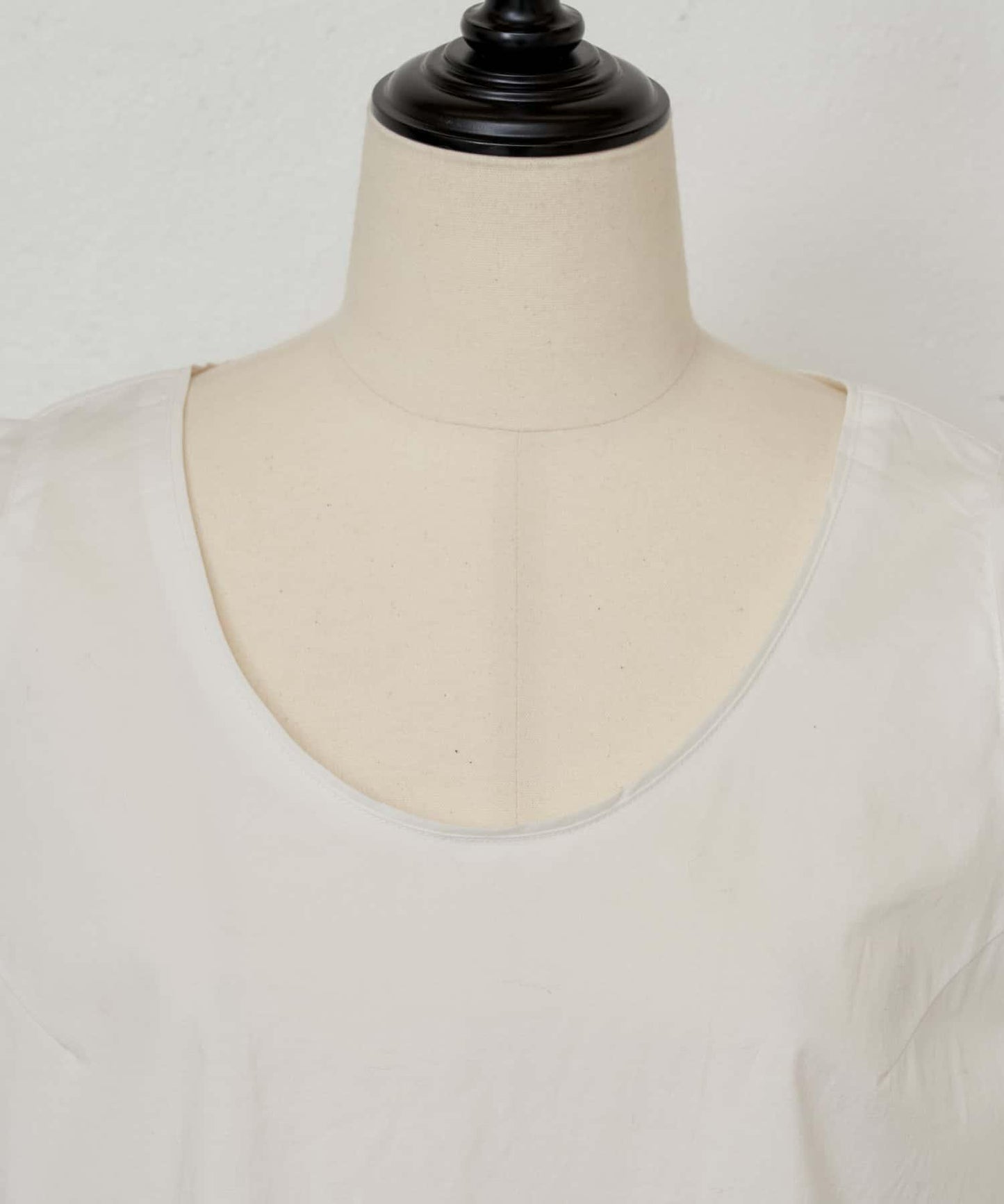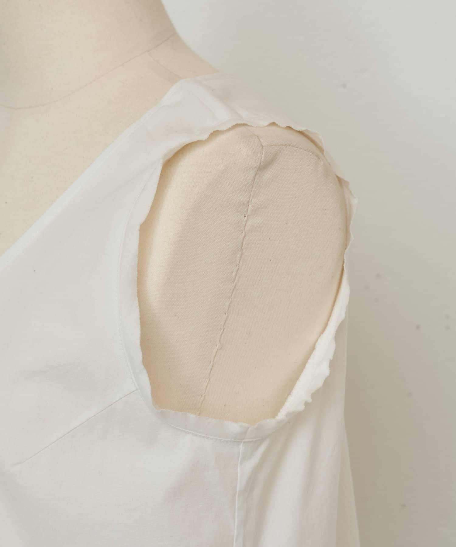下襬和臂孔採用斜紋布裁剪,這也是一個設計要點。
