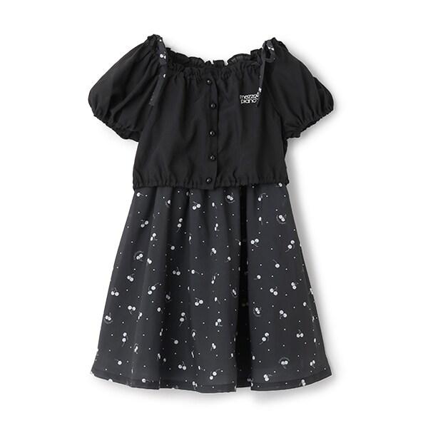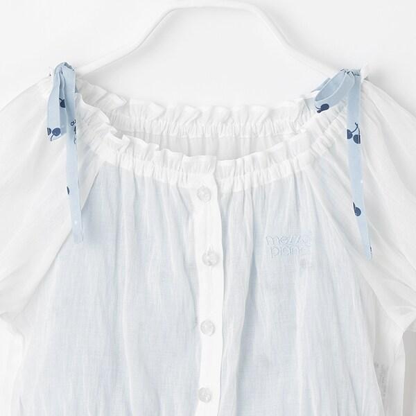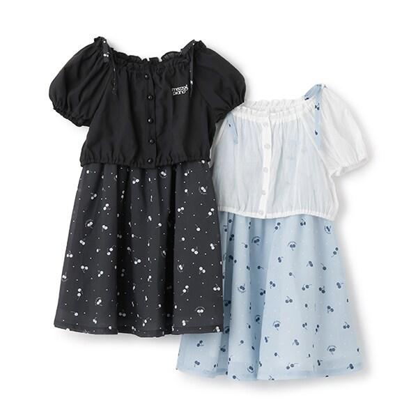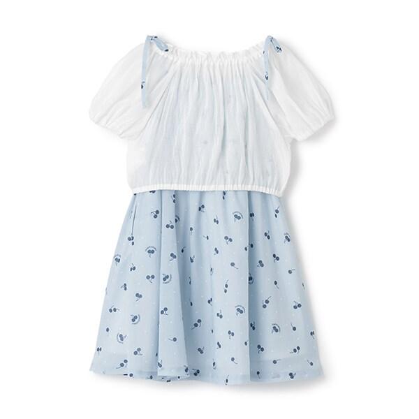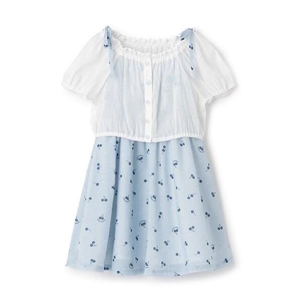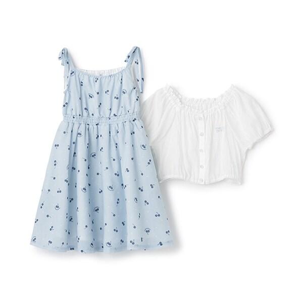 襯衫與櫻桃圖案吊帶連衣裙套裝