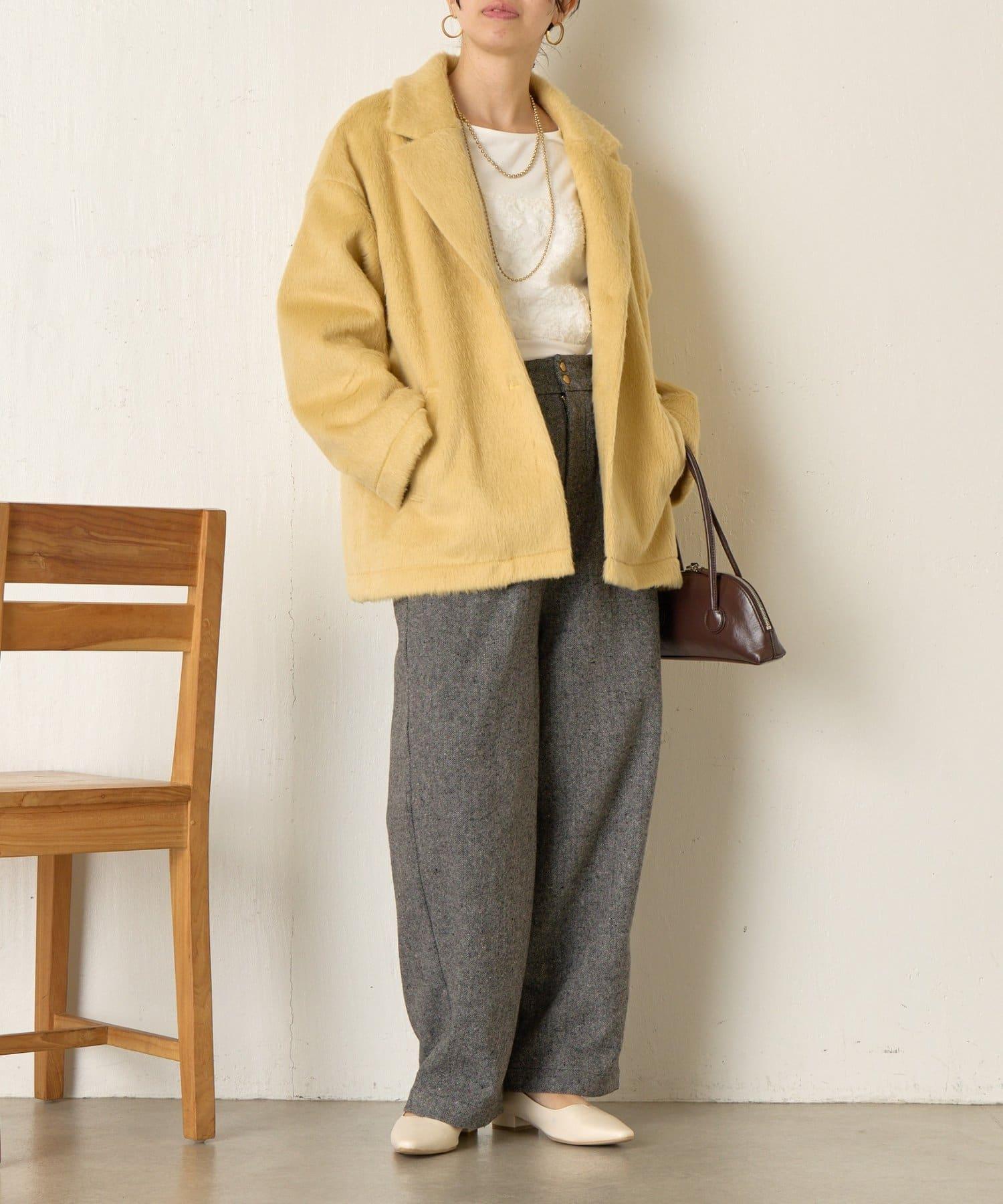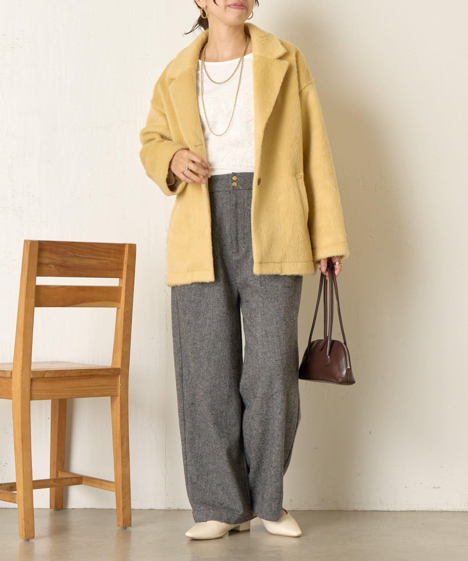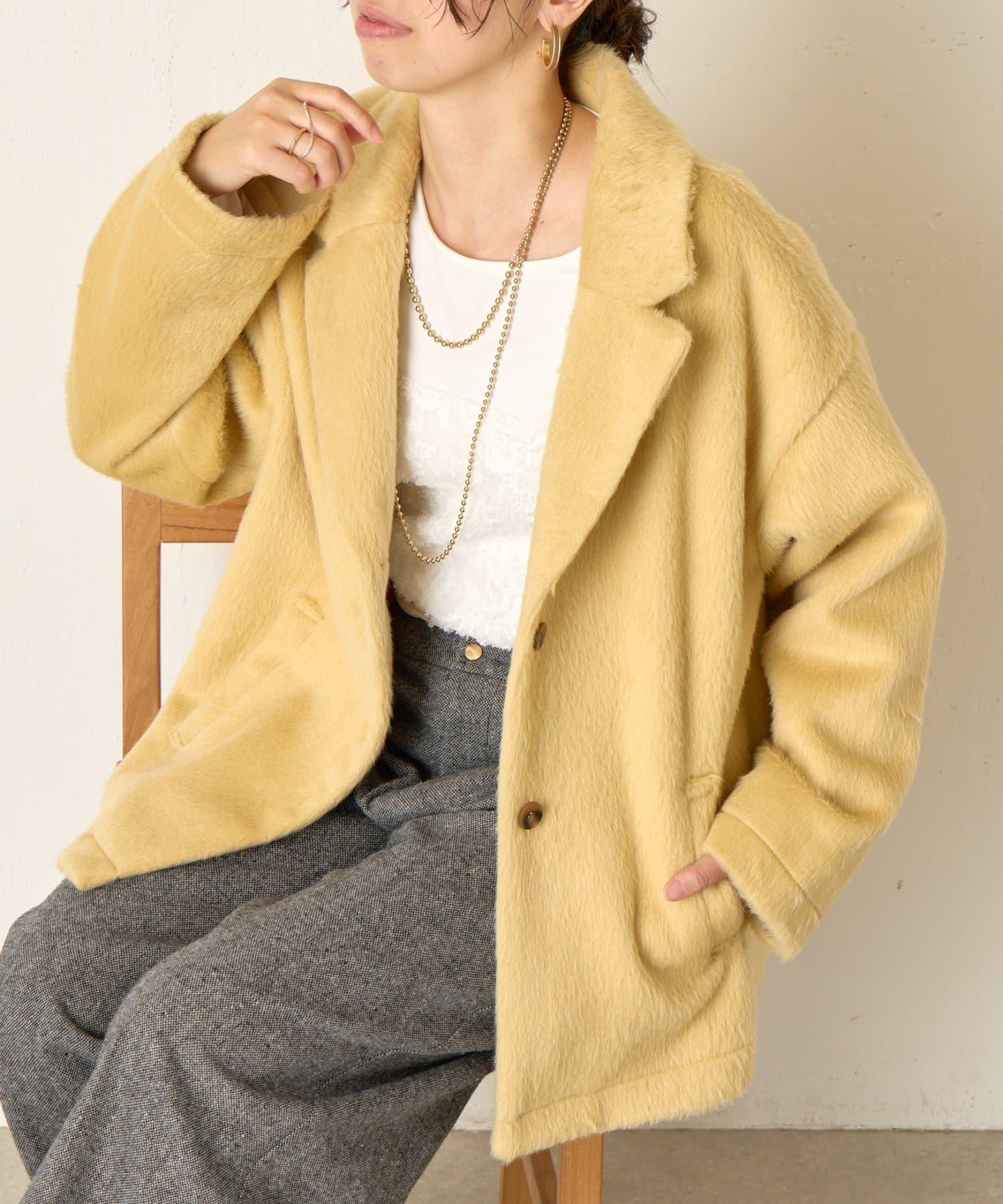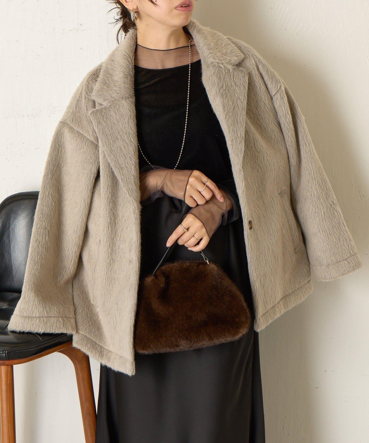 蓬鬆的長絨毛材質營造出優雅的立體效果。