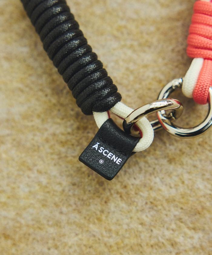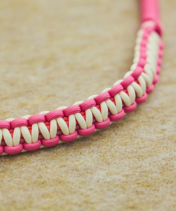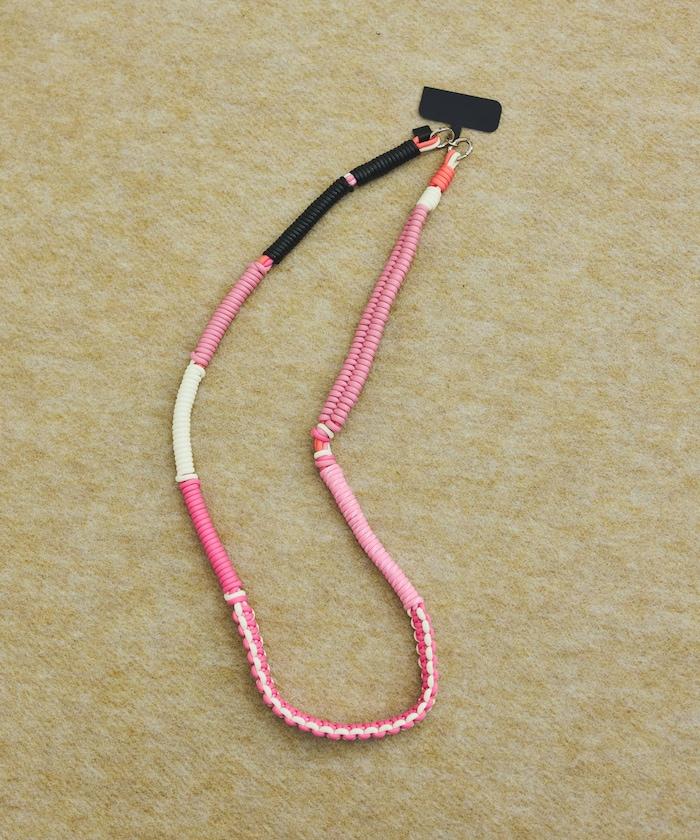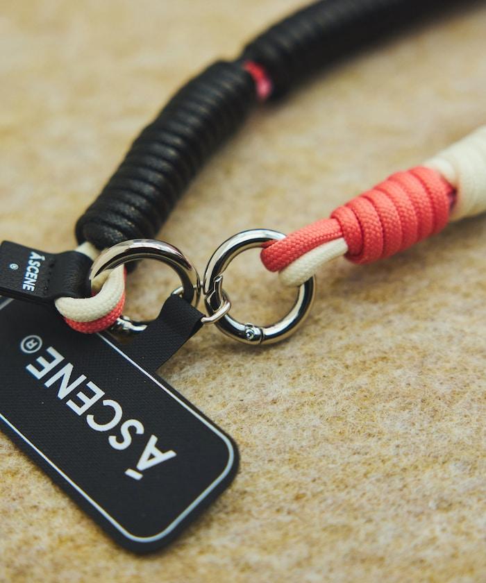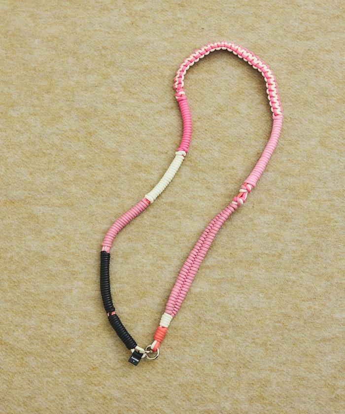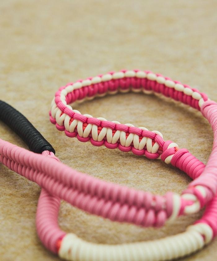 肩帶由色彩繽紛、編織複雜的傘繩編織而成,具有強烈的視覺衝擊力。