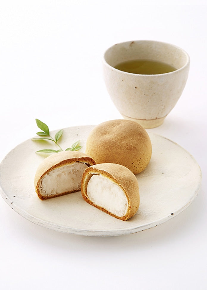 一種傳統的烤包子,用白豆沙裹著海綿蛋糕麵糊烤制而成"。這種包子被稱為 "castella包子",用castella麵糰製作,使其具有鹹味。裡面的白豆沙是用傳統技術揉成的,只有熟練的工匠才會參與這一過程,所以它在口中迅速融化。配料簡單明瞭,註明了原產地和生產者,只使用經過我們工匠精心挑選的新鮮和安全的原料。