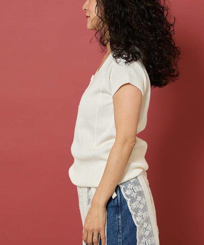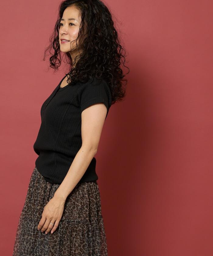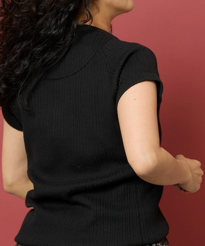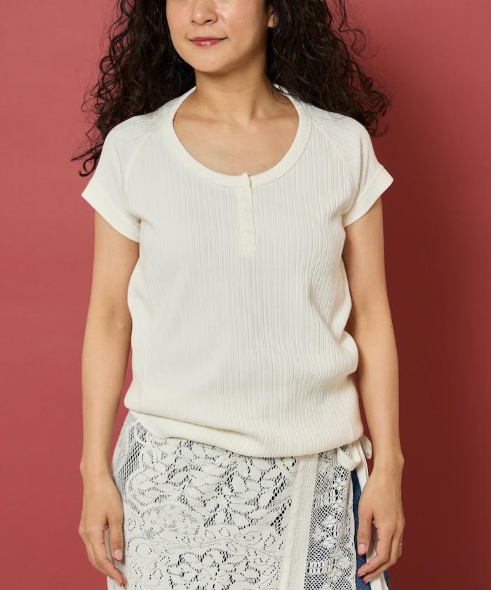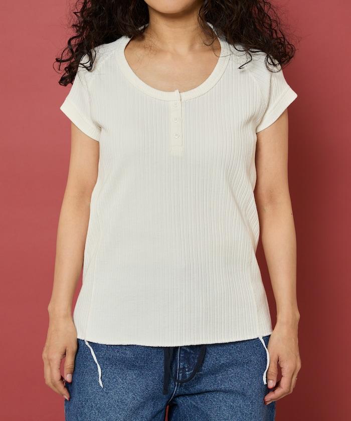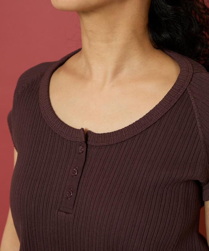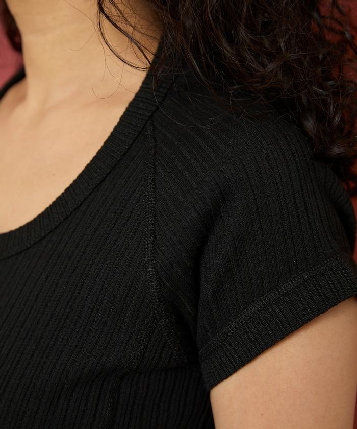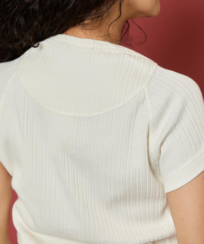 緊身、女性化剪裁和縫製的雞心領 T 恤。