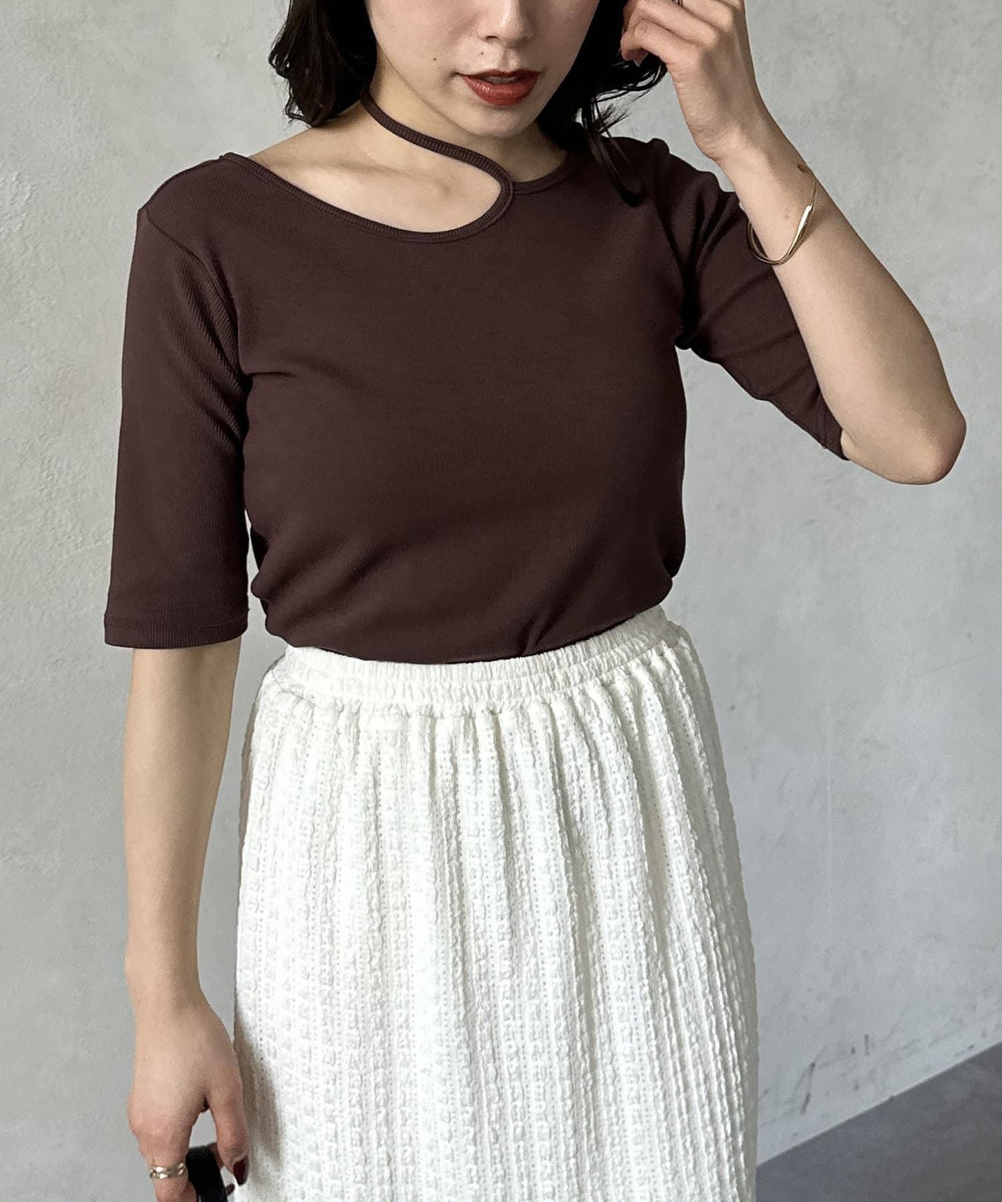 #Modified halter neck #5'' sleeve tops #Mature casual