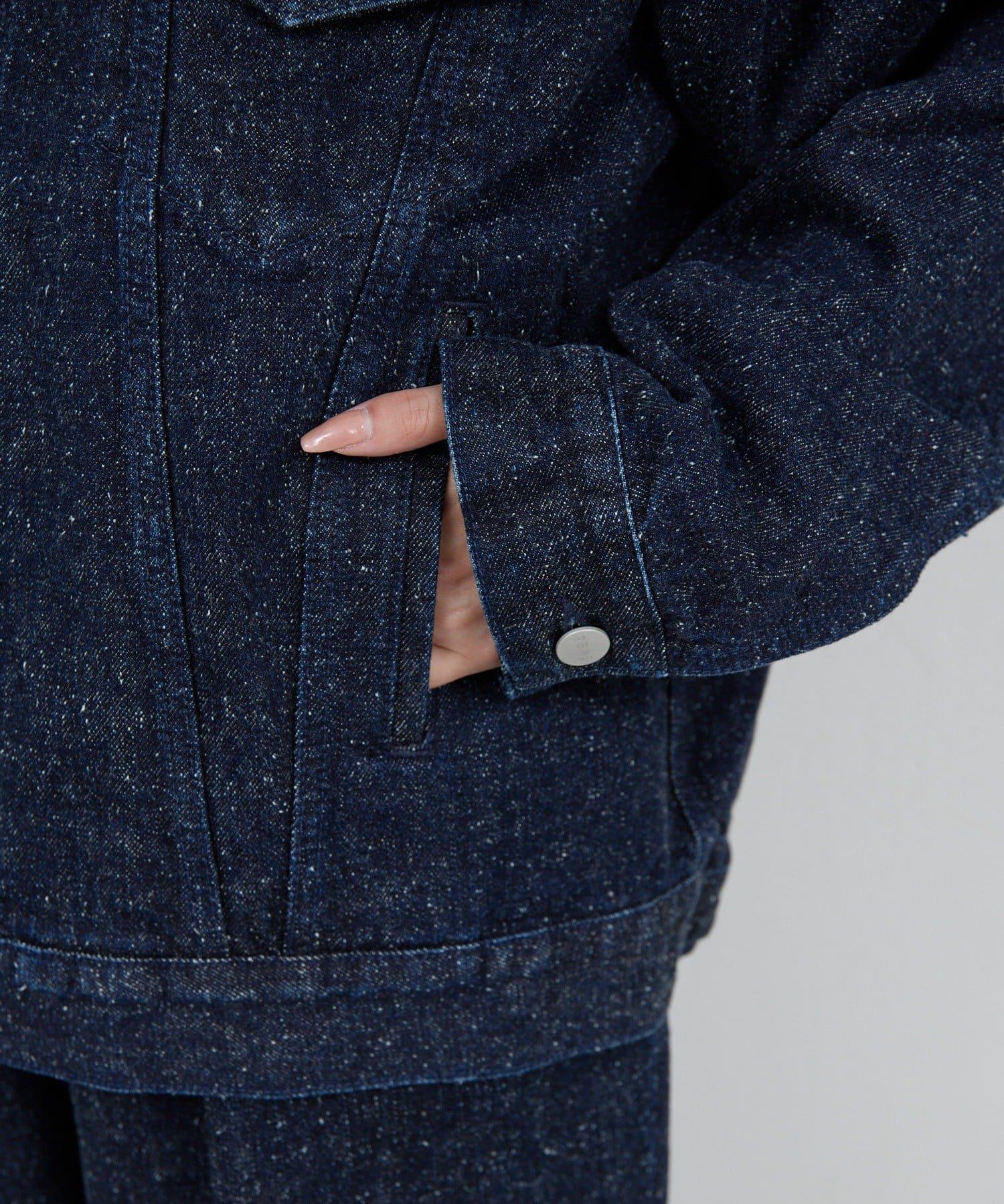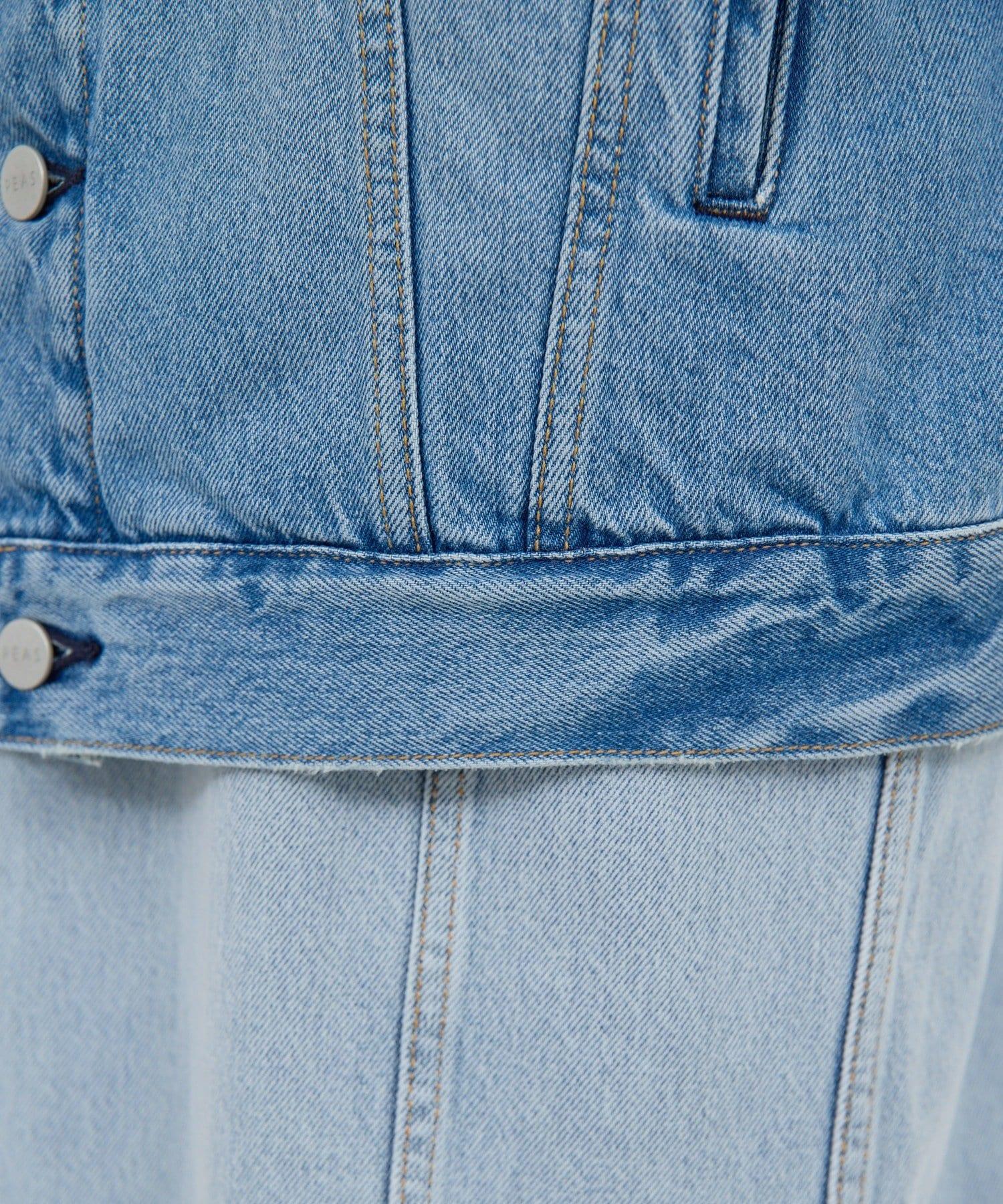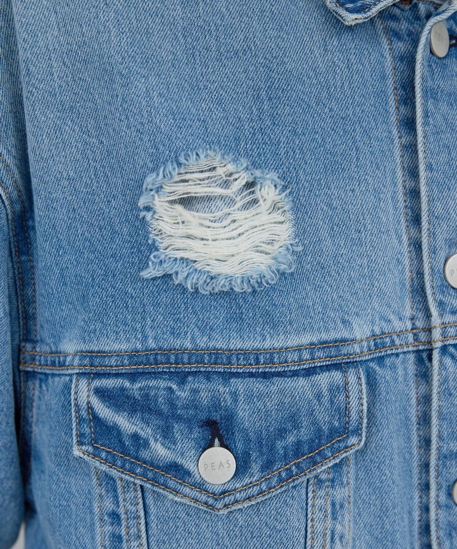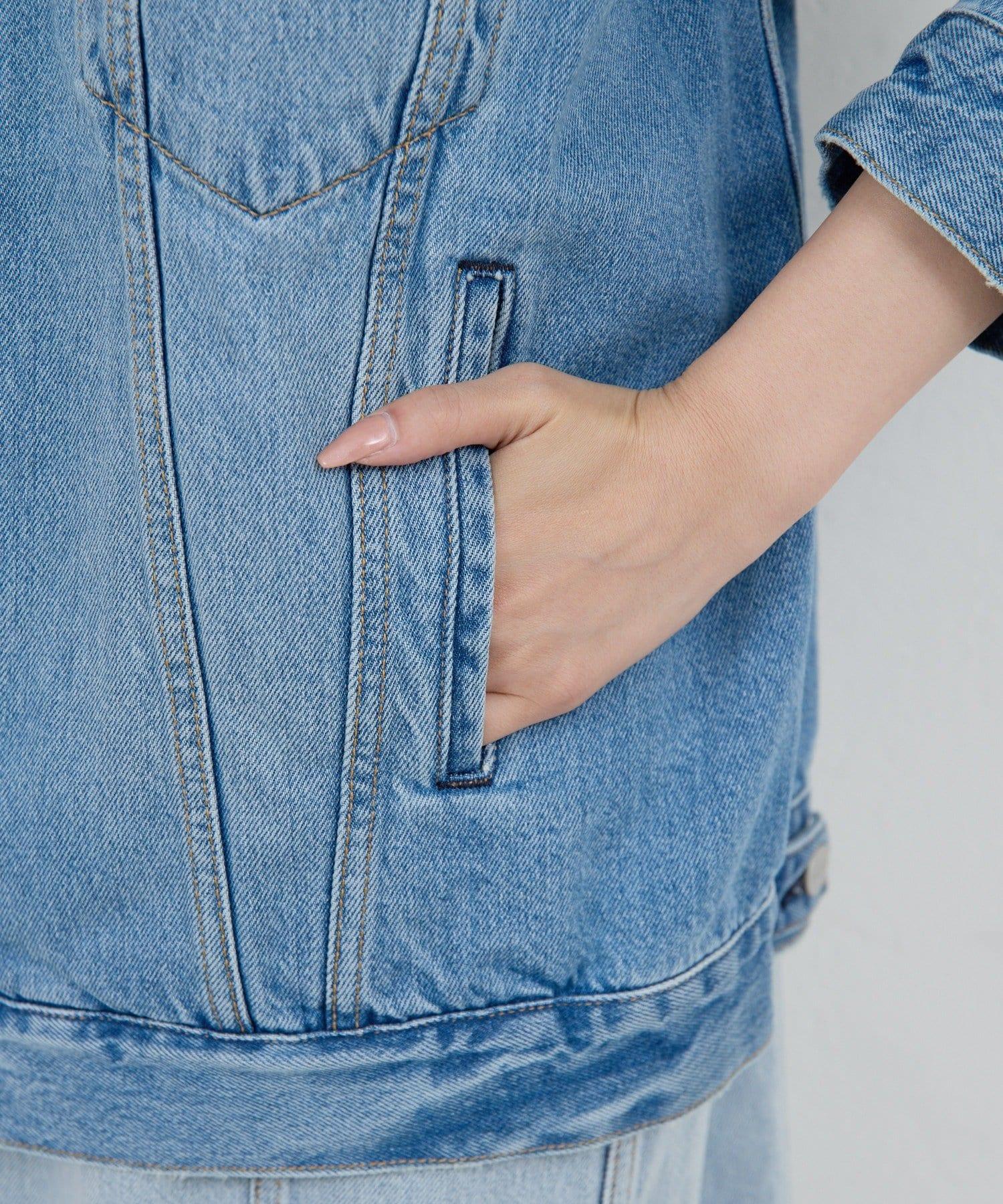 牛仔夾克採用方形剪裁,穿著舒適。