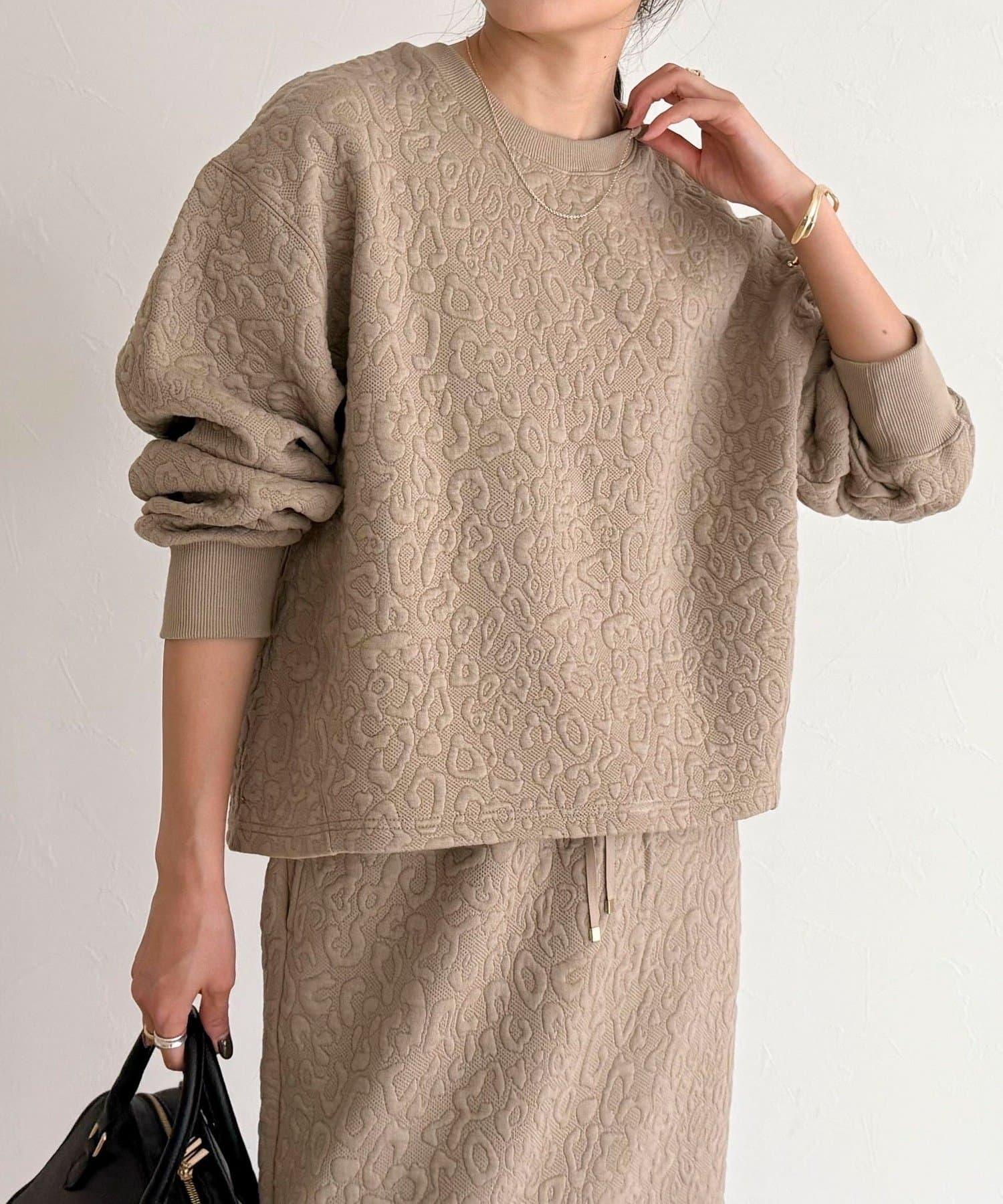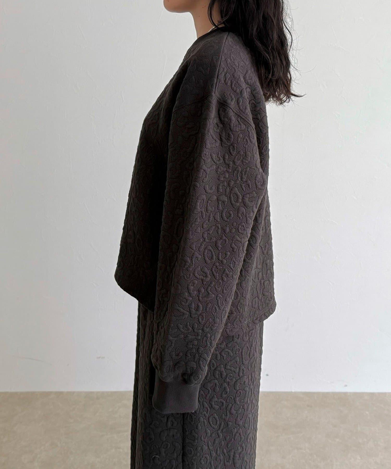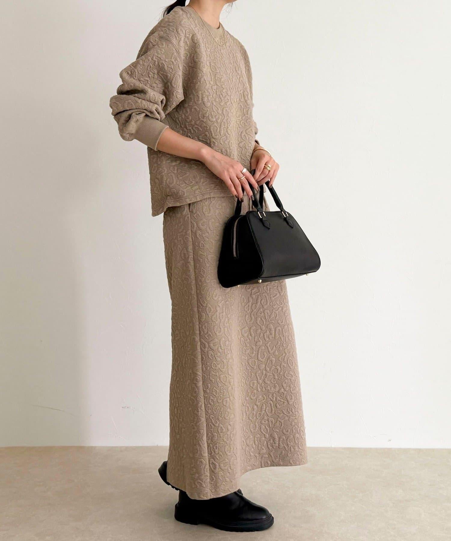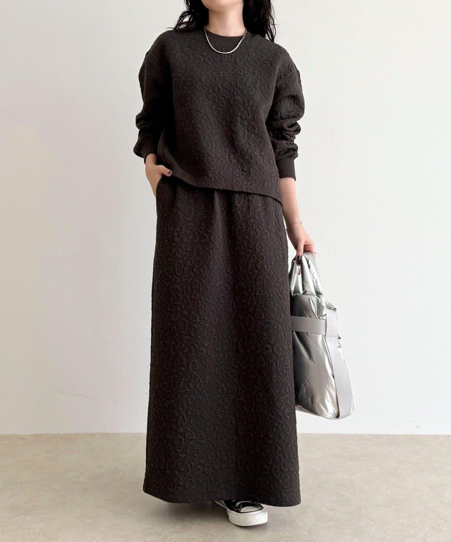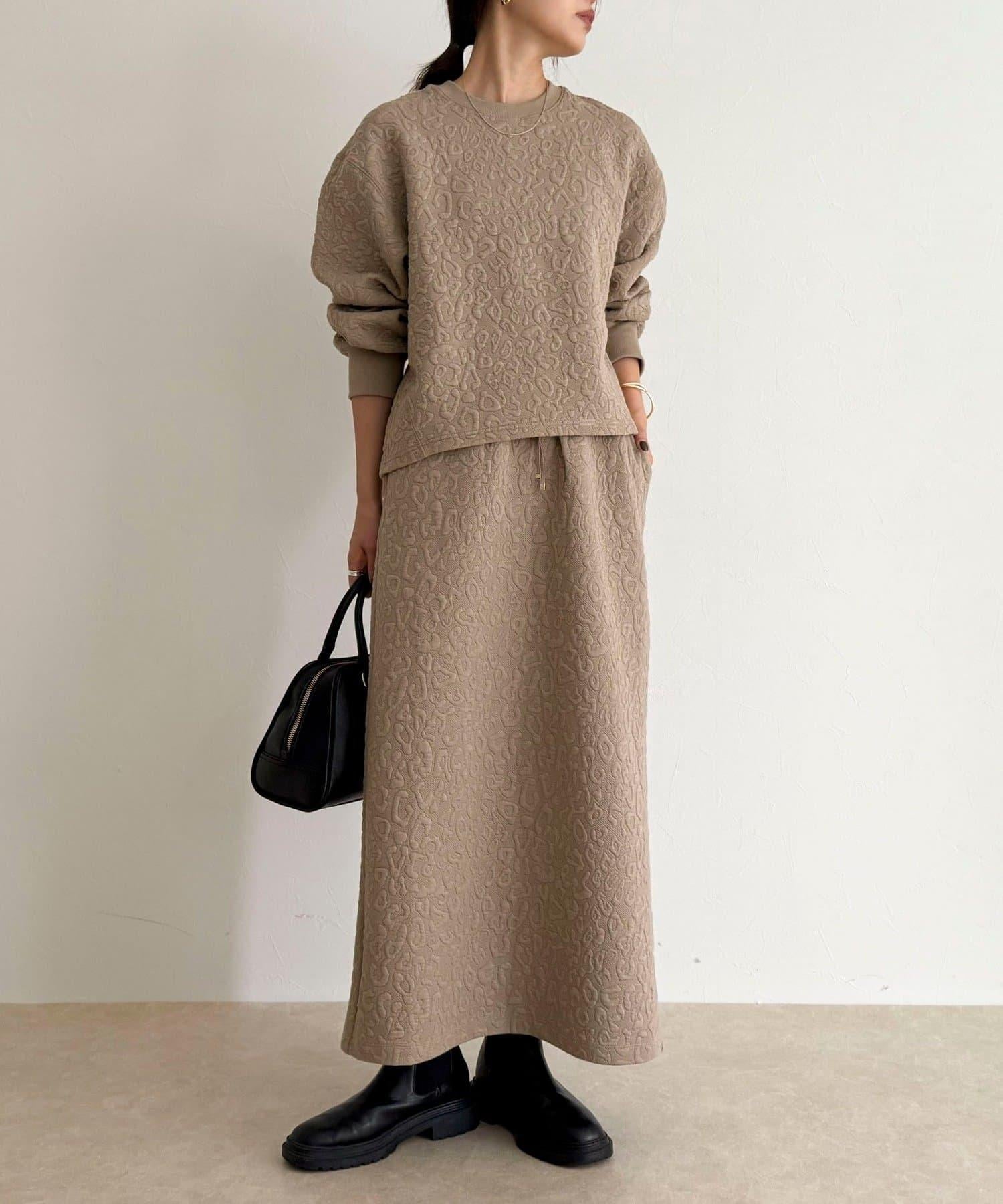 與同樣材質的裙子搭配成套穿著,打造連體造型。