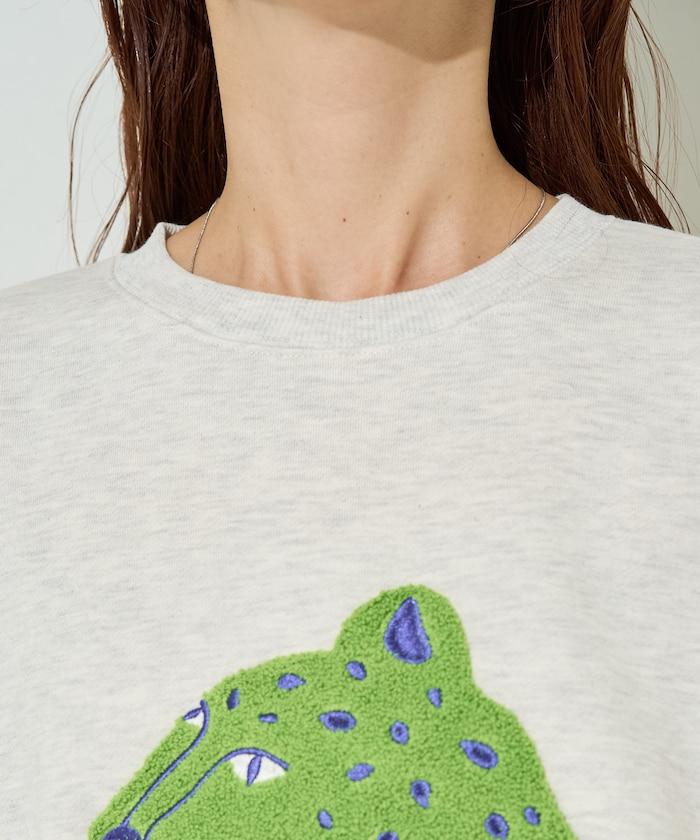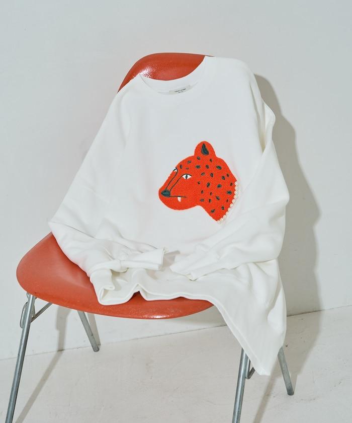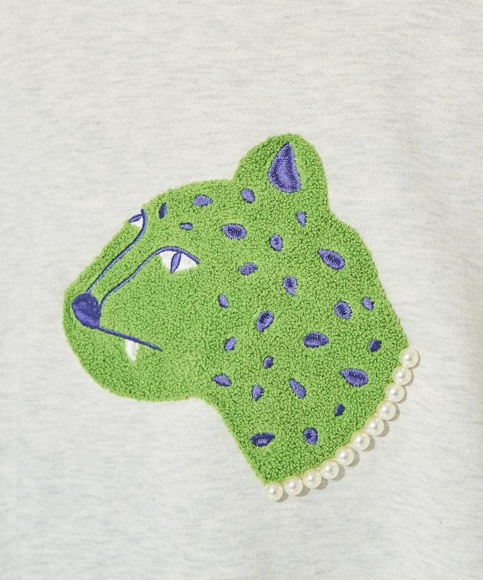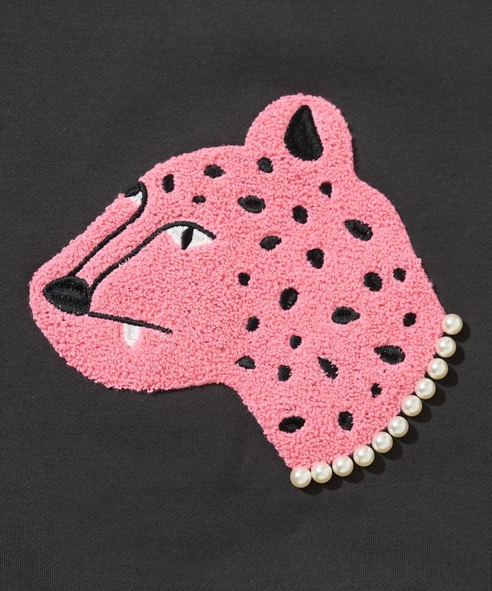 立體的獵豹圖案上繡有沙加拉,充滿童趣。