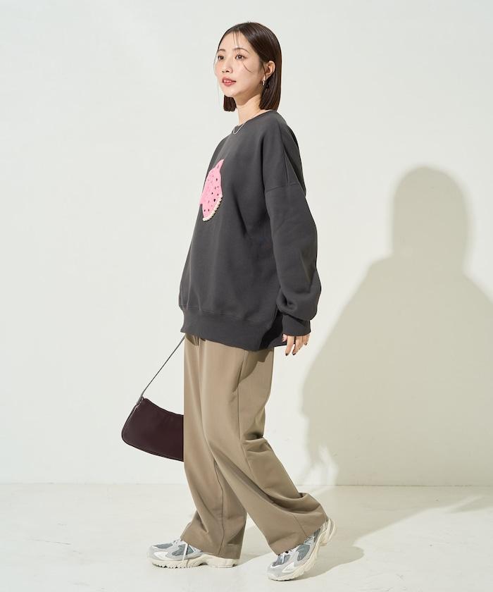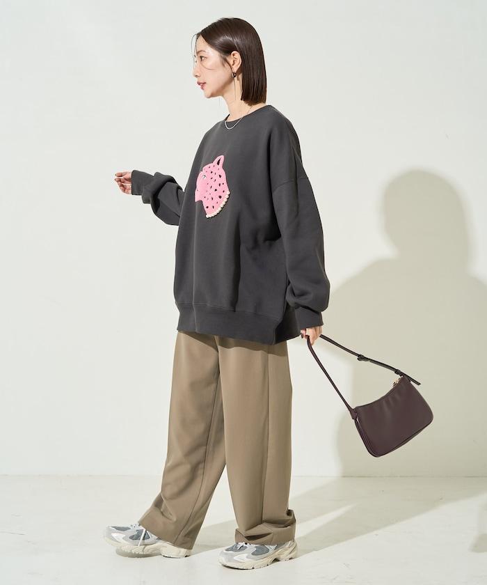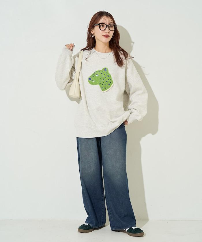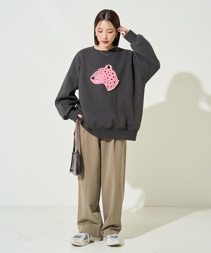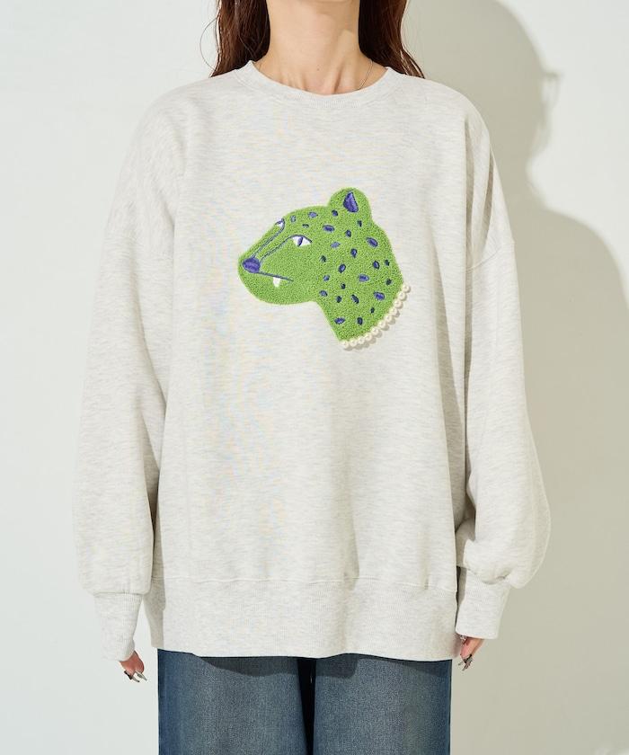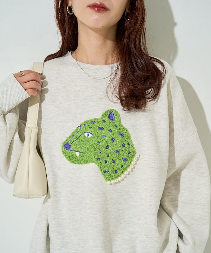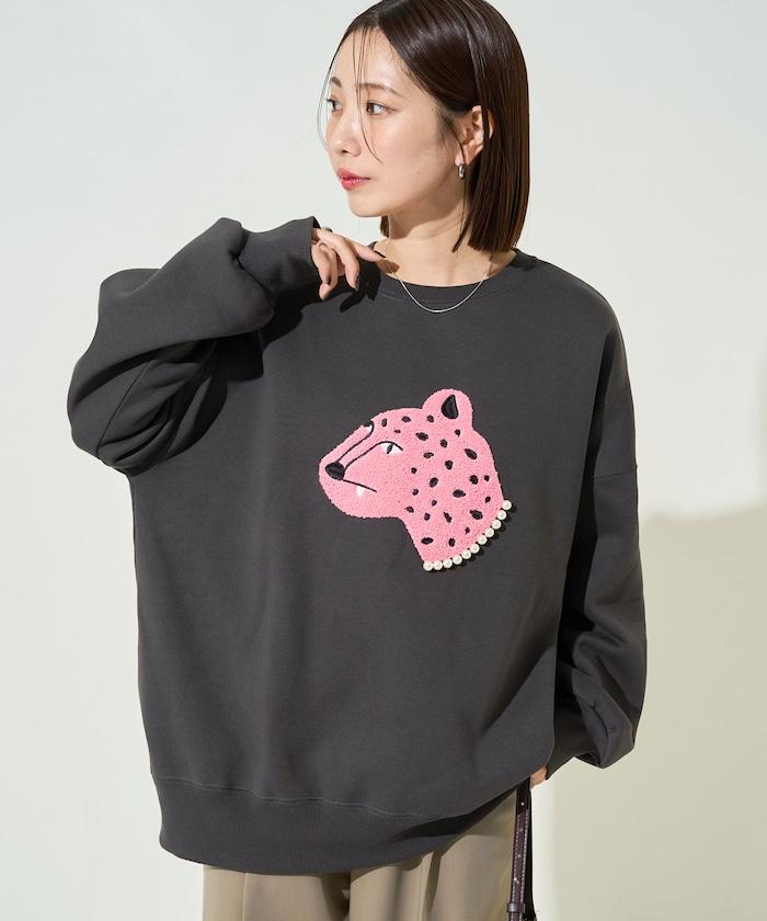 豹紋毛圈繡珍珠加絨衛衣