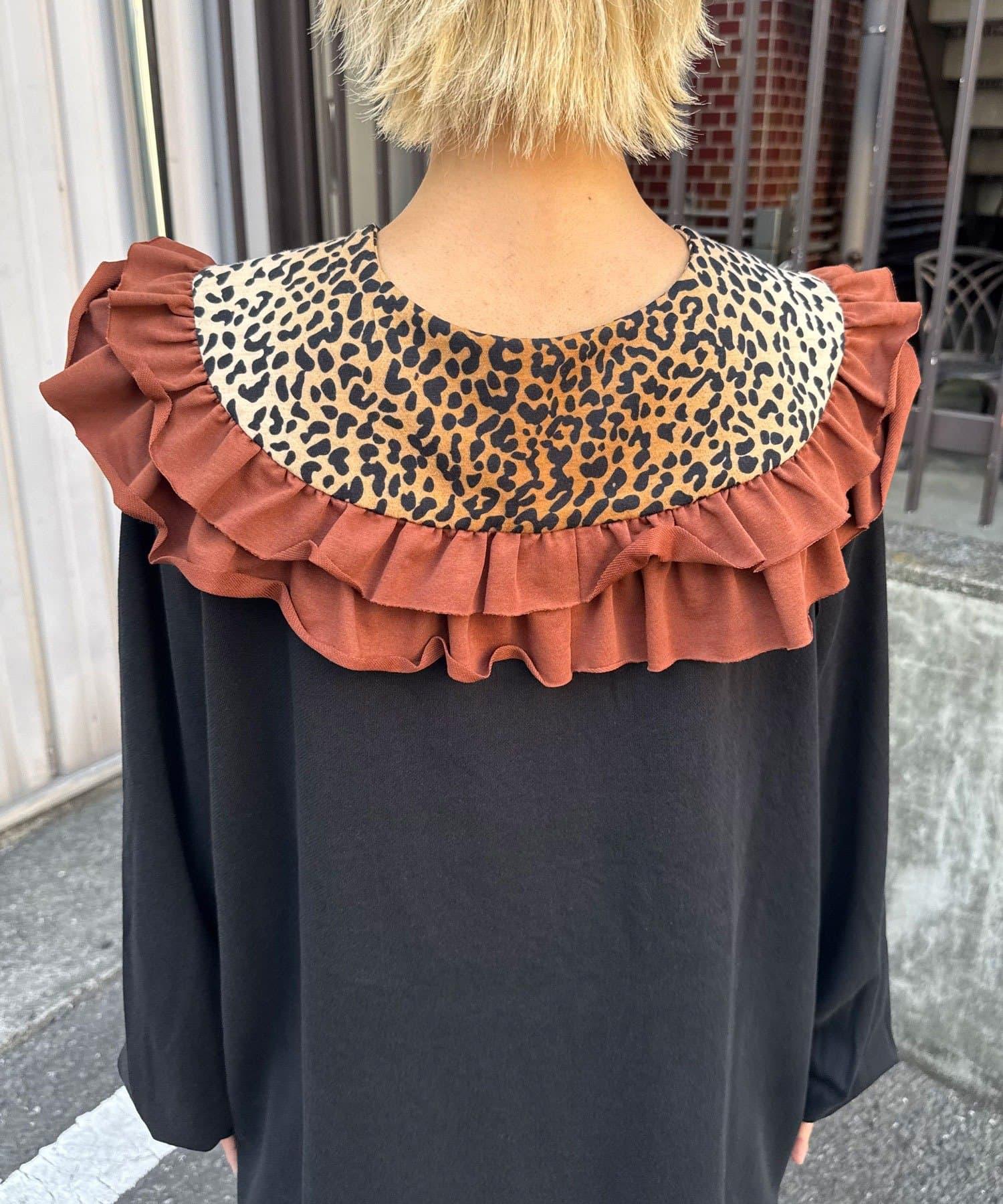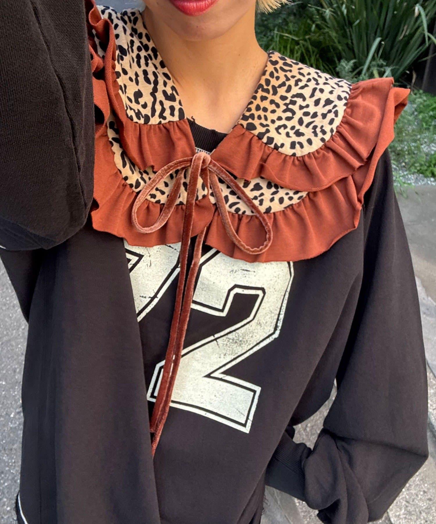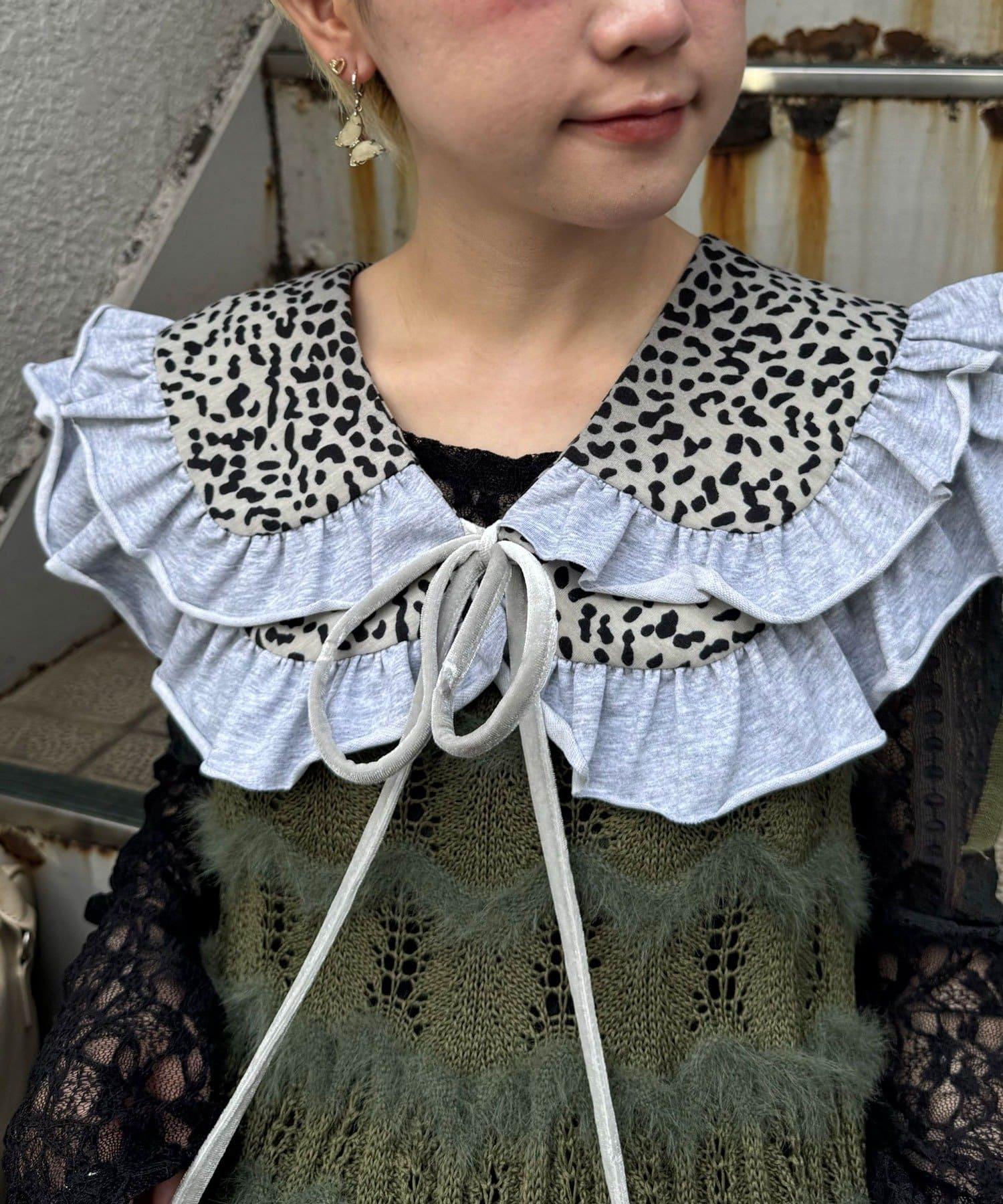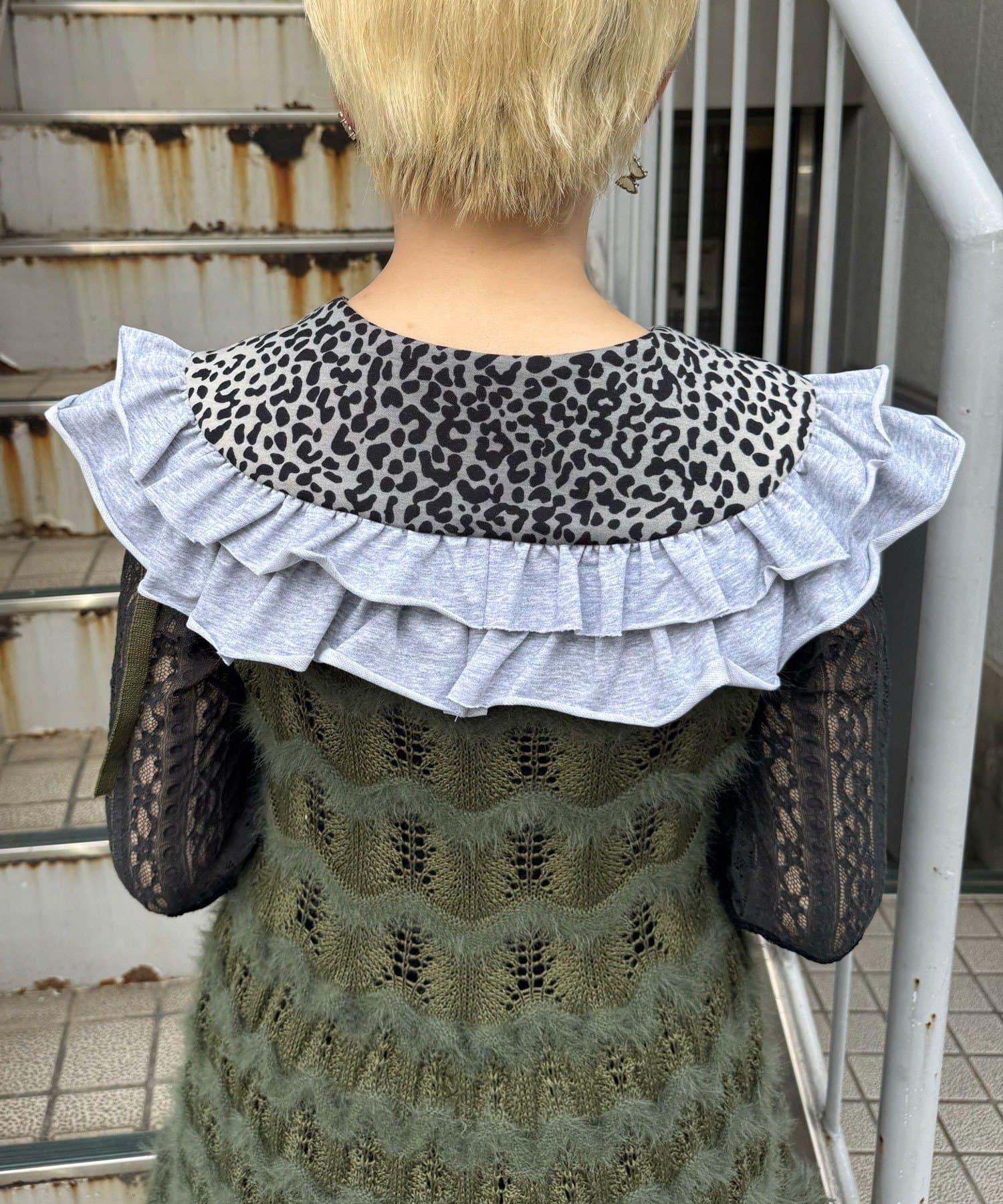 豹紋荷葉邊襯衫領