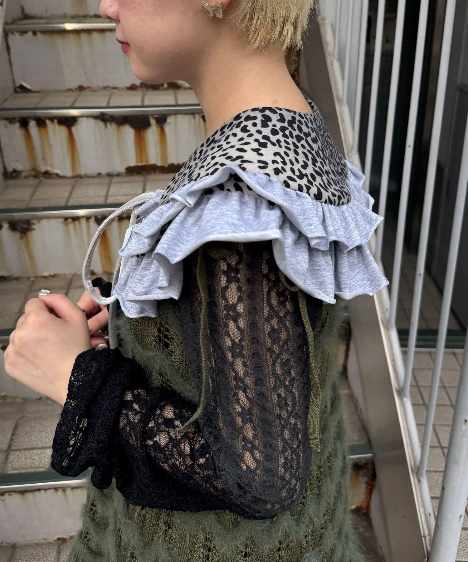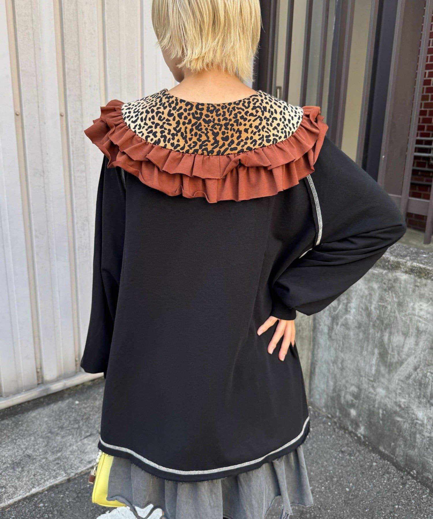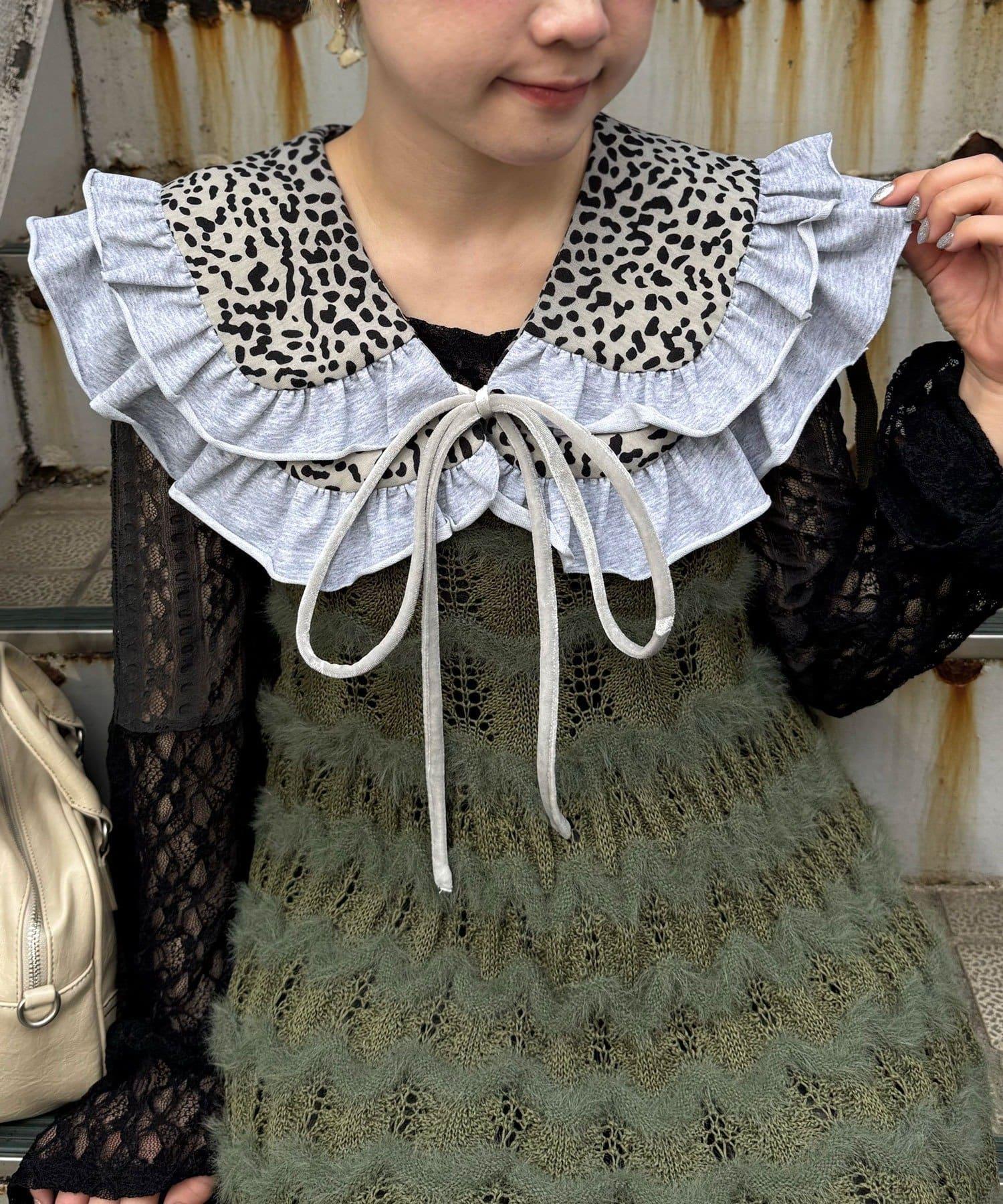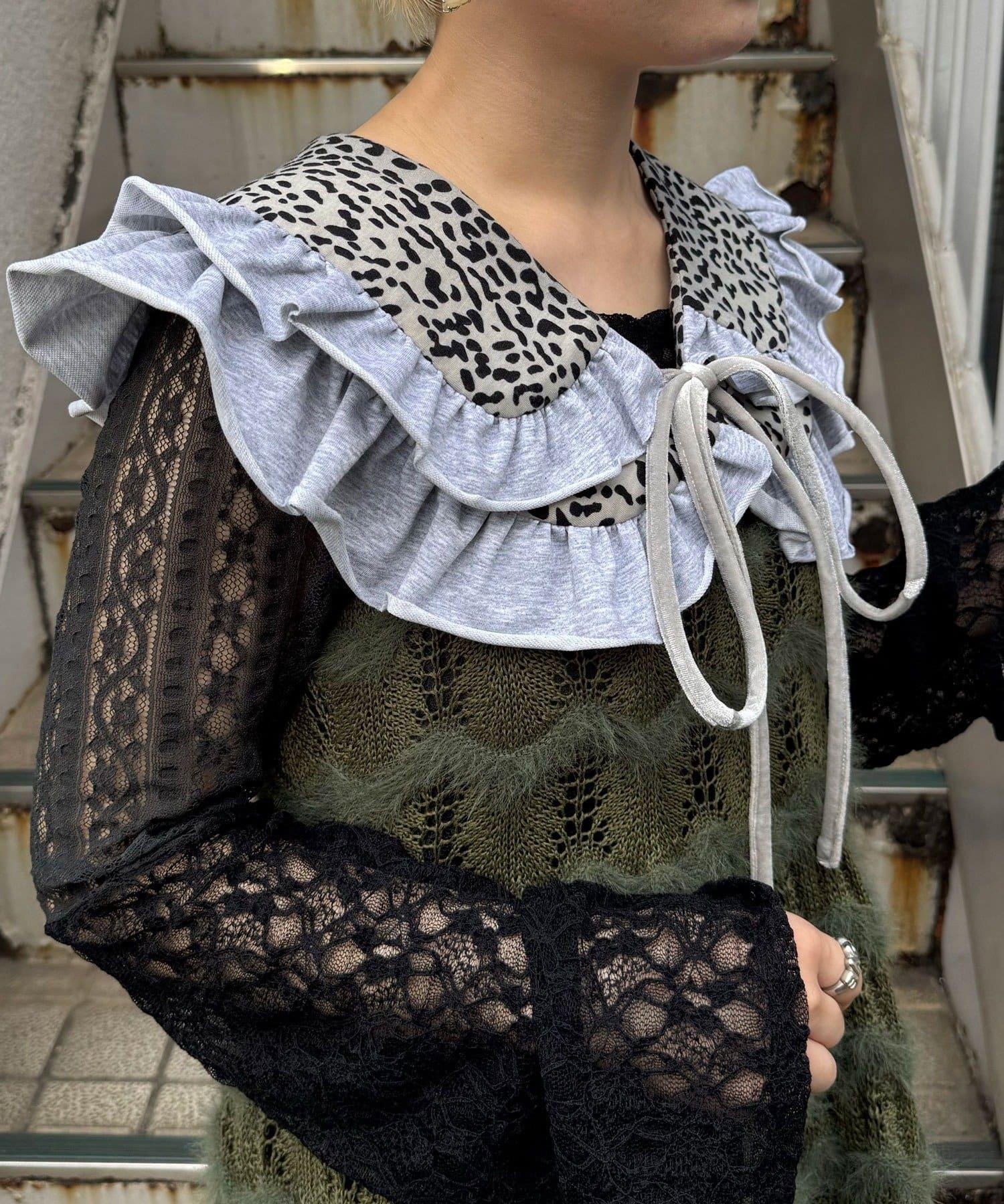 豹紋荷葉邊襯衫領