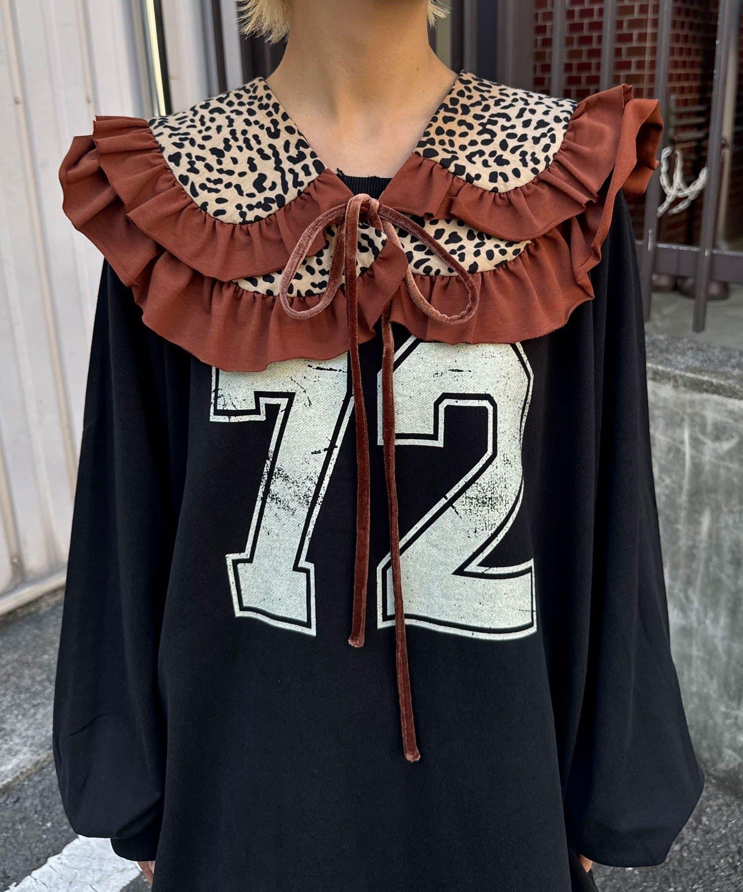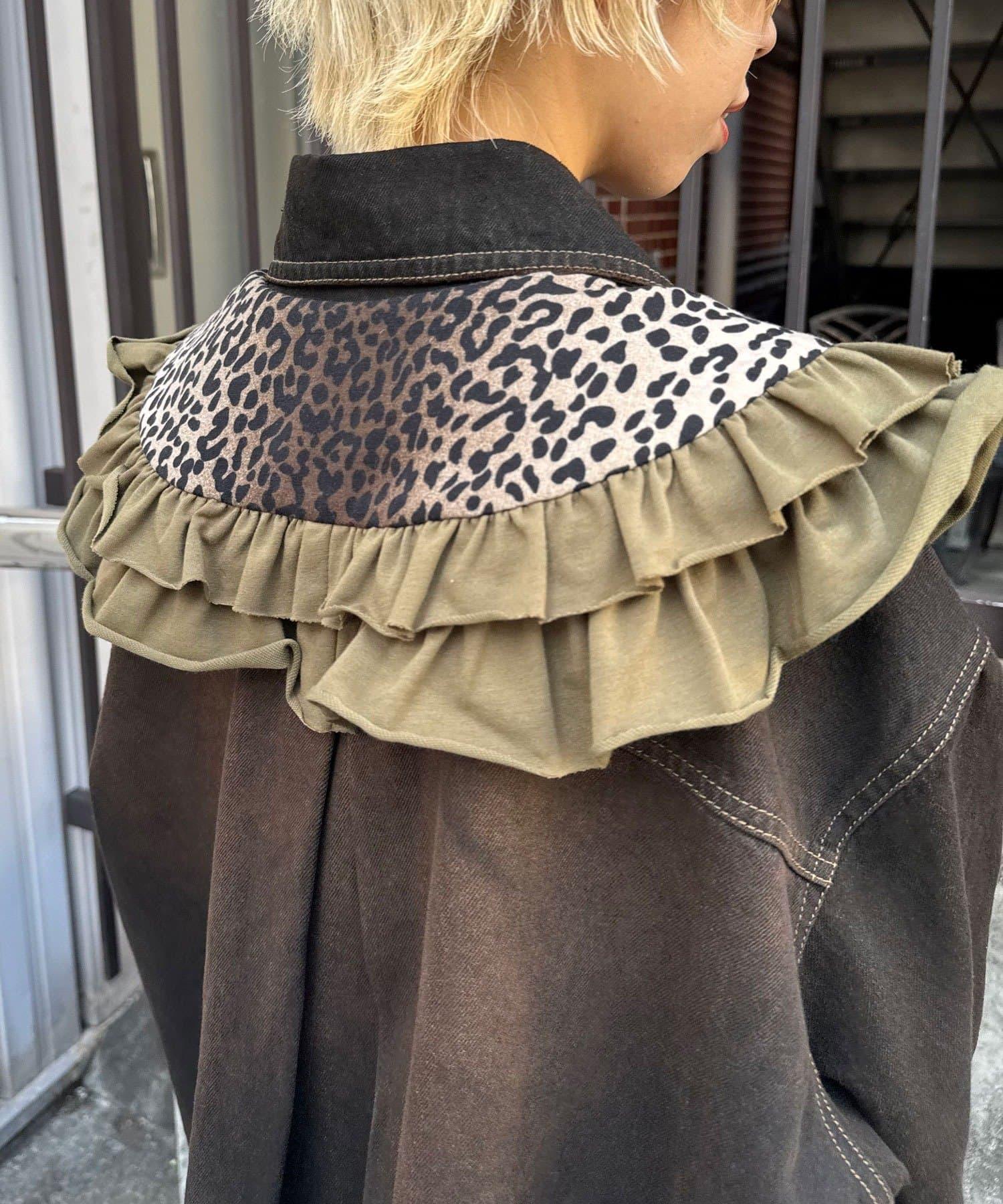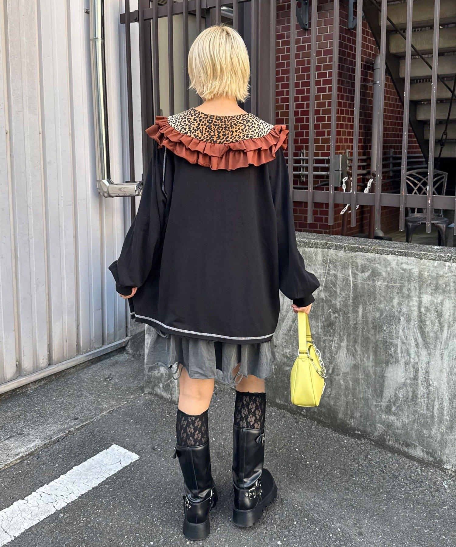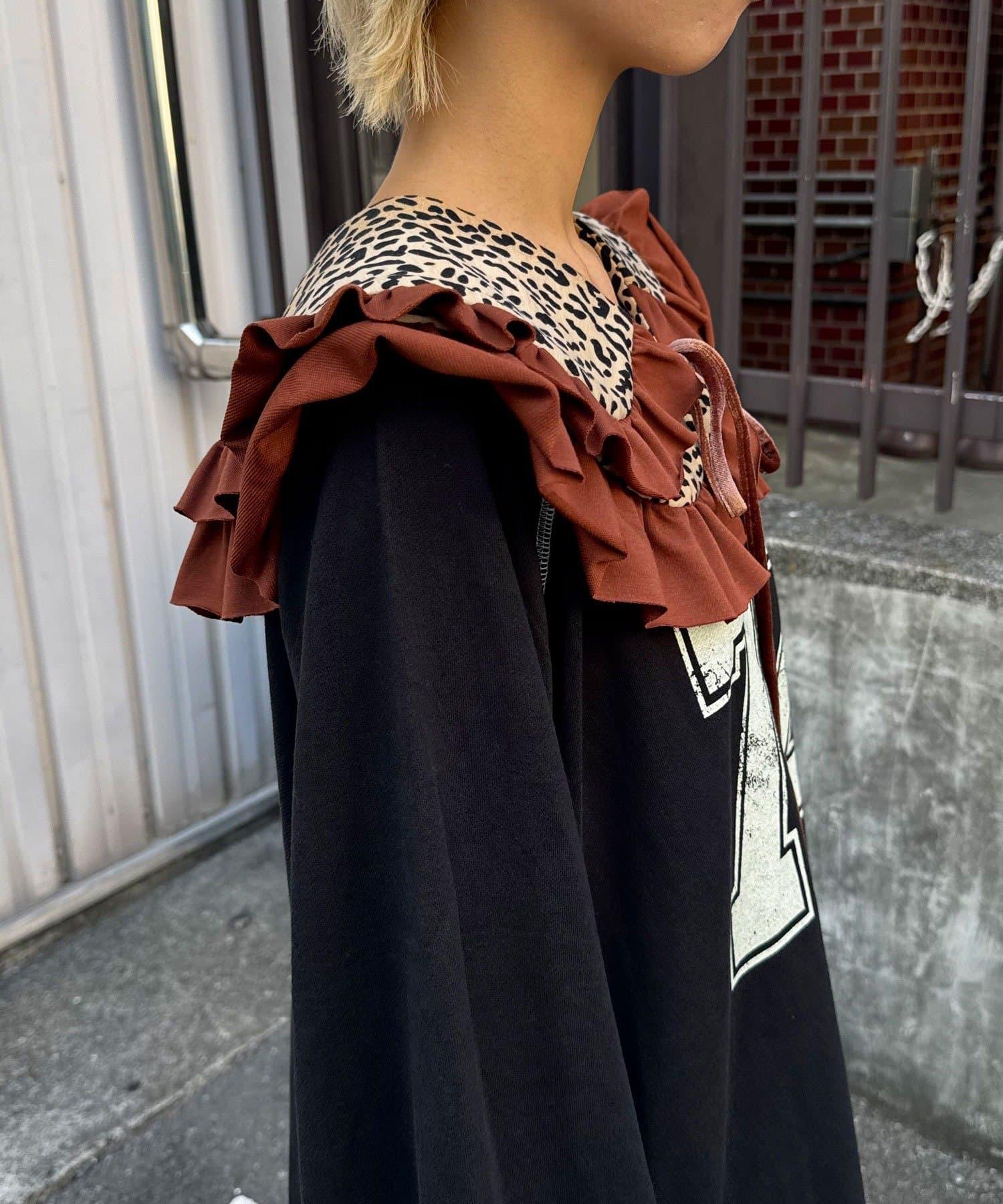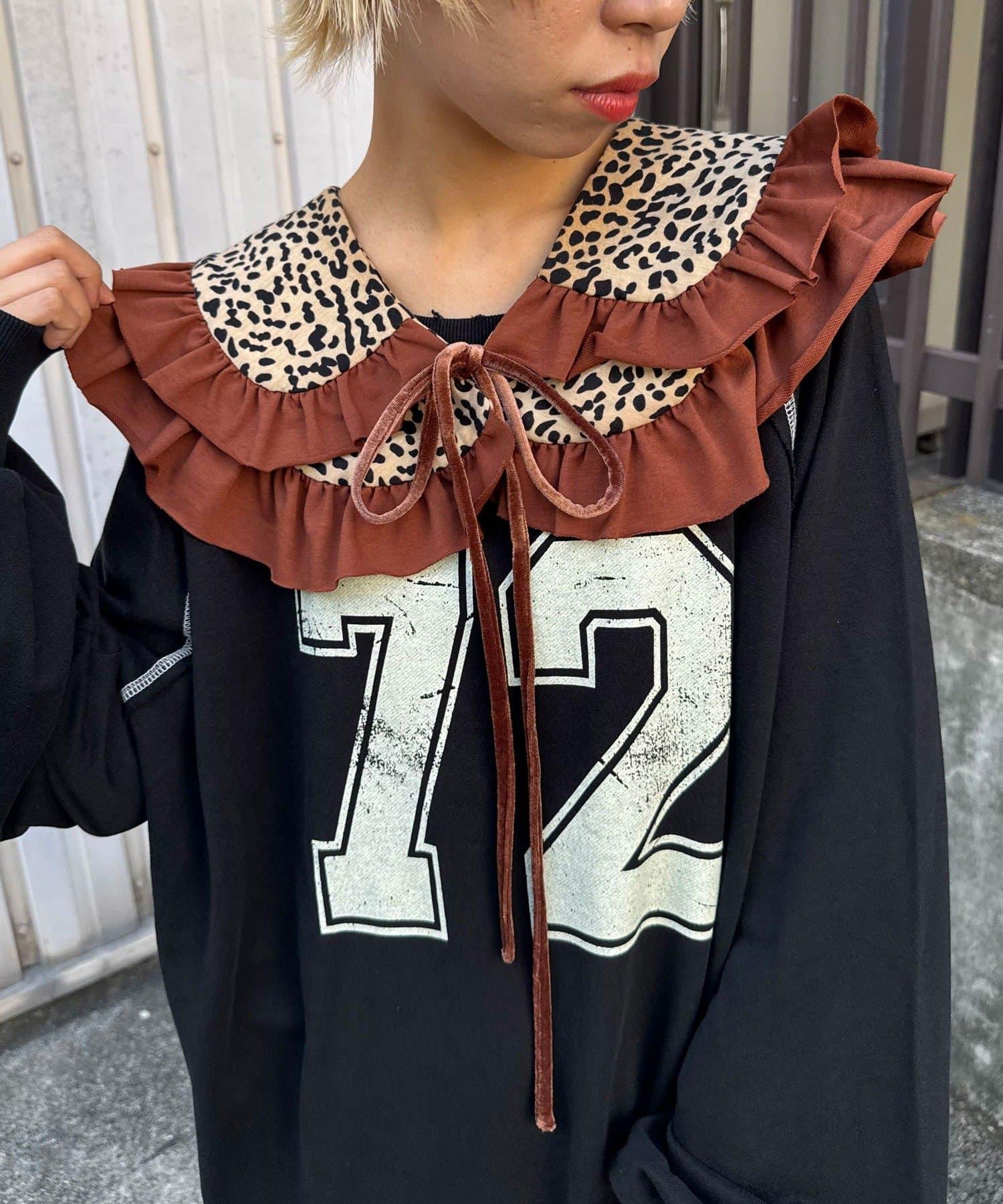 豹紋荷葉邊襯衫領