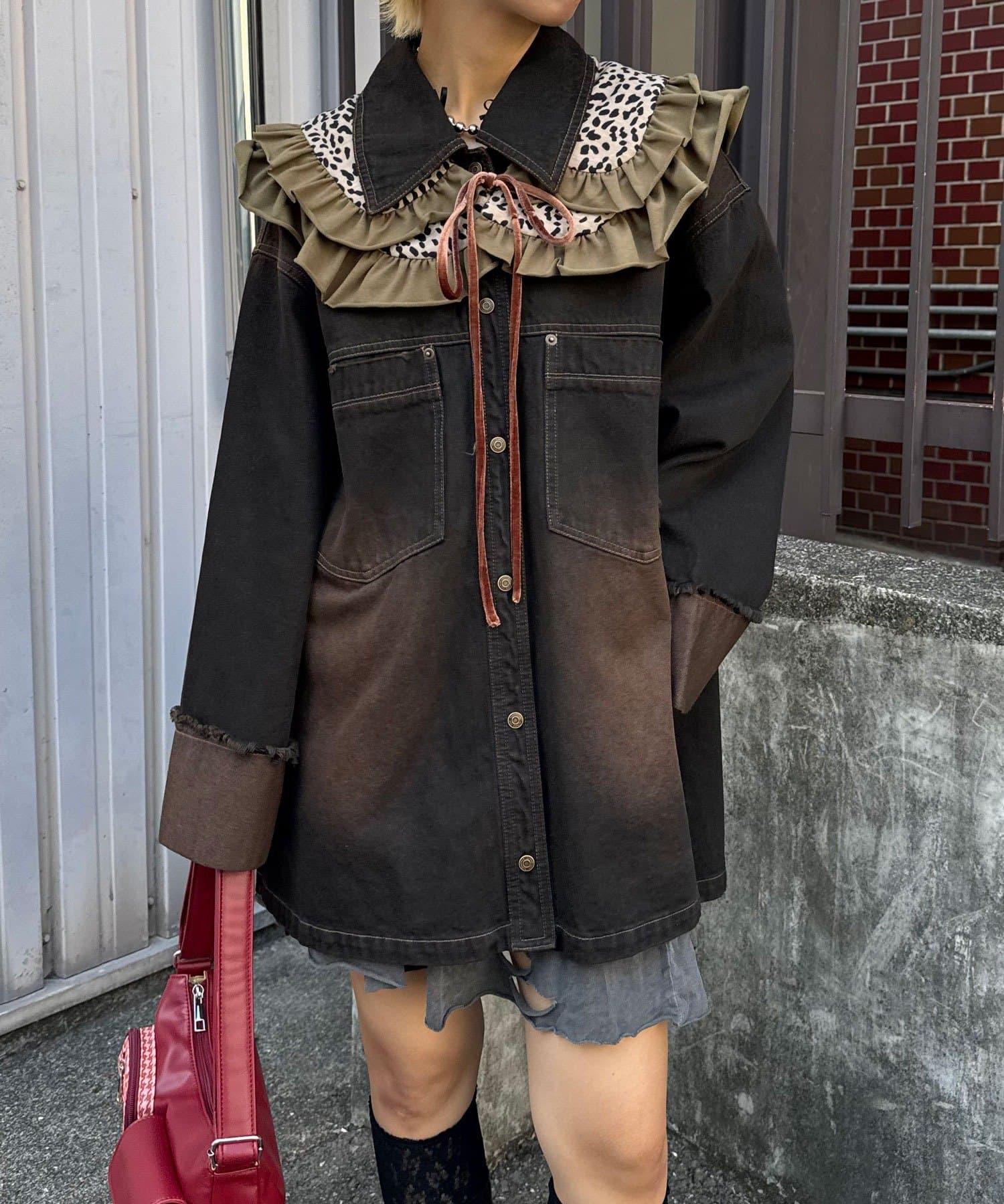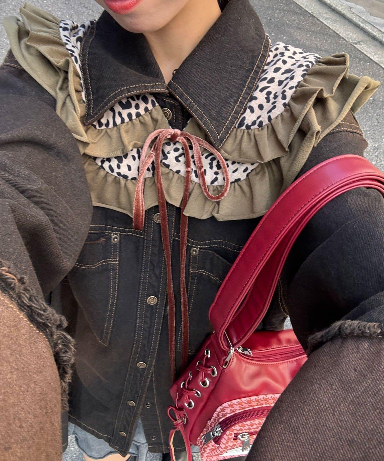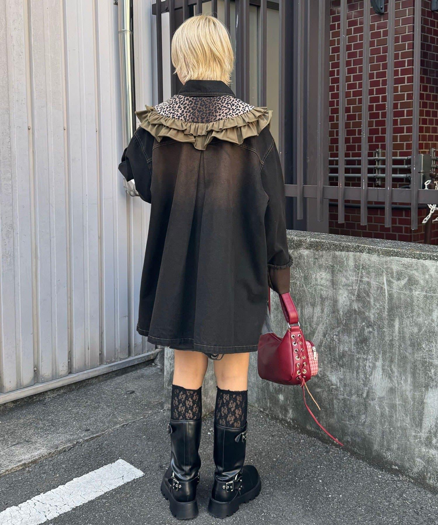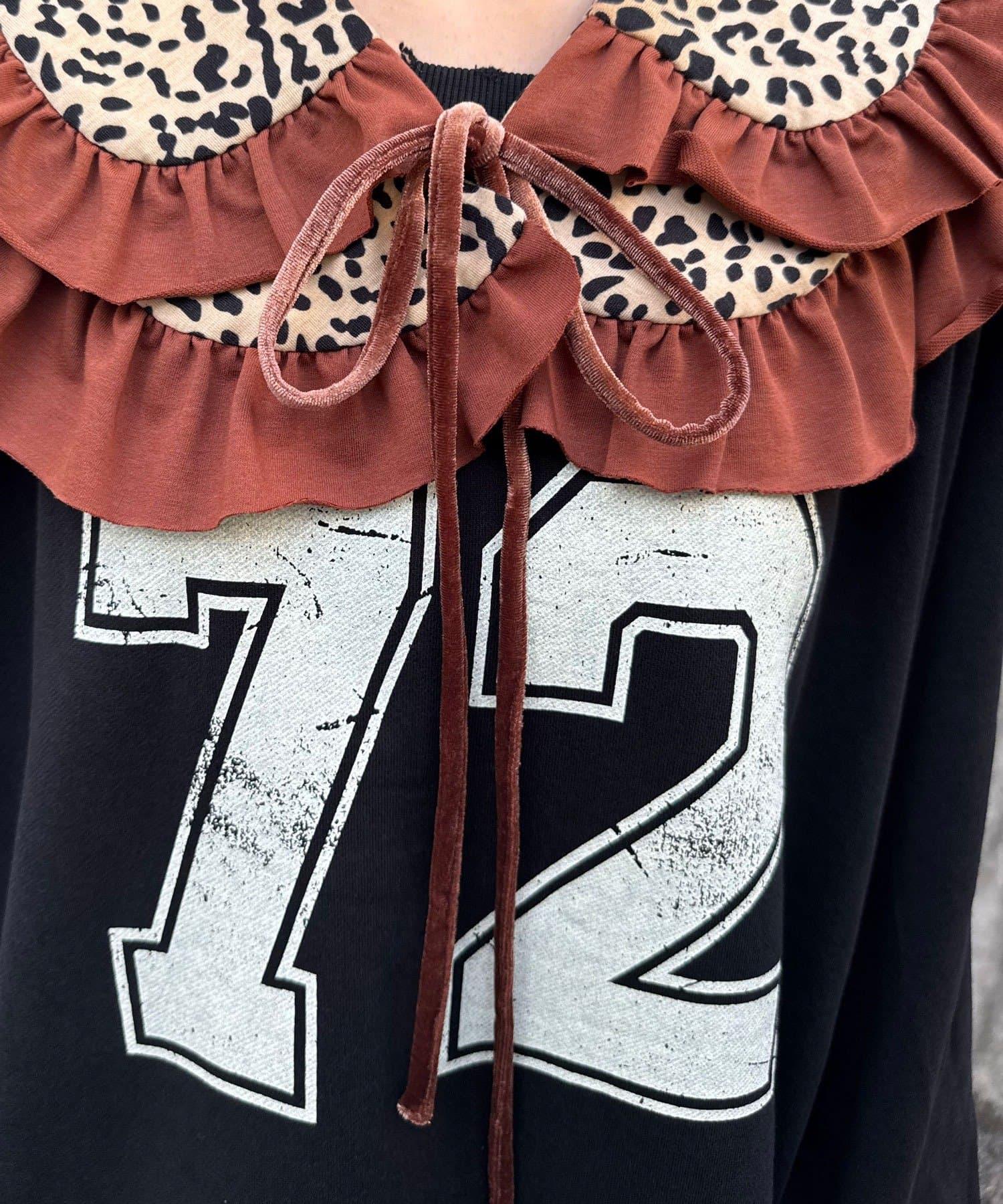 豹紋荷葉邊襯衫領
