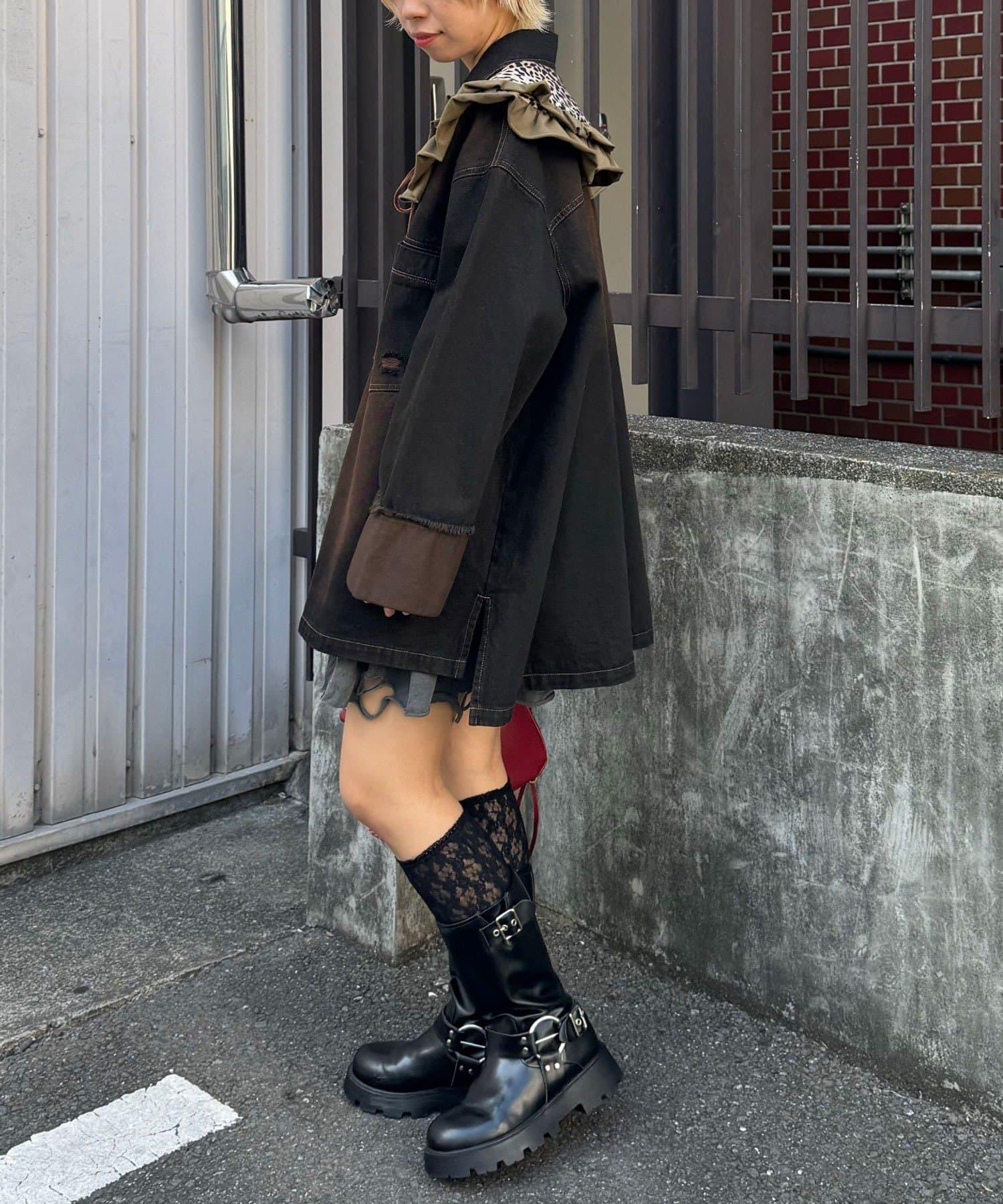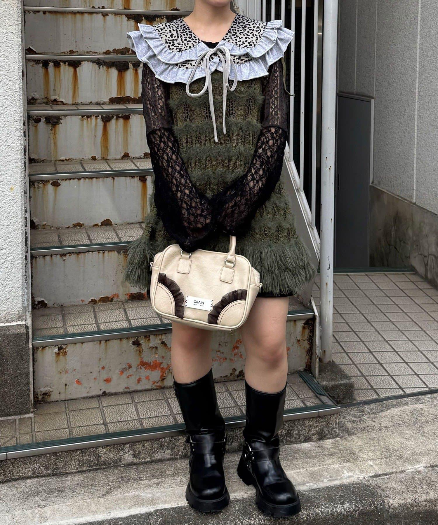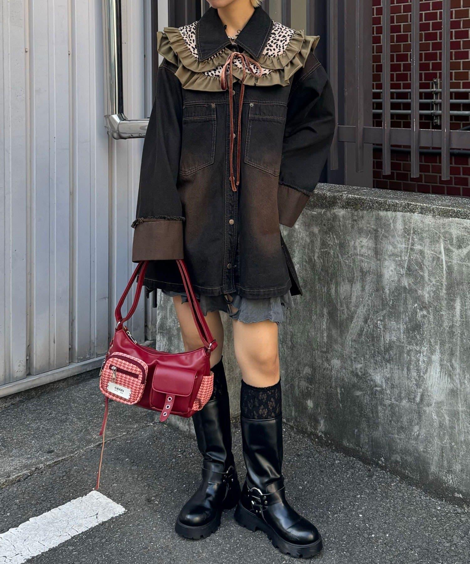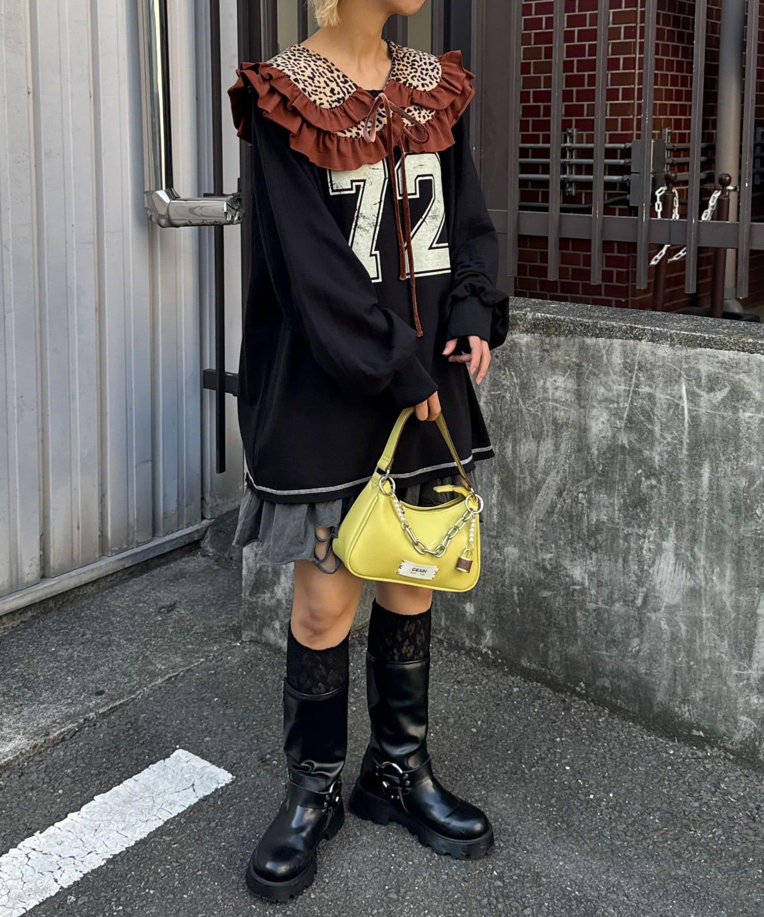 豹紋荷葉邊襯衫領