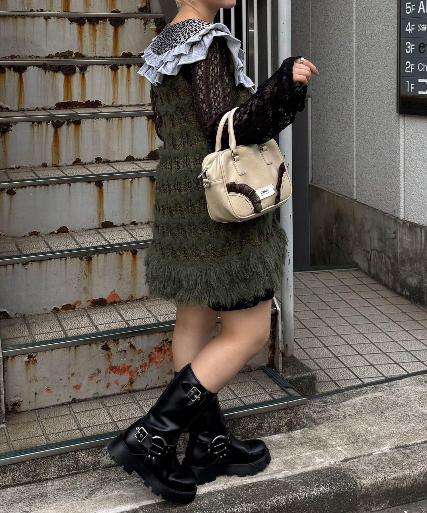 適度蓬鬆的流蘇和前面繫著的絲絨緞帶增添了點睛之筆,為您的日常搭配增添了甜美和辛辣。