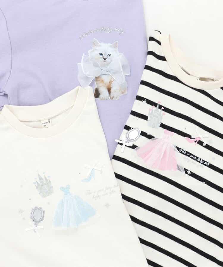 apres les cours 長袖 T 恤 "Cat/Princess Motif T 恤 "是一款時尚單品,為自然風格*增添了微妙的設計。
