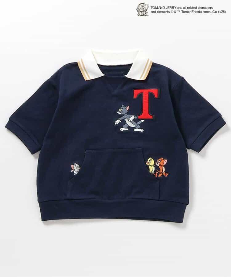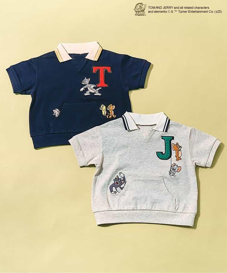 印有湯姆和傑瑞首字母的有領 T 恤。
