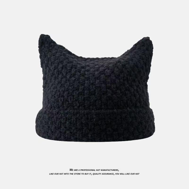 貓耳針織帽 帽子 黑色【新春促銷】(HH4242BK)