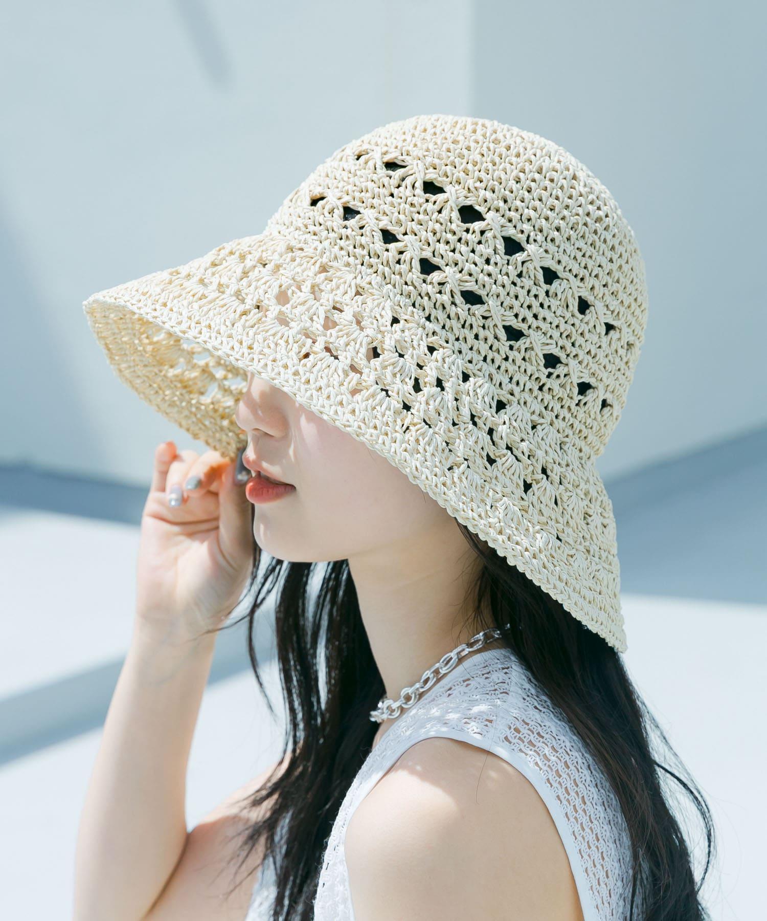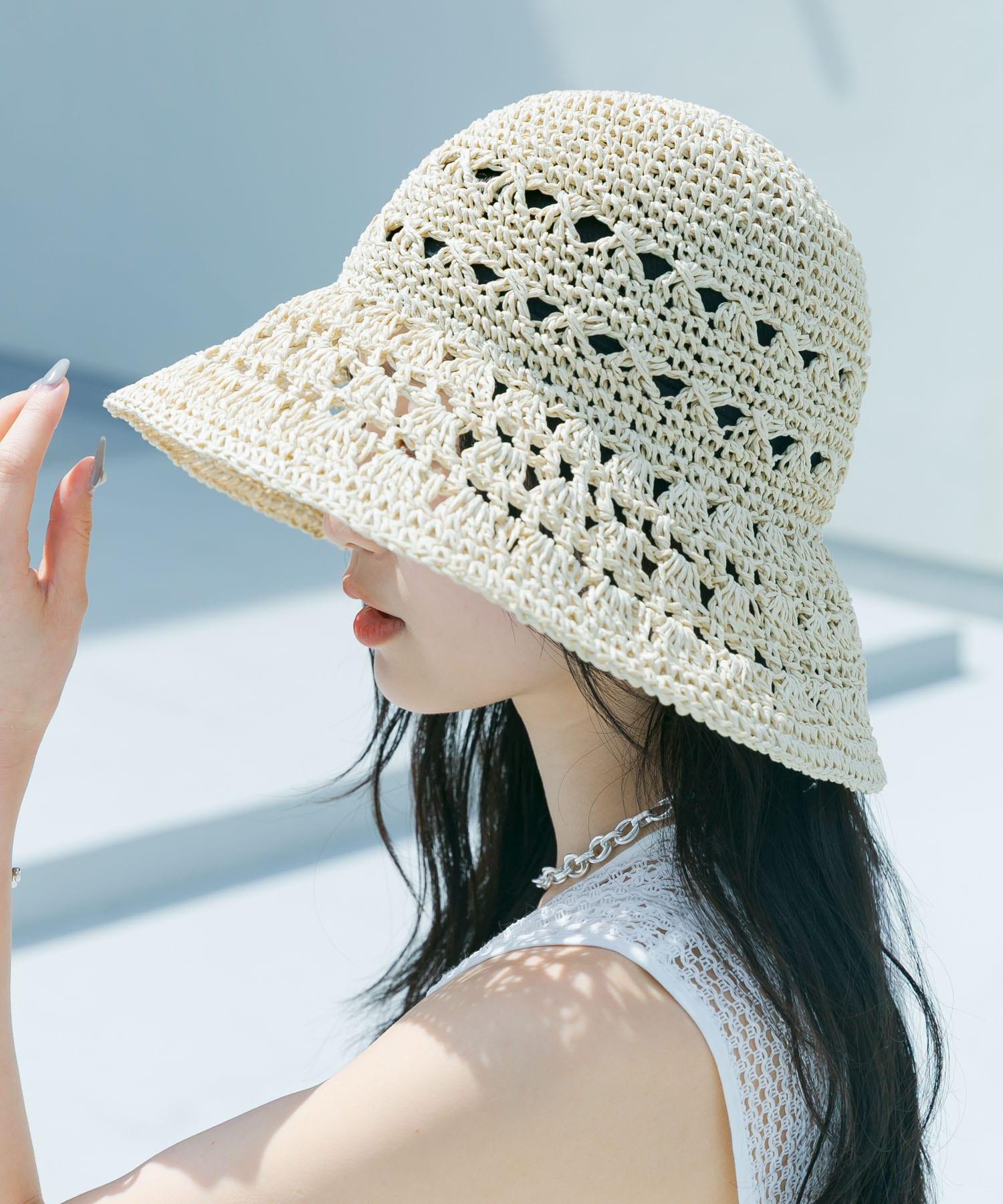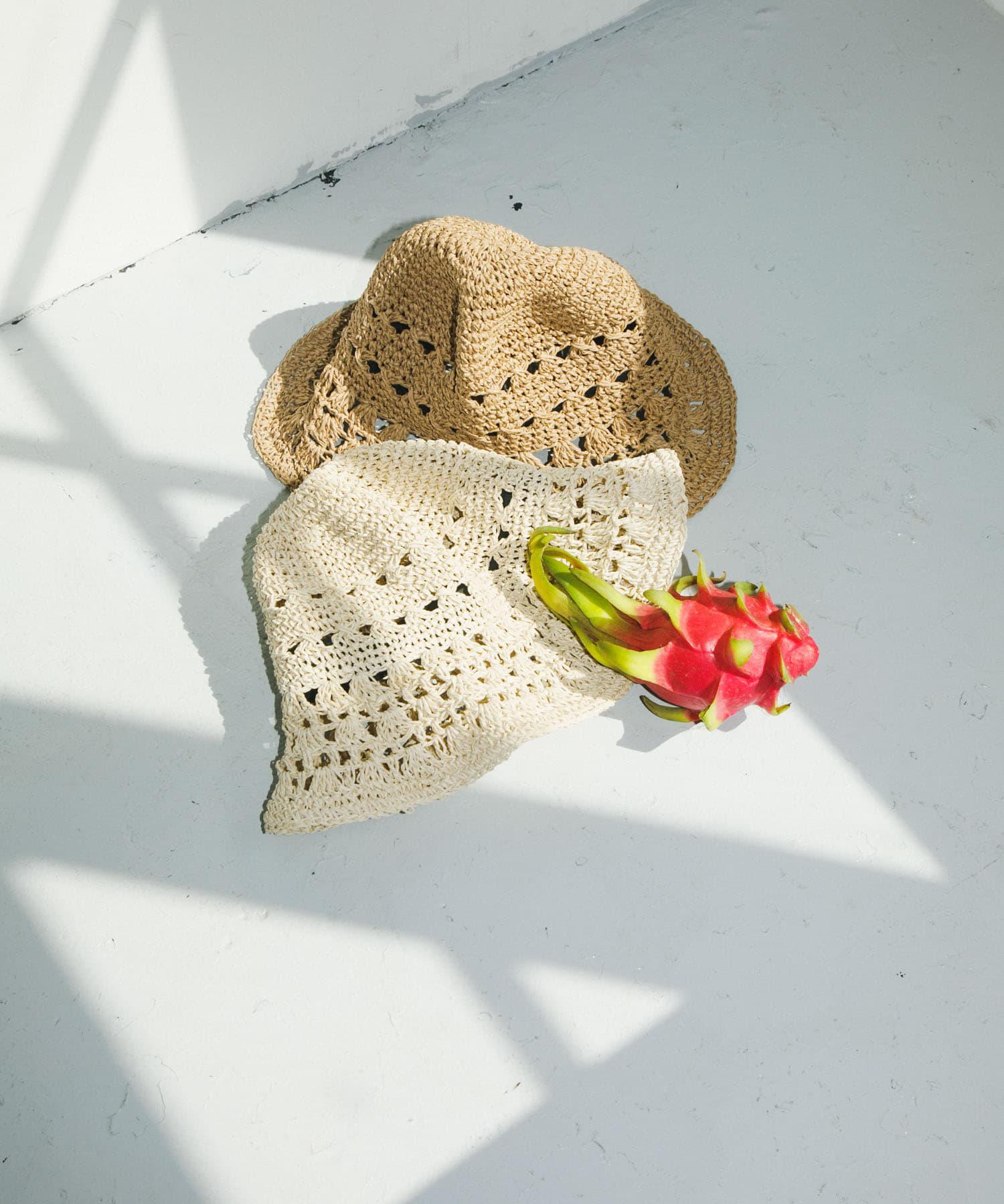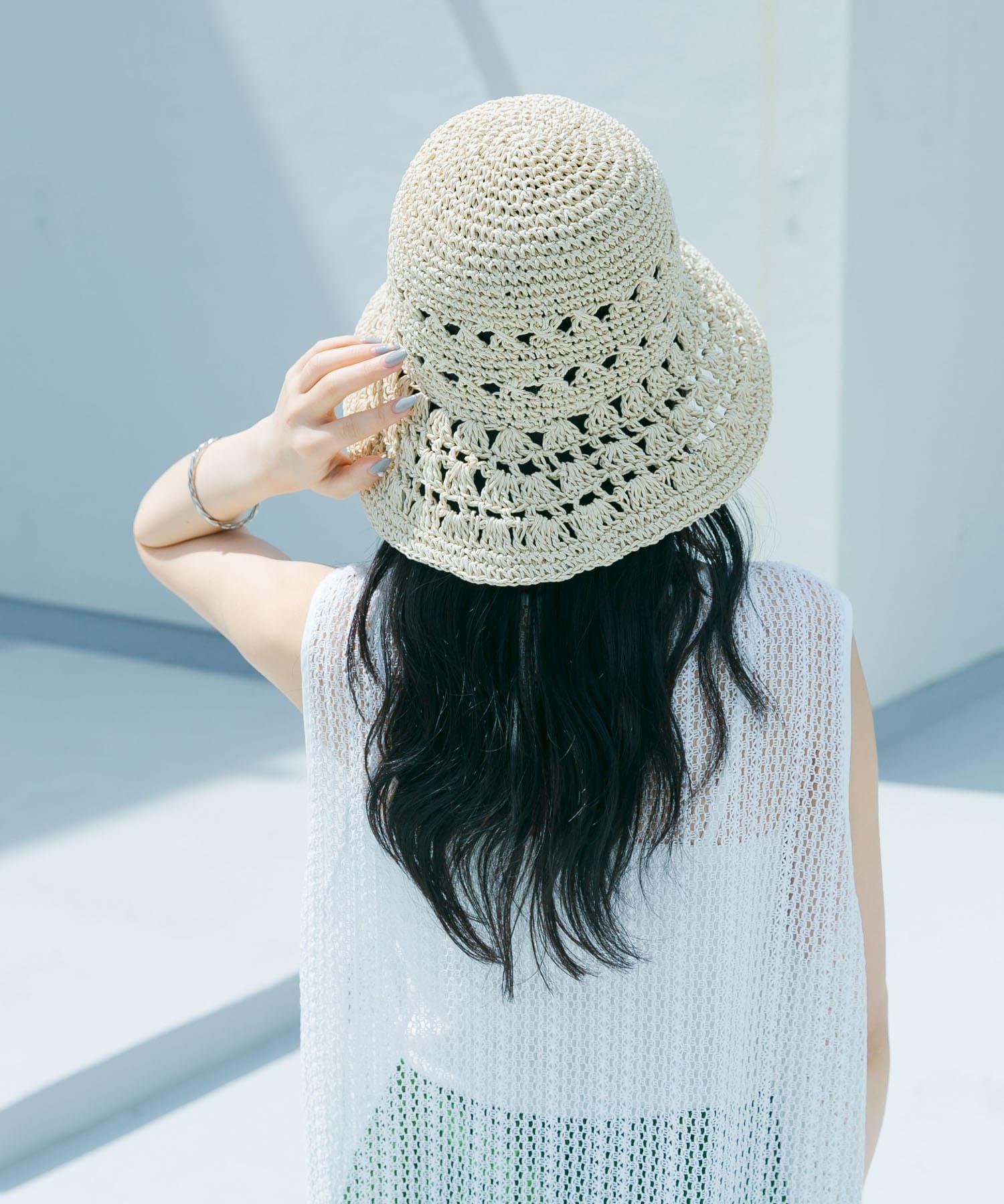這是一款充滿夏日氣息的帽子,採用貝殼針織面料,帶有貝殼狀圖案。