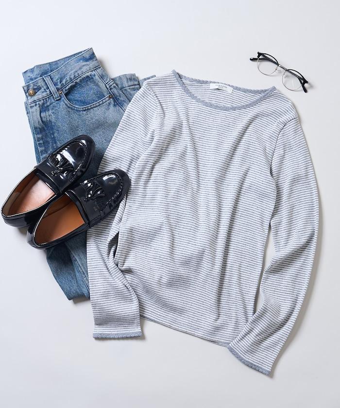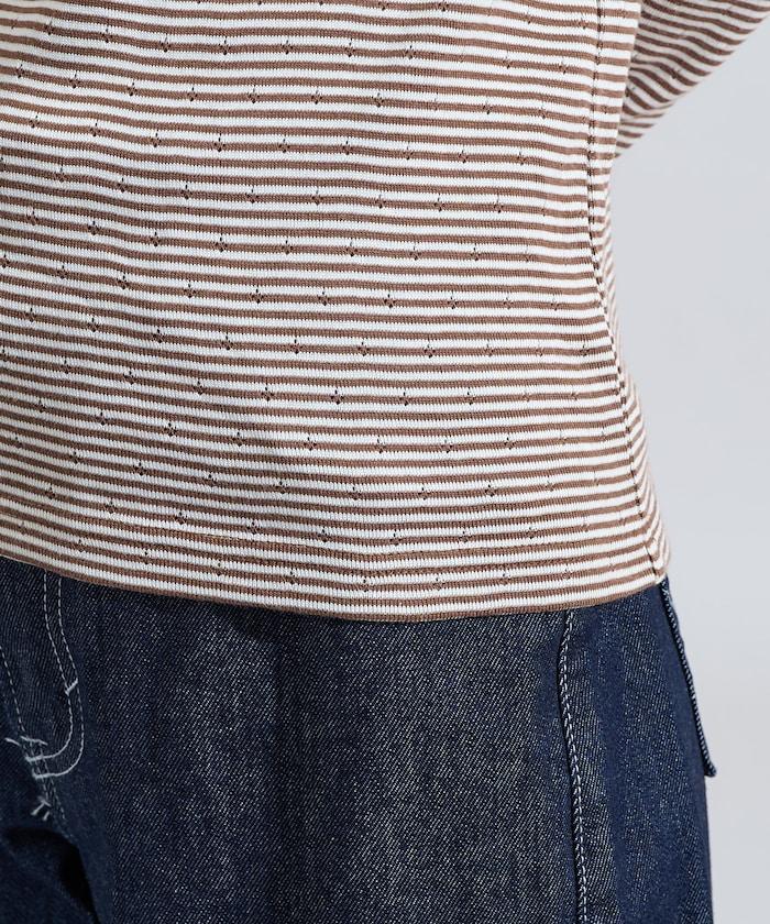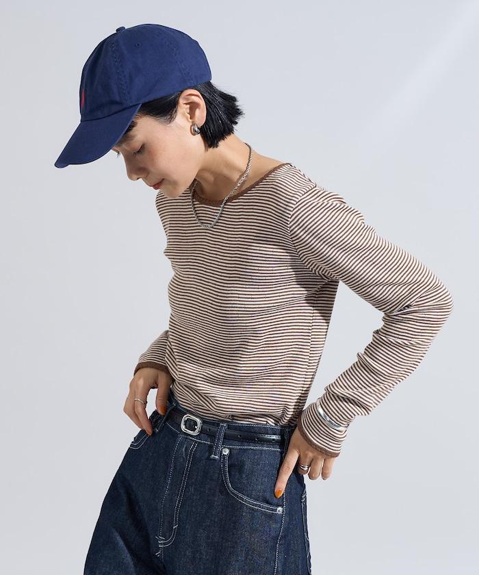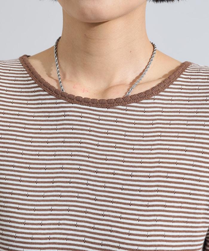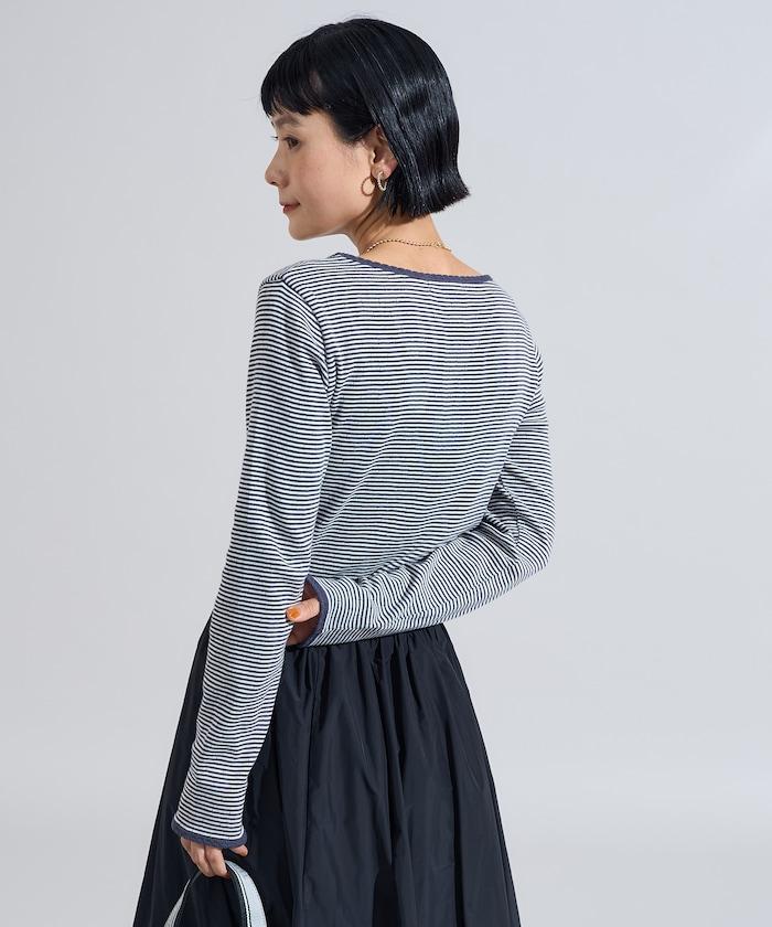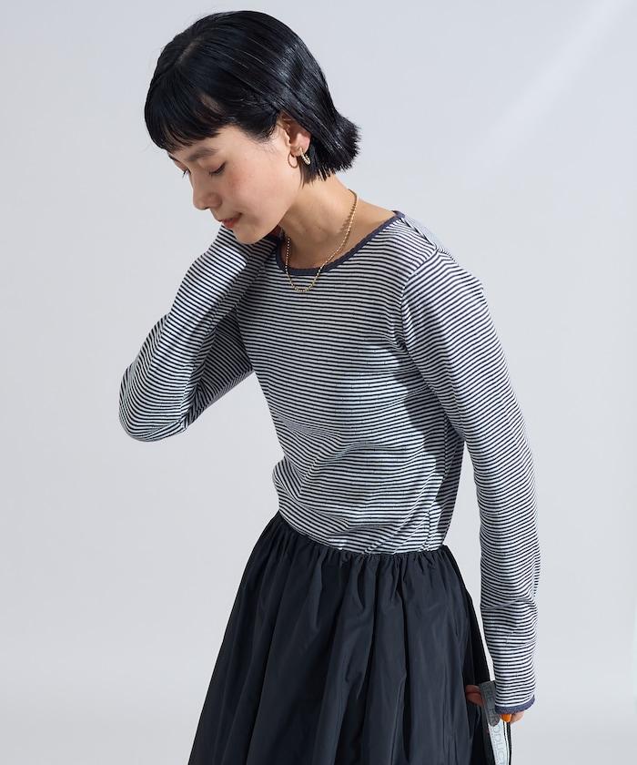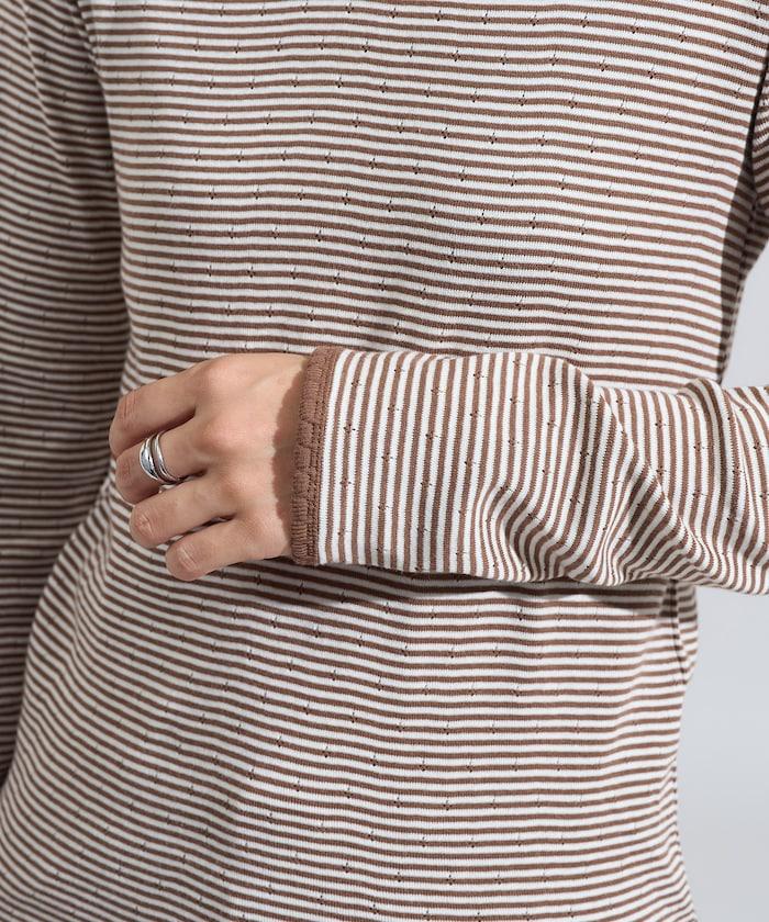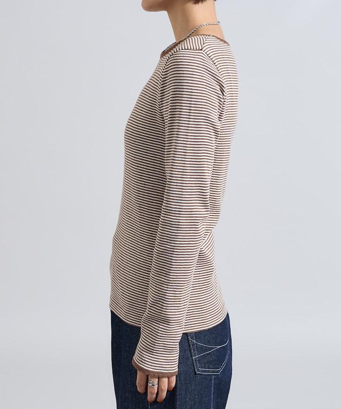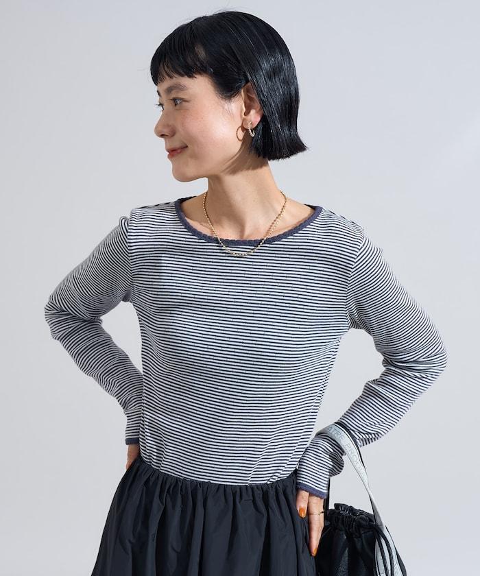 磨毛 T 恤,頸部和袖口有貝殼褶。