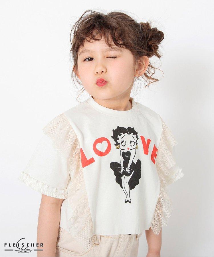 貝蒂-波普 "和 "LOVE "印花圖案的 T 恤設計十分搶眼,網狀荷葉邊設計更顯出眾!袖子和背面的印花也很引人注目。