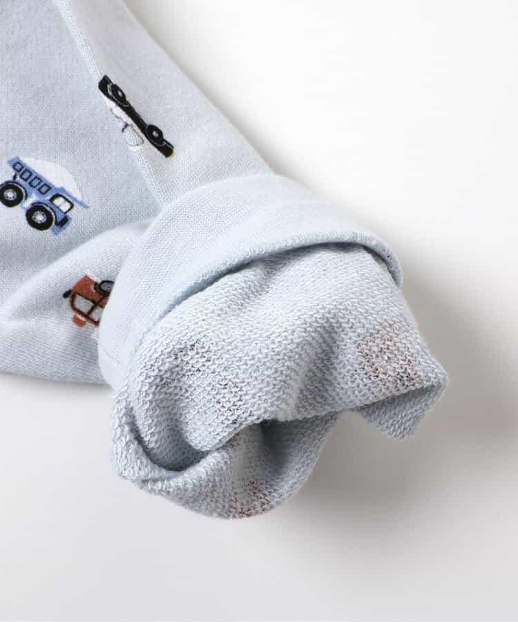 | 110 | 身丈43 身幅38 肩幅35 袖丈(10分丈)34 袖口幅7.5 |