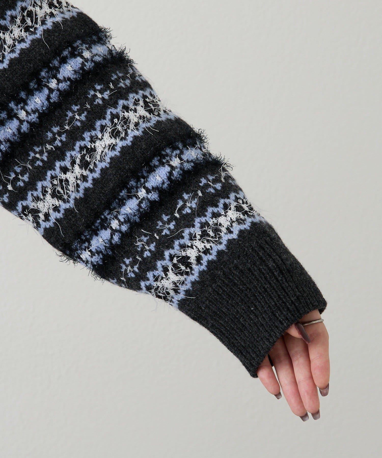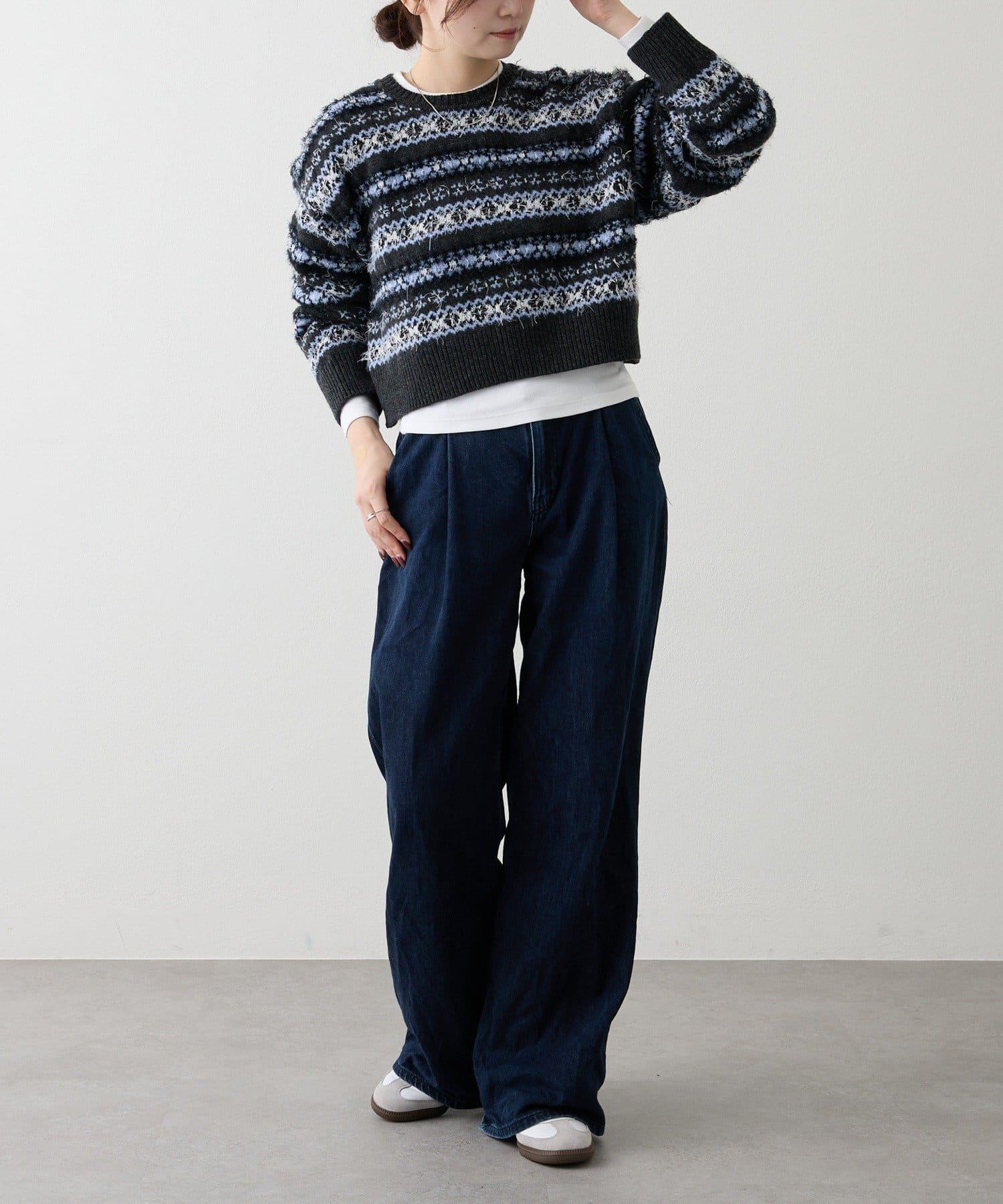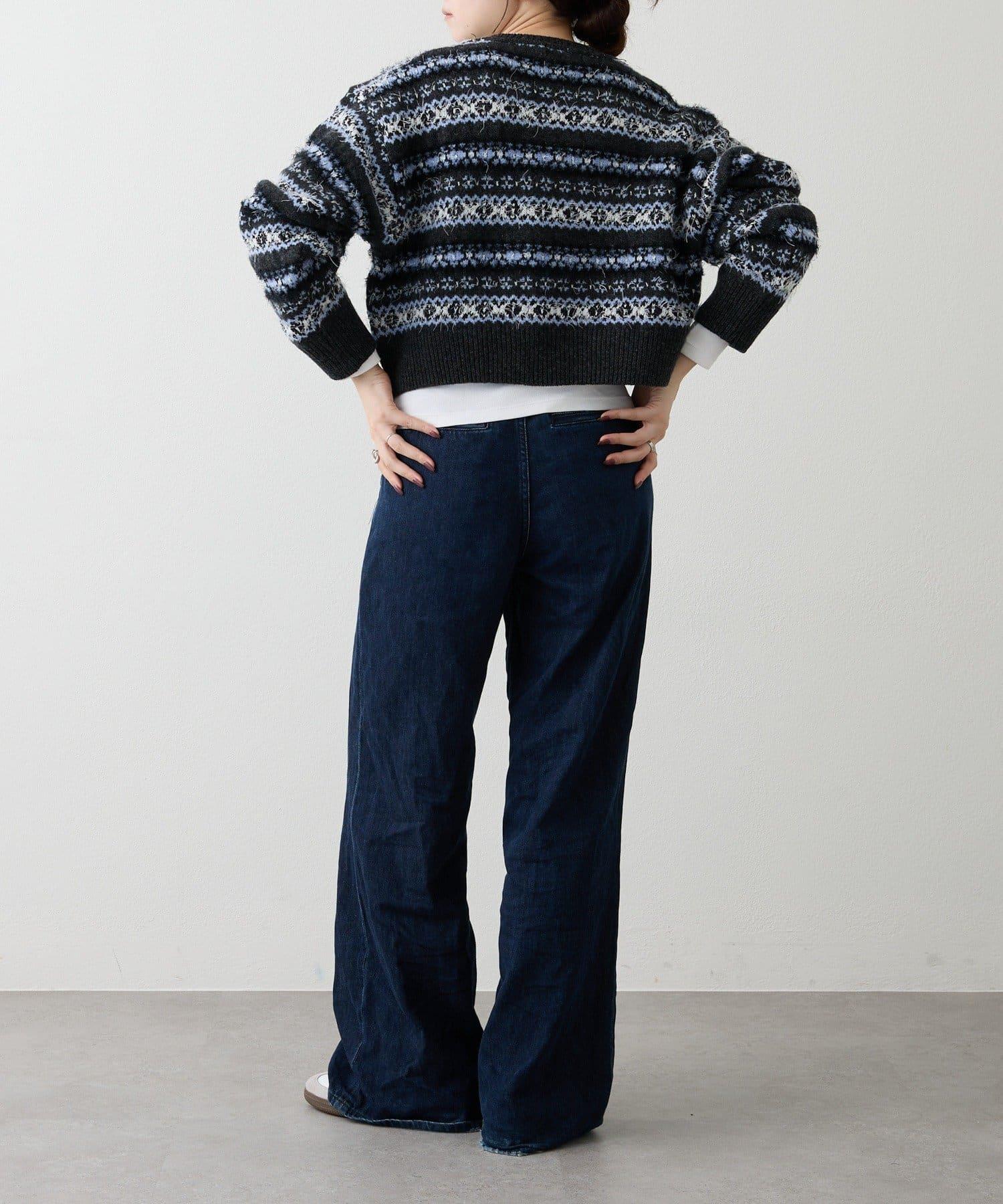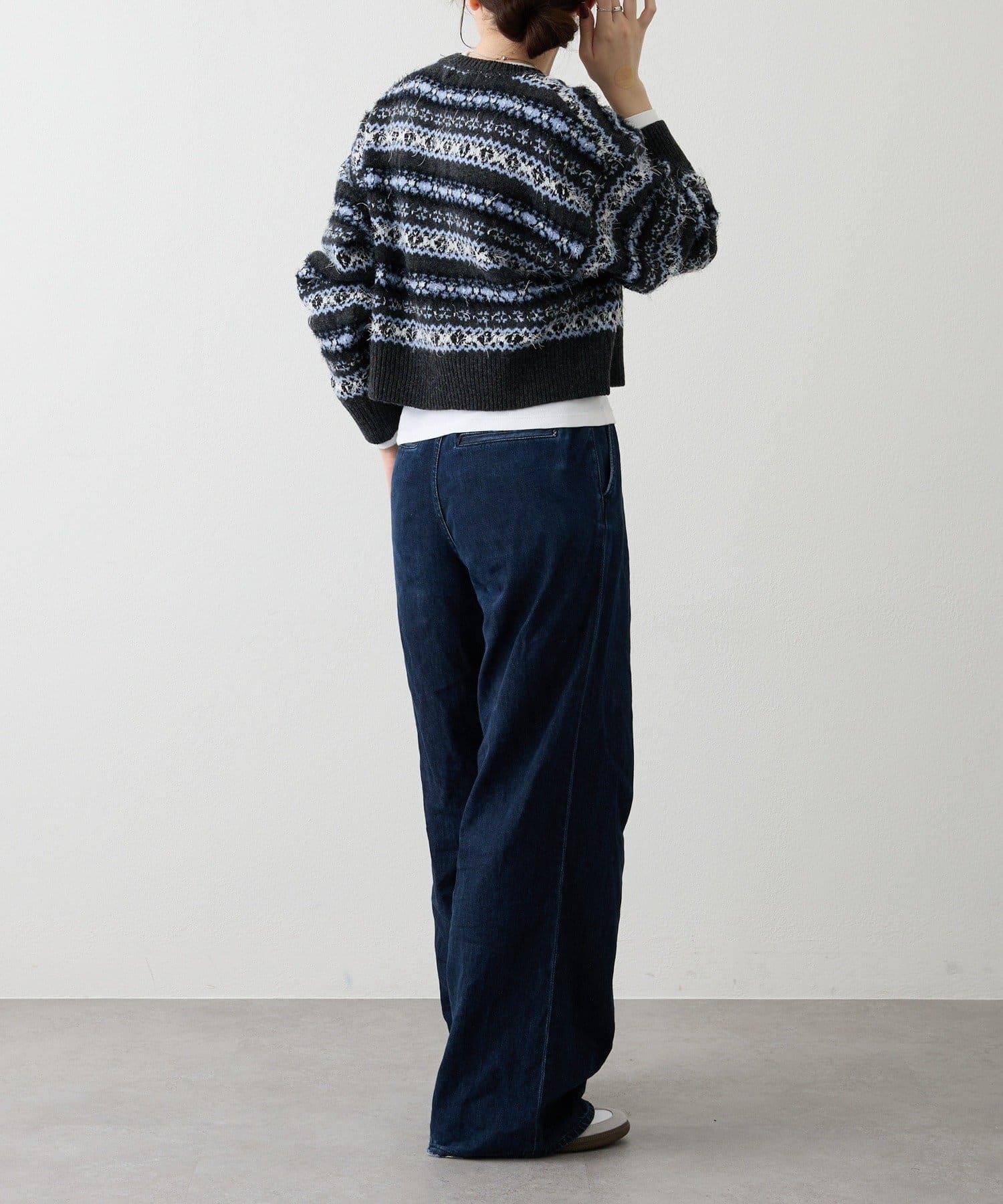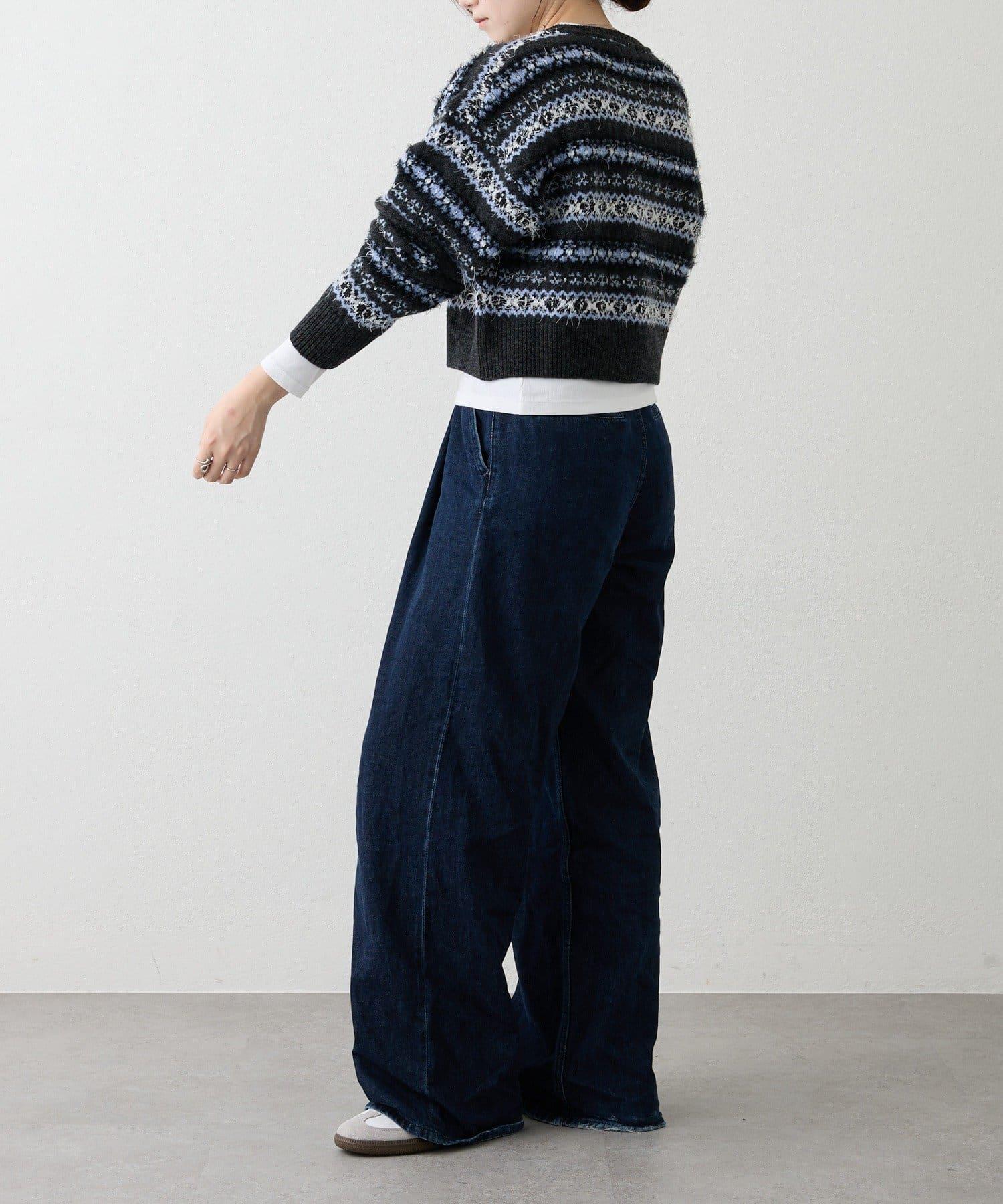採用費爾島圖案的短款針織衫,以美利奴羊毛為基料,結合羽毛紗和日本紙紗等不同材料編織而成。