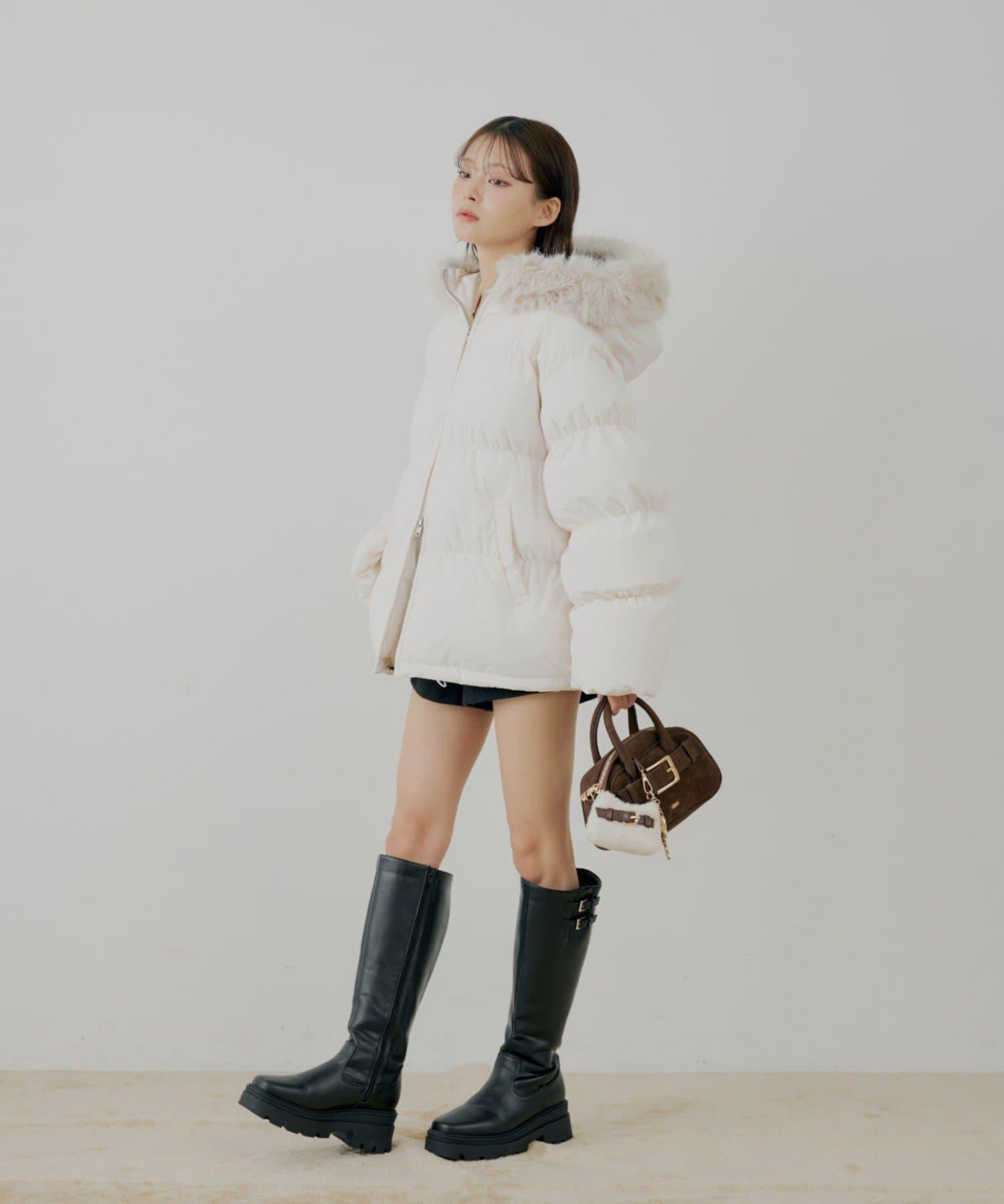兜帽上飾有可拆卸的蓬鬆毛皮,給人一種迷人的感覺。