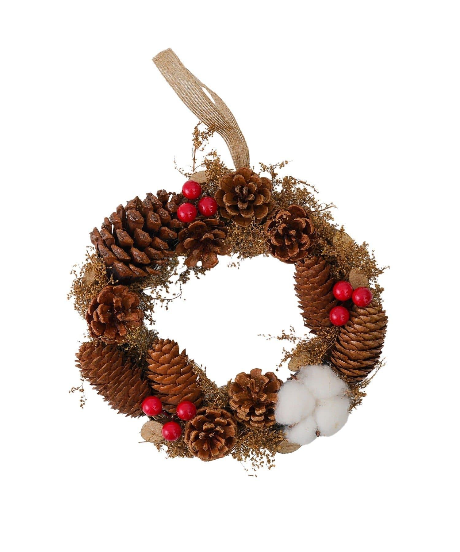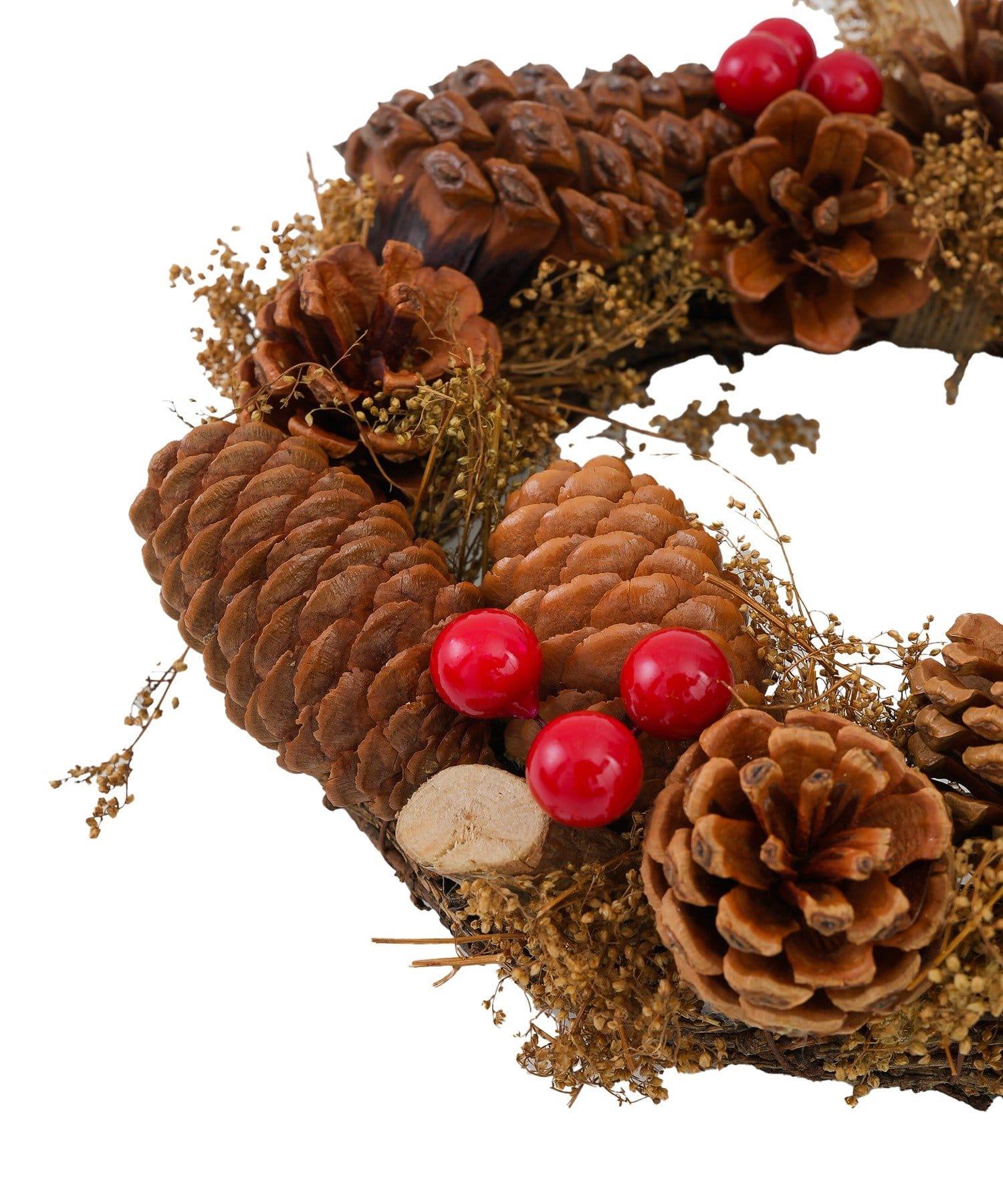 松果和紅色漿果的設計使其成為節日裝飾品。
