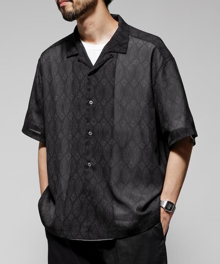 超大號輕薄網眼開領襯衫 / 透明花紋襯衫 / 緞面印花襯衫 / 易護理