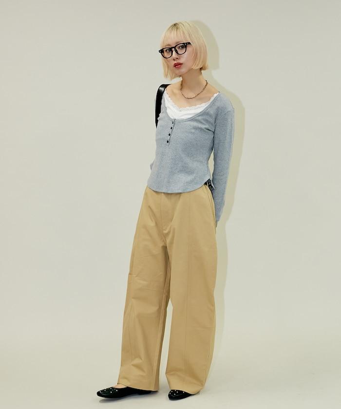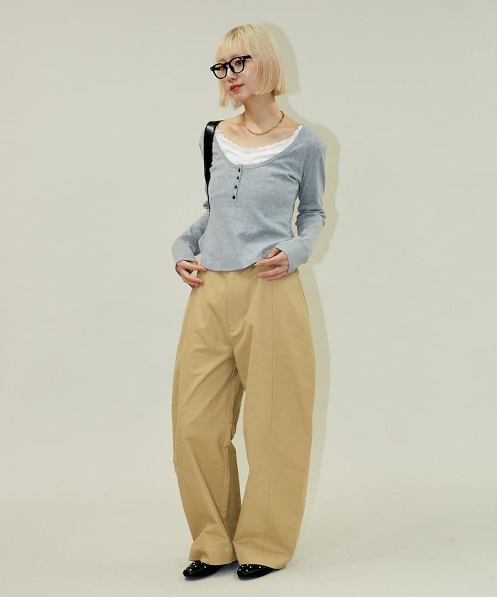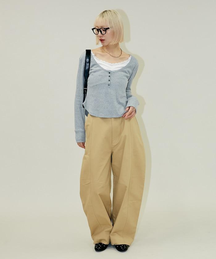 超寬鬆弧形褲