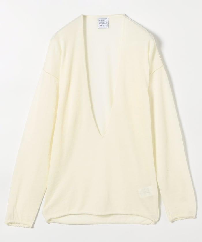 深 V 領長袖套頭衫,手感柔軟蓬鬆。