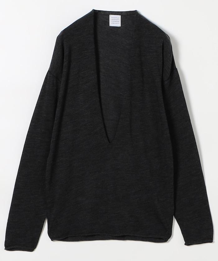 超柔軟羊毛環形針織深V領長袖套頭衫